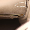 The interior is lined with Etoupe chevre and features one zip pocket with an Hermes engraved pull and two open pockets on the opposite side.