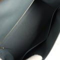 The interior is lined with Vert Amande chevre leather and has one zip pocket with an Hermes engraved pull and two open pockets on the opposite side.