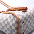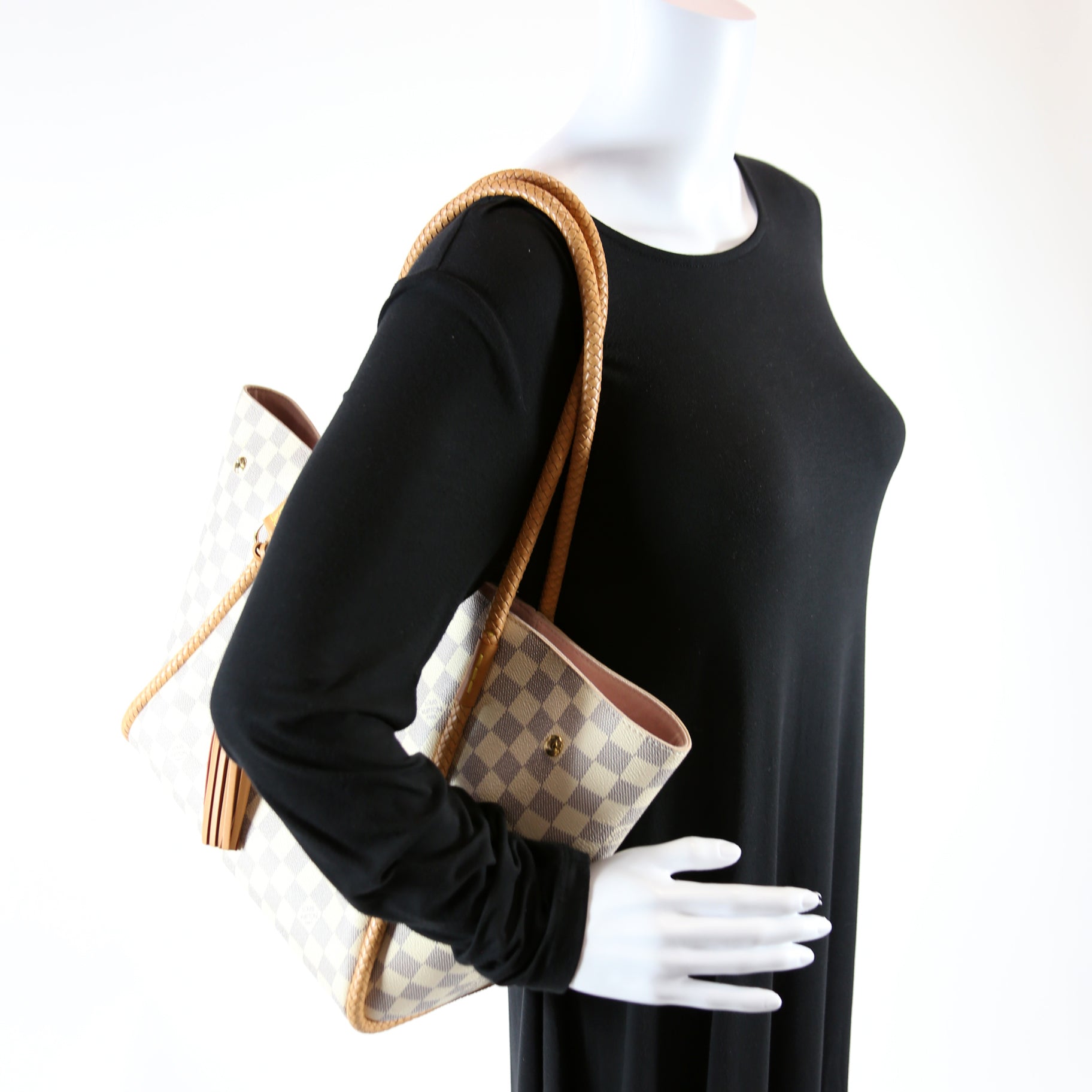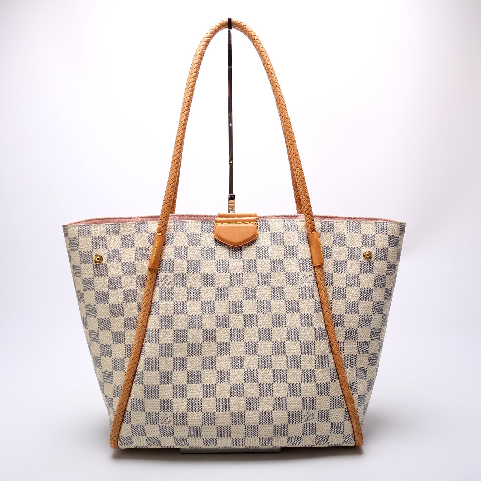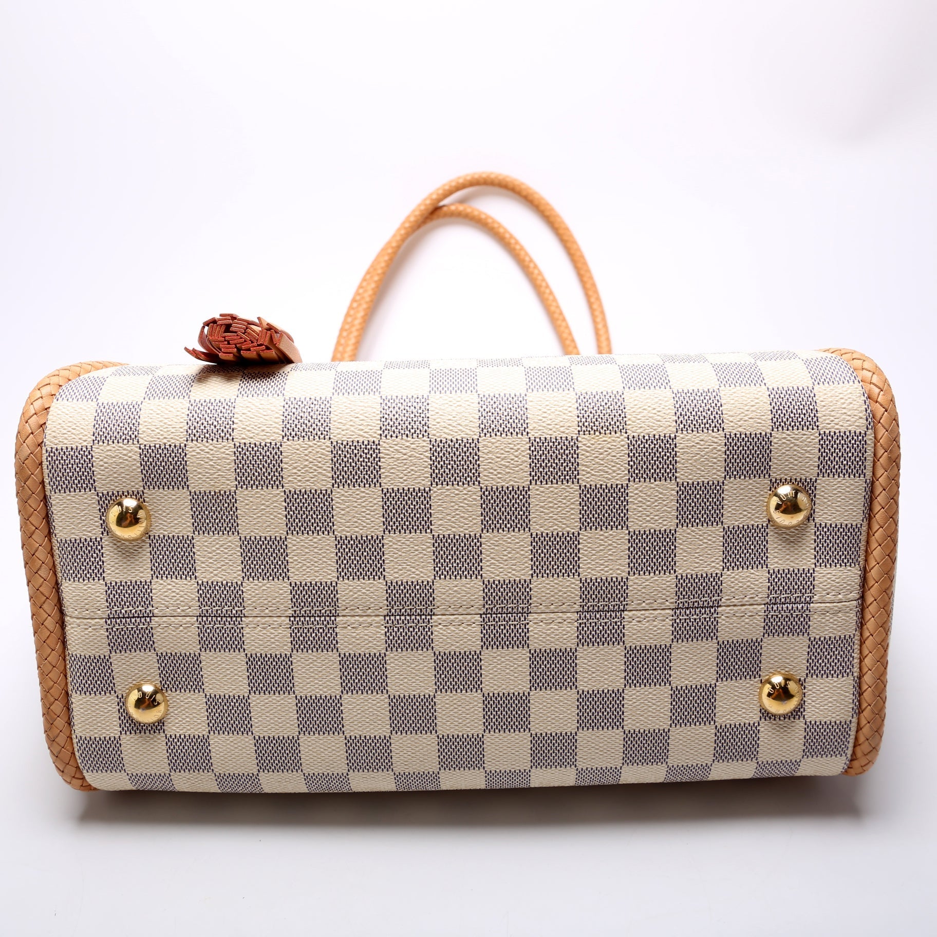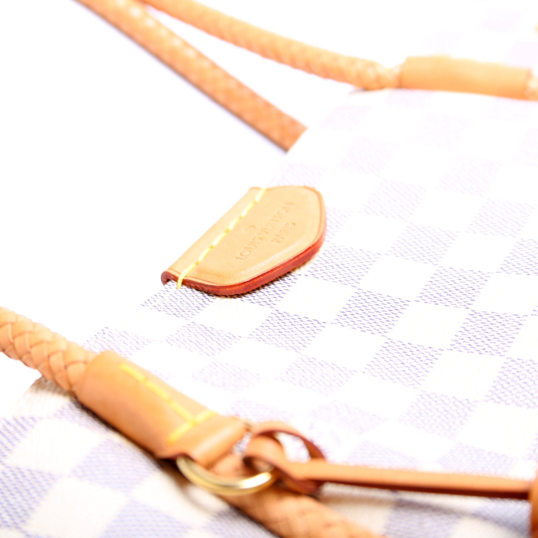 This Louis Vuitton Proprianois eye catching bag. The exterior is in the classic Louis Vuitton Damier Azur coated canvas.