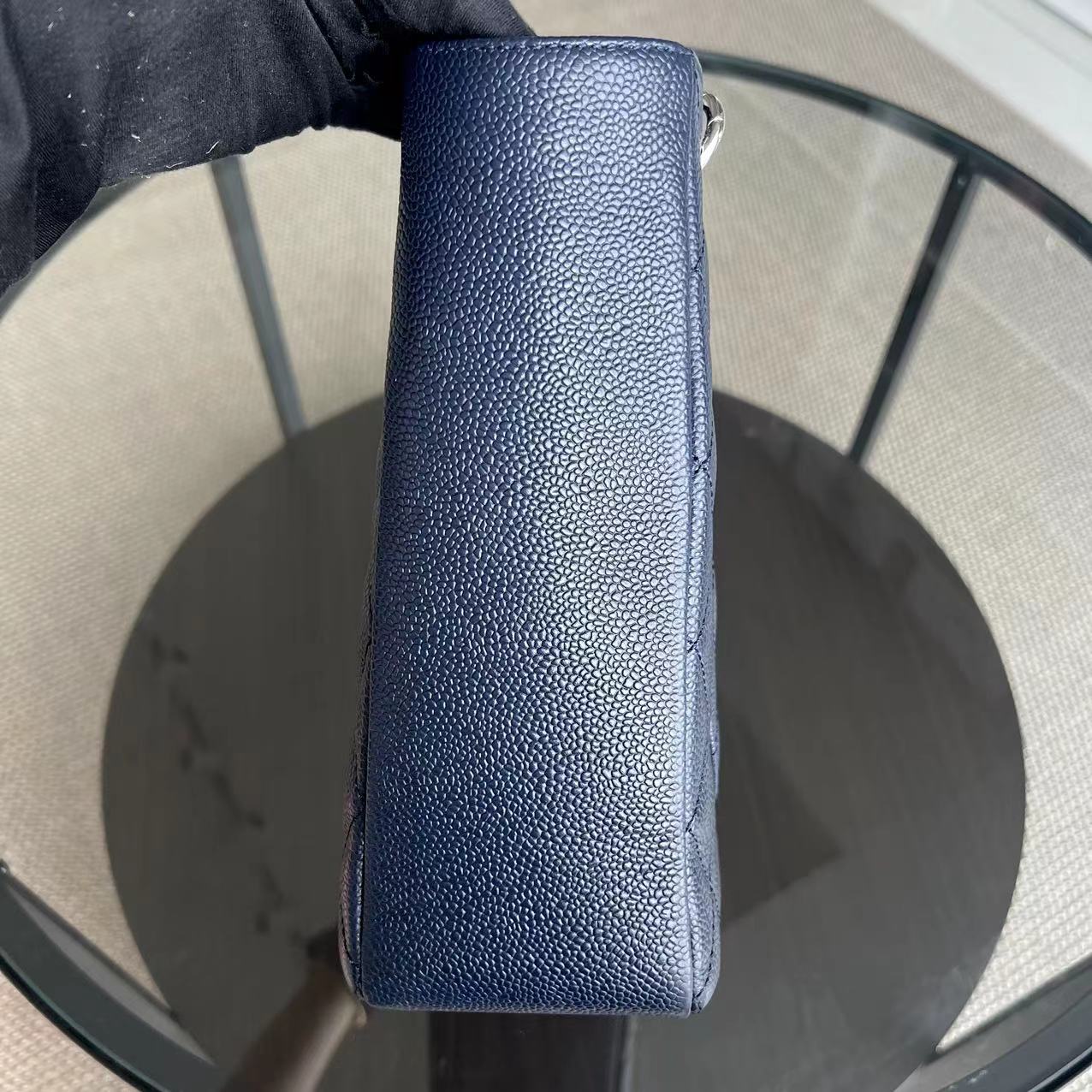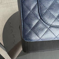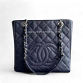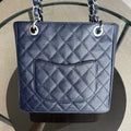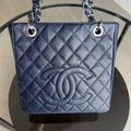 PST Petite Shopping Tote Caviar Quilted Dark Blue Silver Hardware Series 18