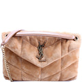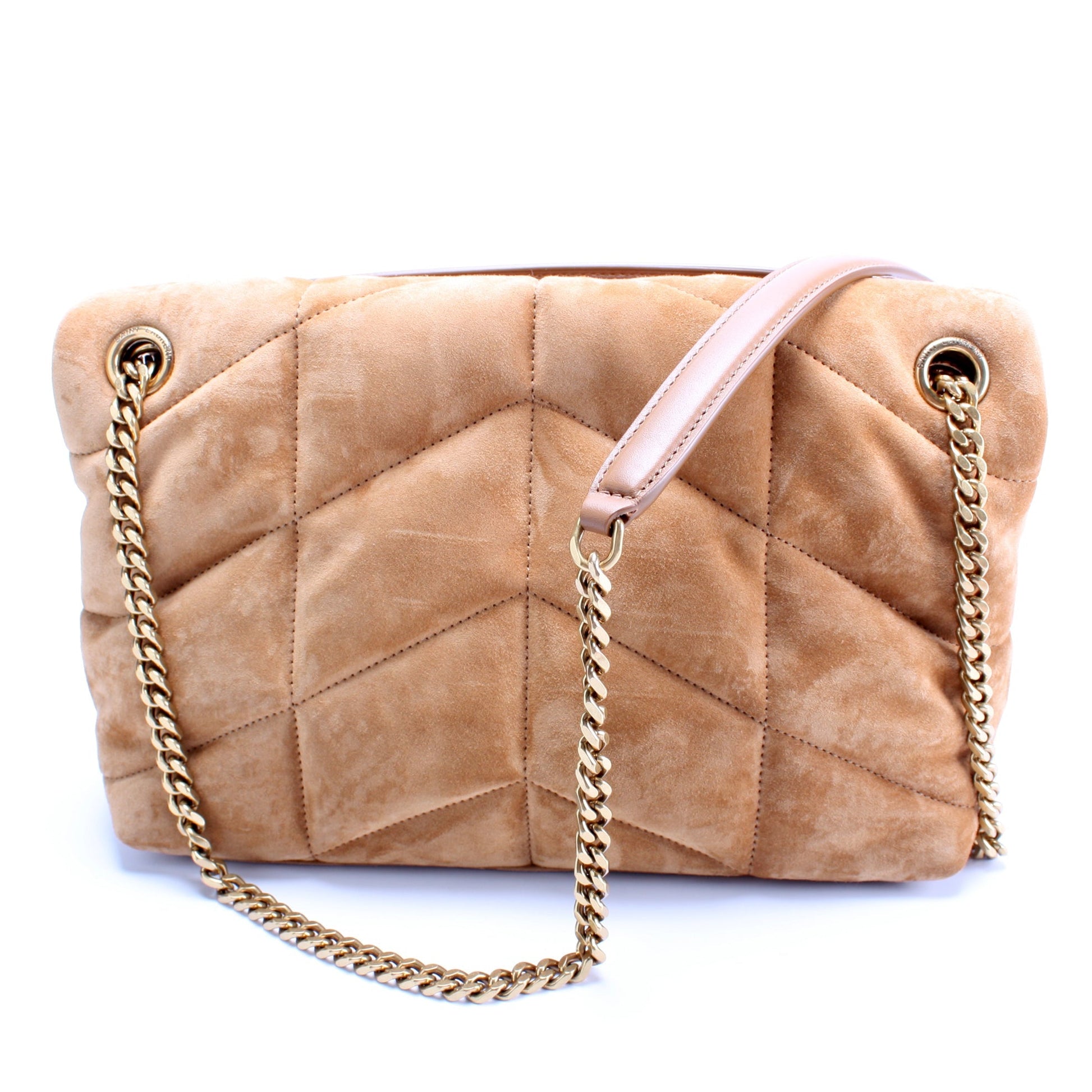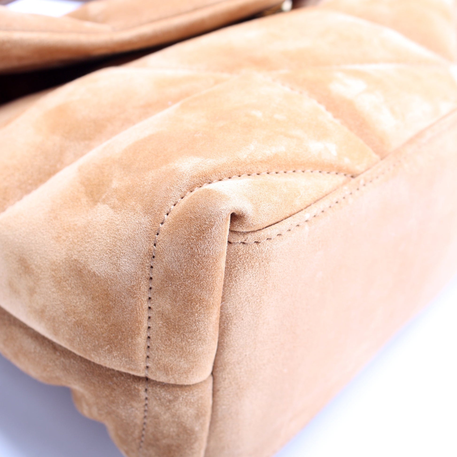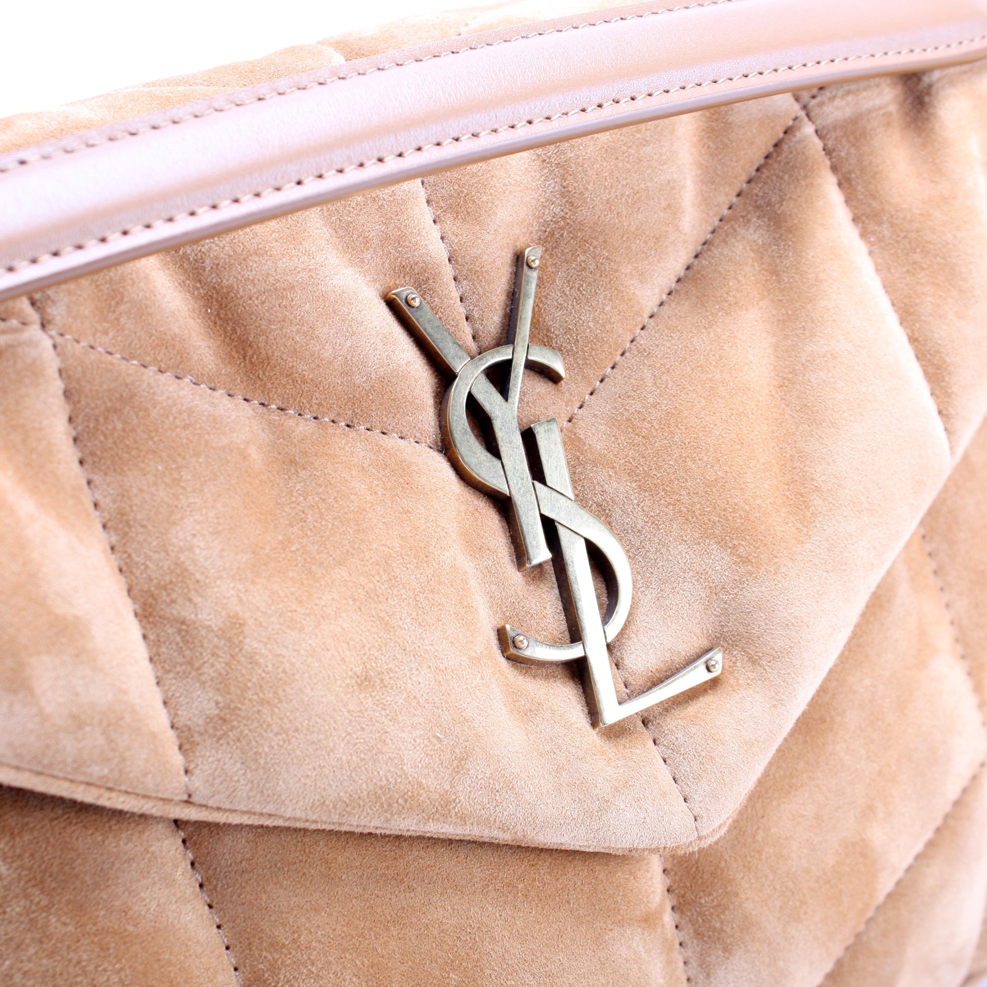 This Yves Saint Laurent Puffer Quilted Small Suedeis eye catching bag.