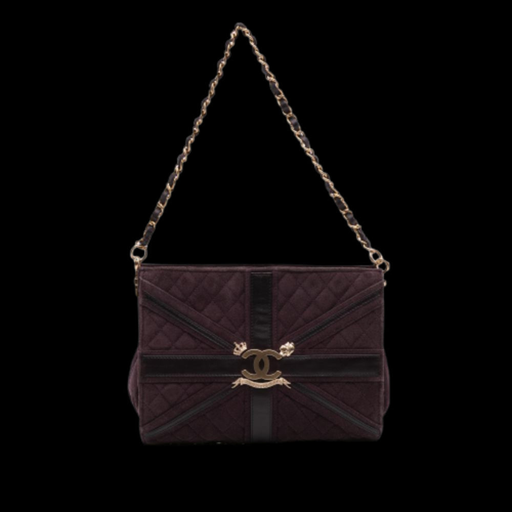 The Union Jack features a quilted suede leather body, a leather-woven chain strap, an open top, and an interior zip pocket. It carries a B+ condition rating.Exterior Back Worn. Exterior Bottom Worn. Exterior Corners Worn. Exterior Front Discolored. Exterior Side Discolored. Exterior Top Worn. Dimensions:Length 24cmWidth 5.5cmHeight 19cmShoulder Drop 23cmOriginal Accessories: Serial Number: 12333652Color: Purple x VioletMaterial: Leather x Suede