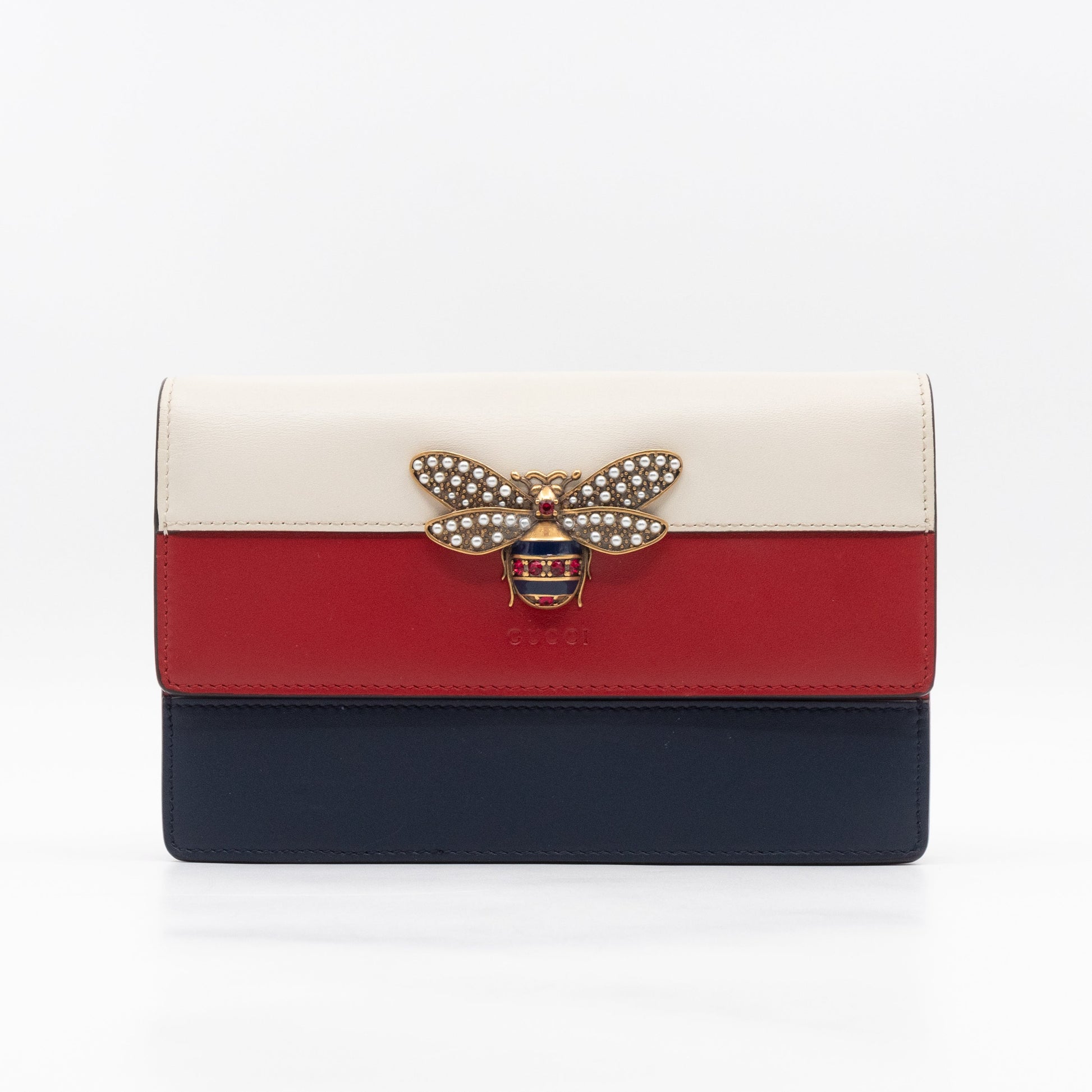 Gucci Queen Margaret Bee Wallet on Chain Blue & Red & White Leather