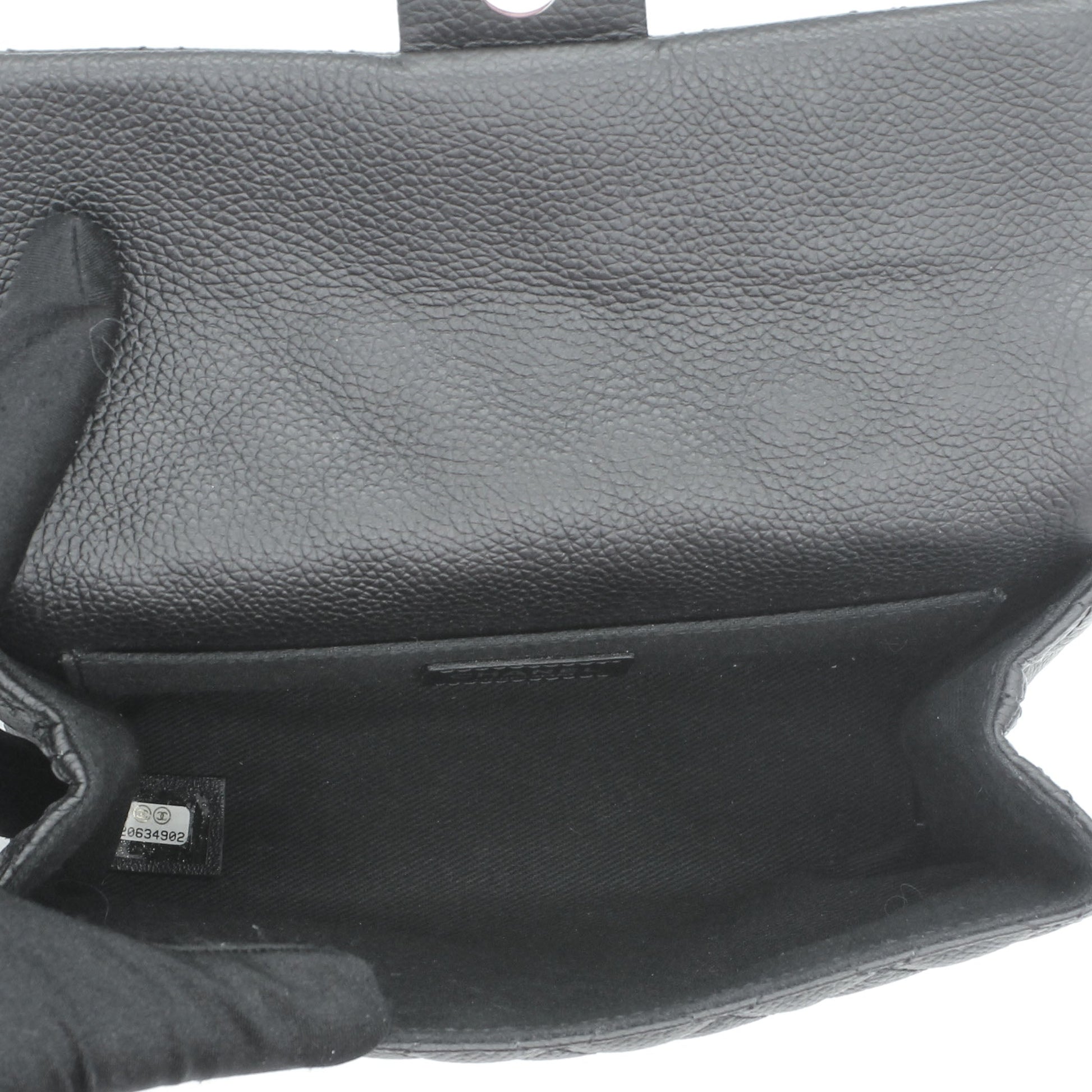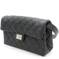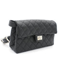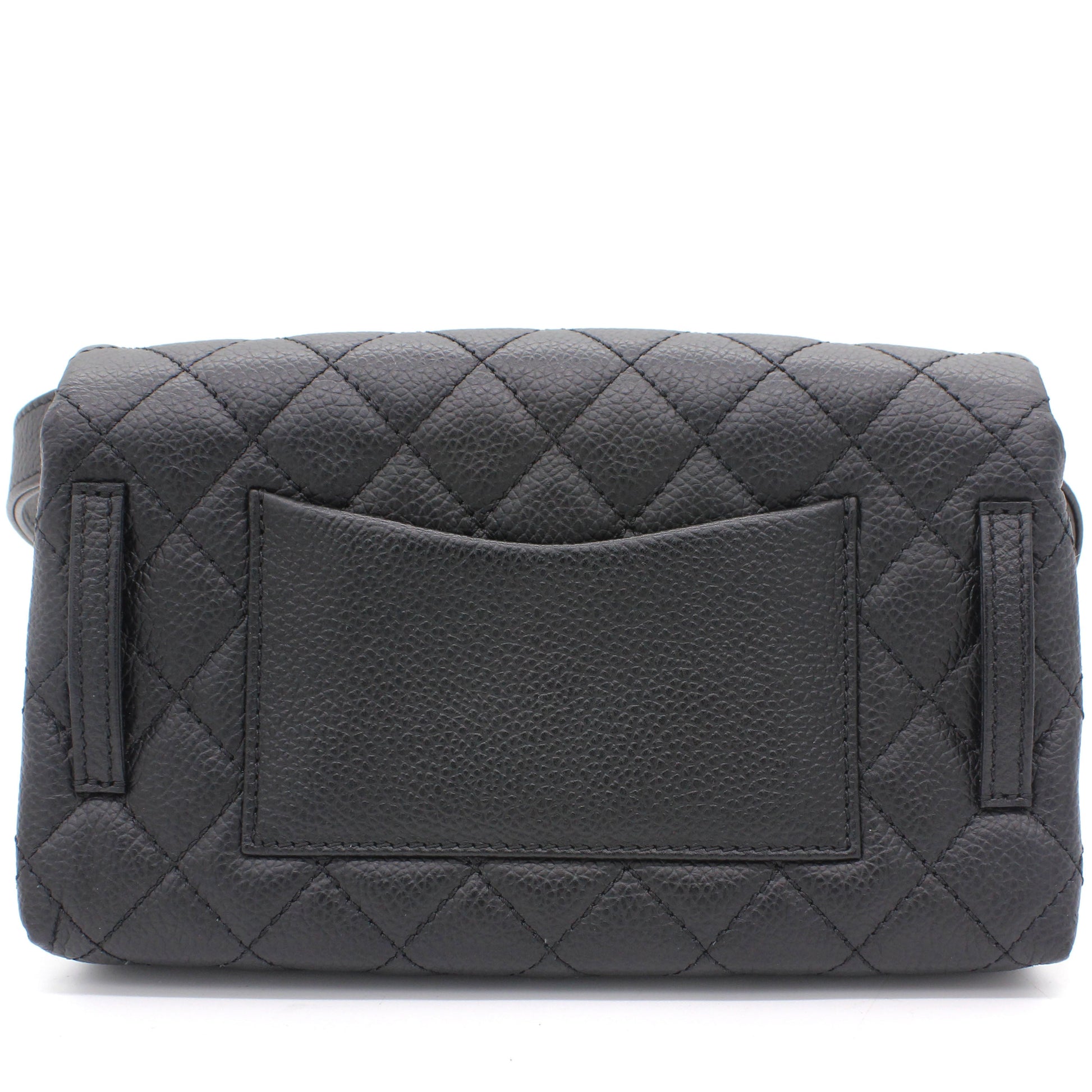 | A quilt that speaks for itself, much like diamonds. Chanel's famous diamond pattern is quilted on textured caviar leather in this versatile 2.55 CC belt bag. Featuring a diamond quilted finish, silver-tone hardware, a foldover top with magnetic closure, an internal logo patch, a back slip pocket, a Mademoiselle turn-lock and a detachable and adjustable waist strap. | Exterior Material: Black calfskin exterior with a leather belt strap and a back slip pocket. Interior Material: Black fabric lining with one main compartment. Accessories: Dust Bag; Serial Number: 20634902 Bought Year: 2016 | ![]() |