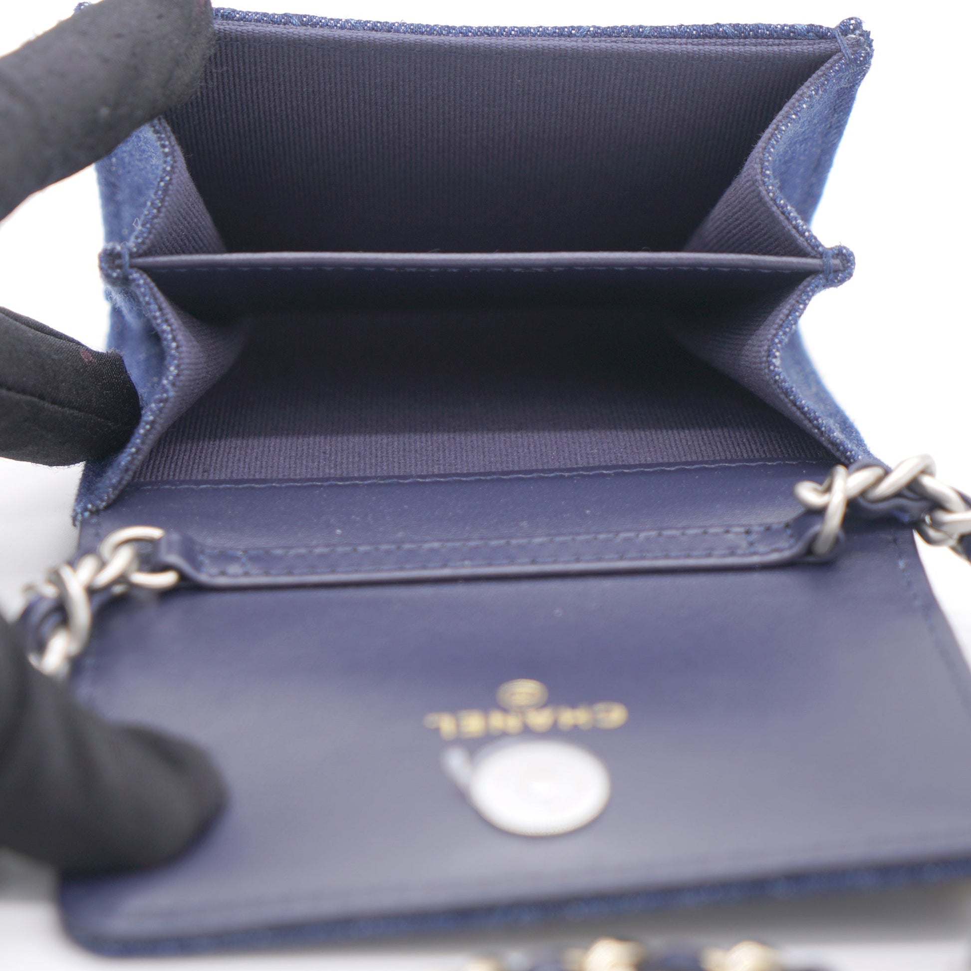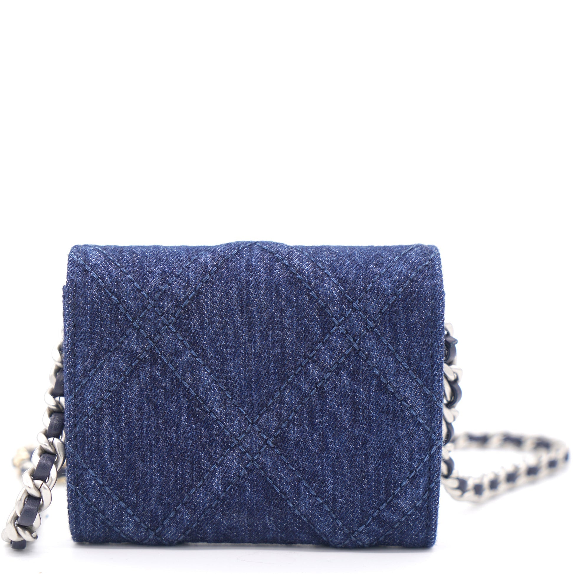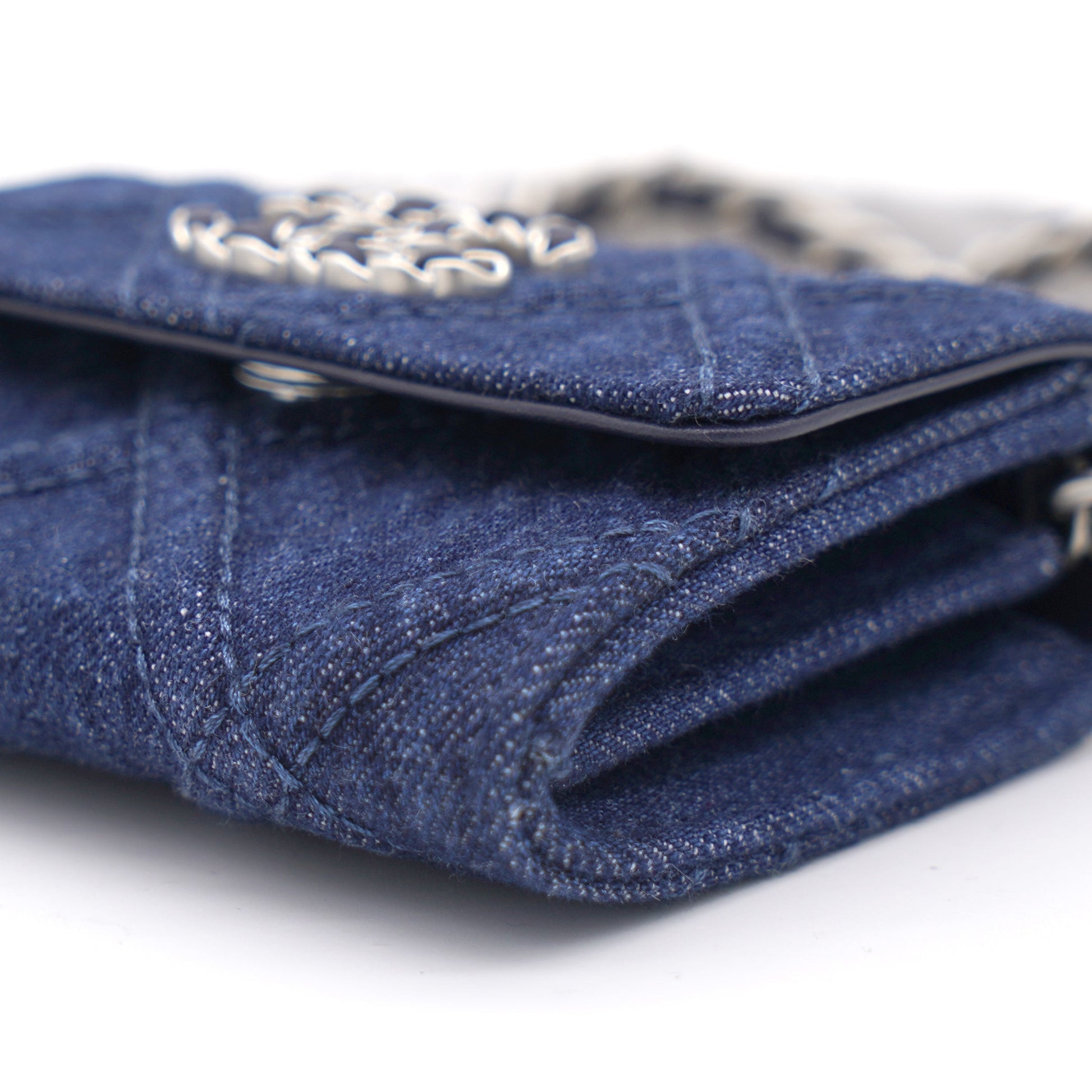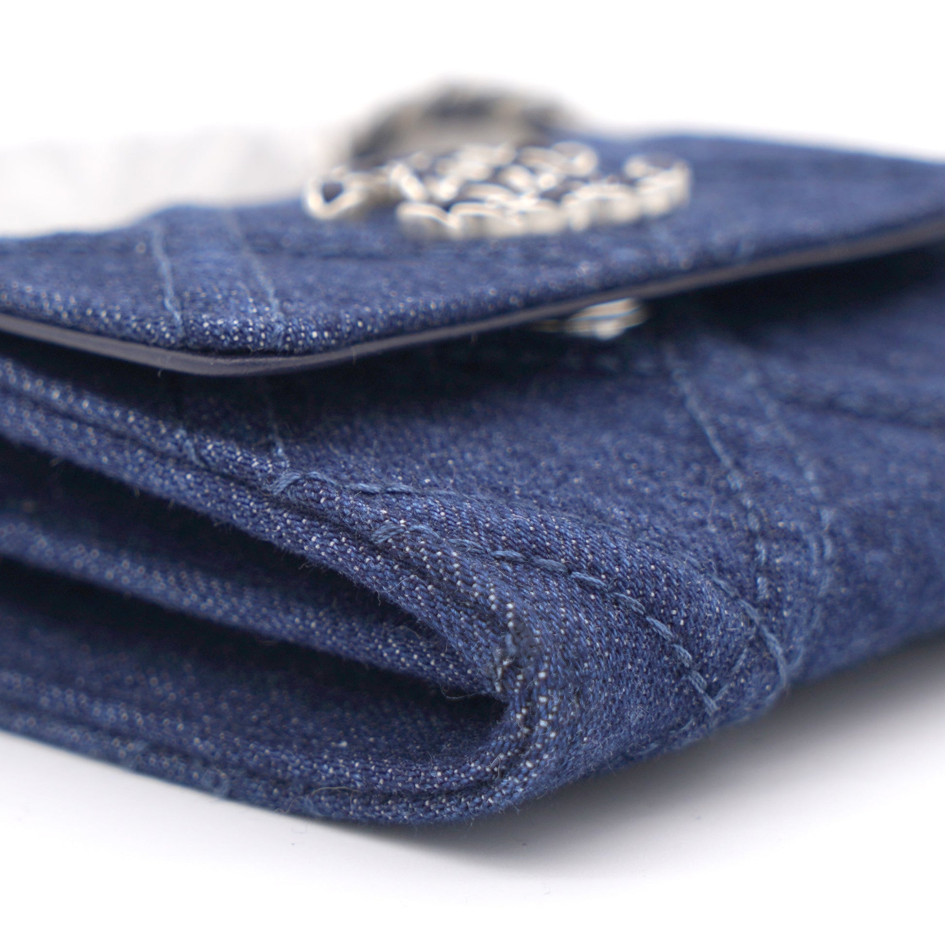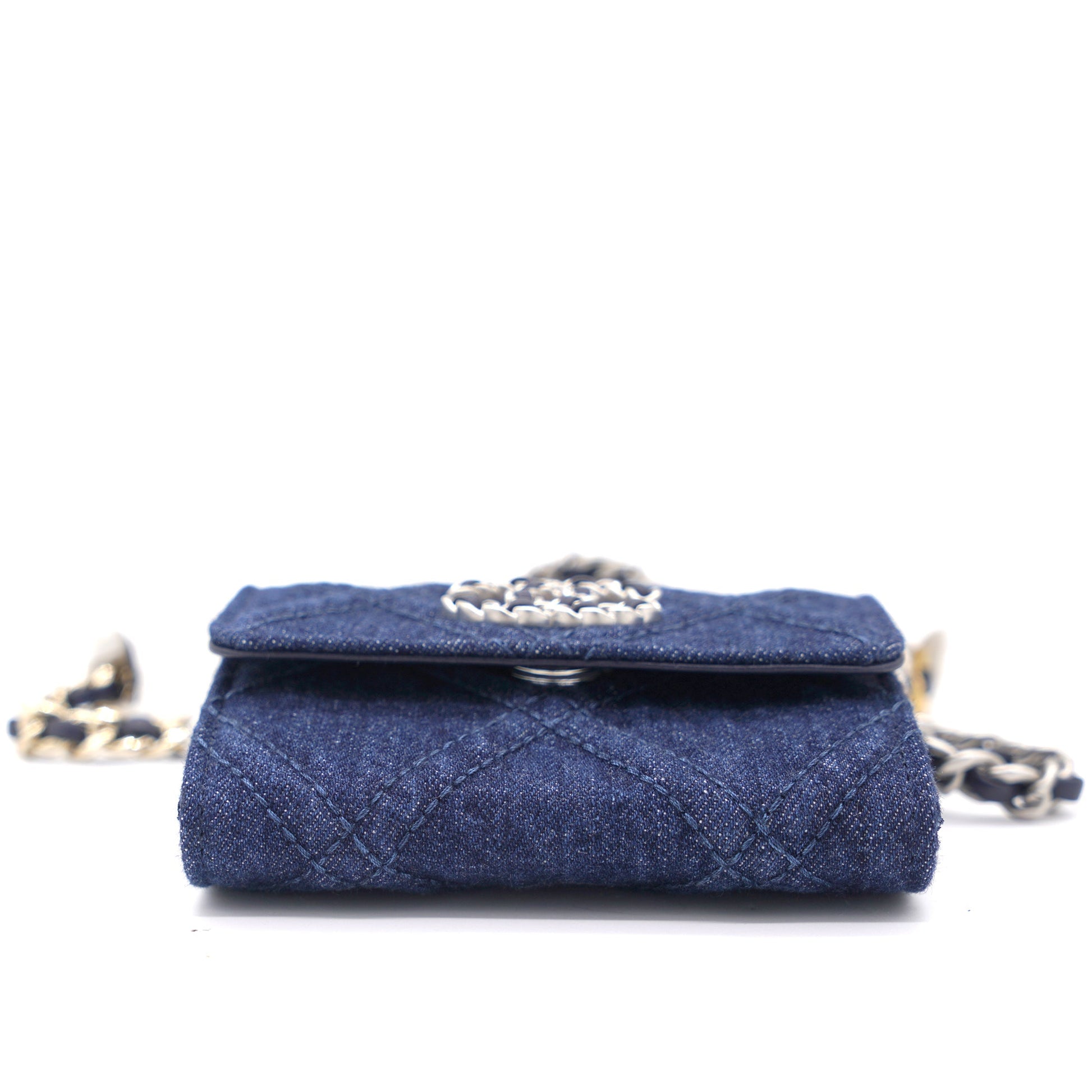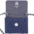 Chanel Quilted Blue Denim 19 Card Holder with Chain