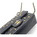 | This stylish classic flap shoulder bag is finely crafted of black diamond quilted leather adorned with exquisitely detailed iconic Chanel charms. The bag features a gold chain-link shoulder strap threaded with leather and a matching gold Chanel CC turn-lock for the facing flap and a rear pocket. This opens to a black leather interior with patch pockets. | Material: Leather Lining: Leather Hardware: Gold color finish metal Accessories: Serial Number: 27853037 Production Year: 2018 | ![]() |