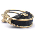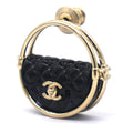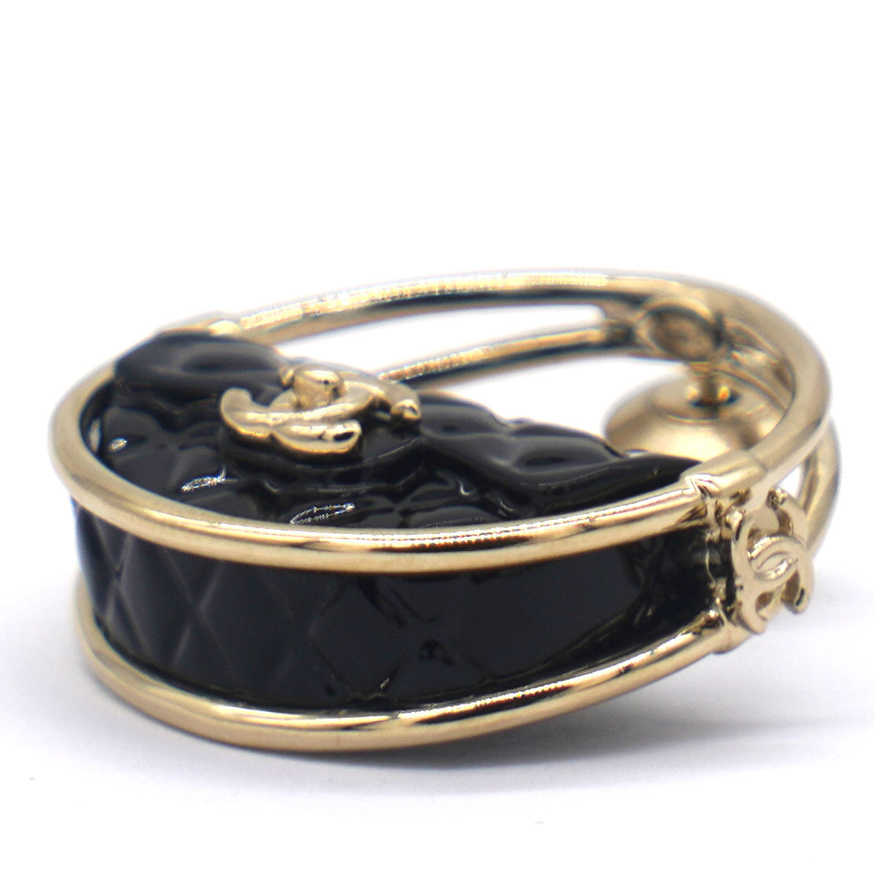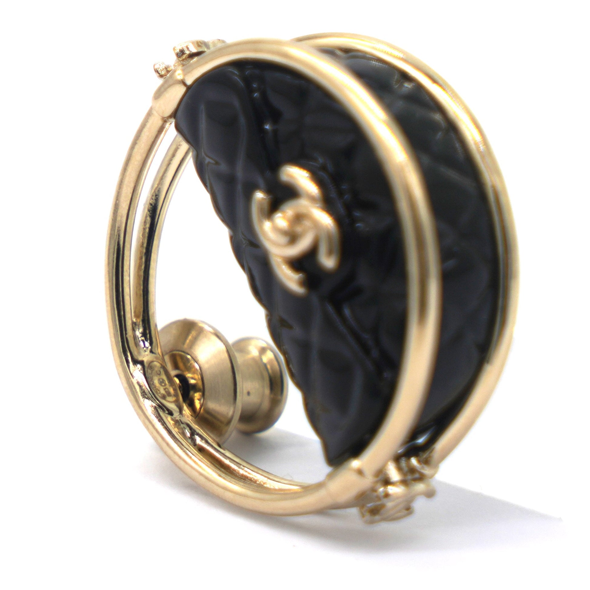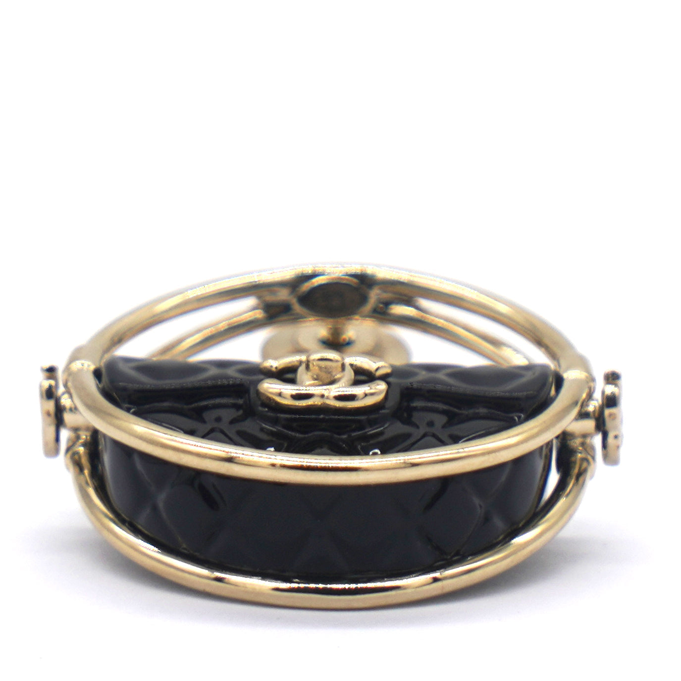 | This is a genuine pair of CHANEL Metal Resin Flap Bag Hoop Brooches in Black and Gold. This is a stylish brooch featuring a quilted black flap bag hoop. | Material: Gold color finish metal; Enemal Accessories: Serial Number:B23C Production Year:2023 | ![]() |