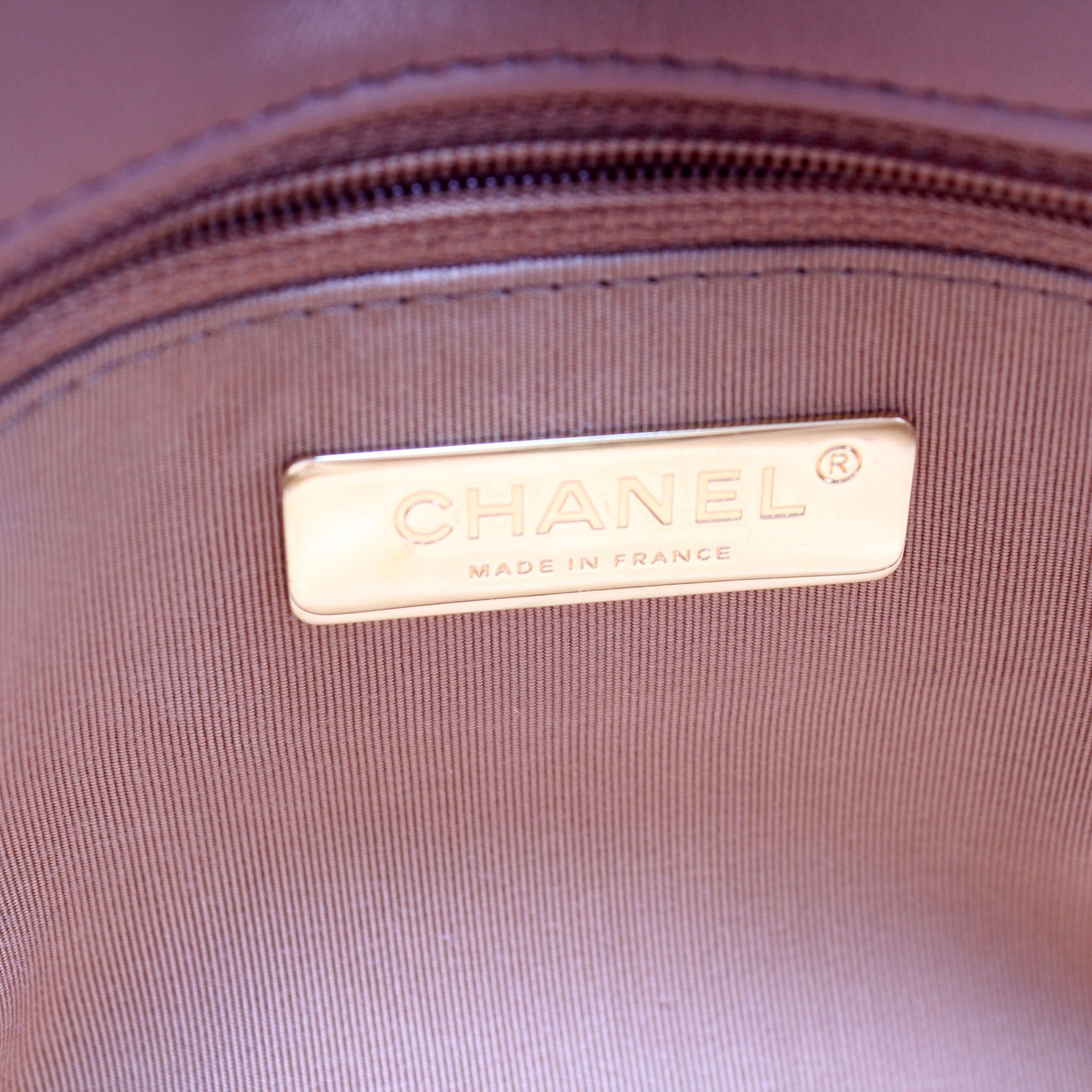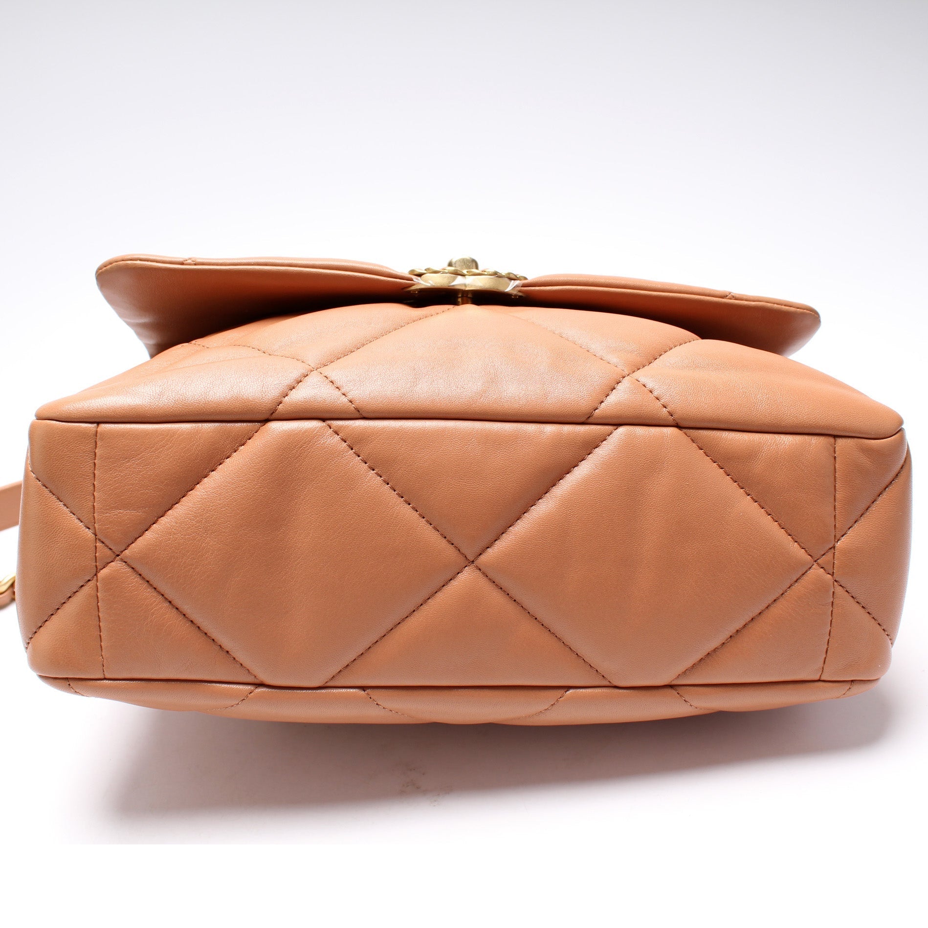This Chanel 19 Large Flapis eye catching bag. The exterior is in the classic Chanel Quilted Goatskin leather.