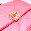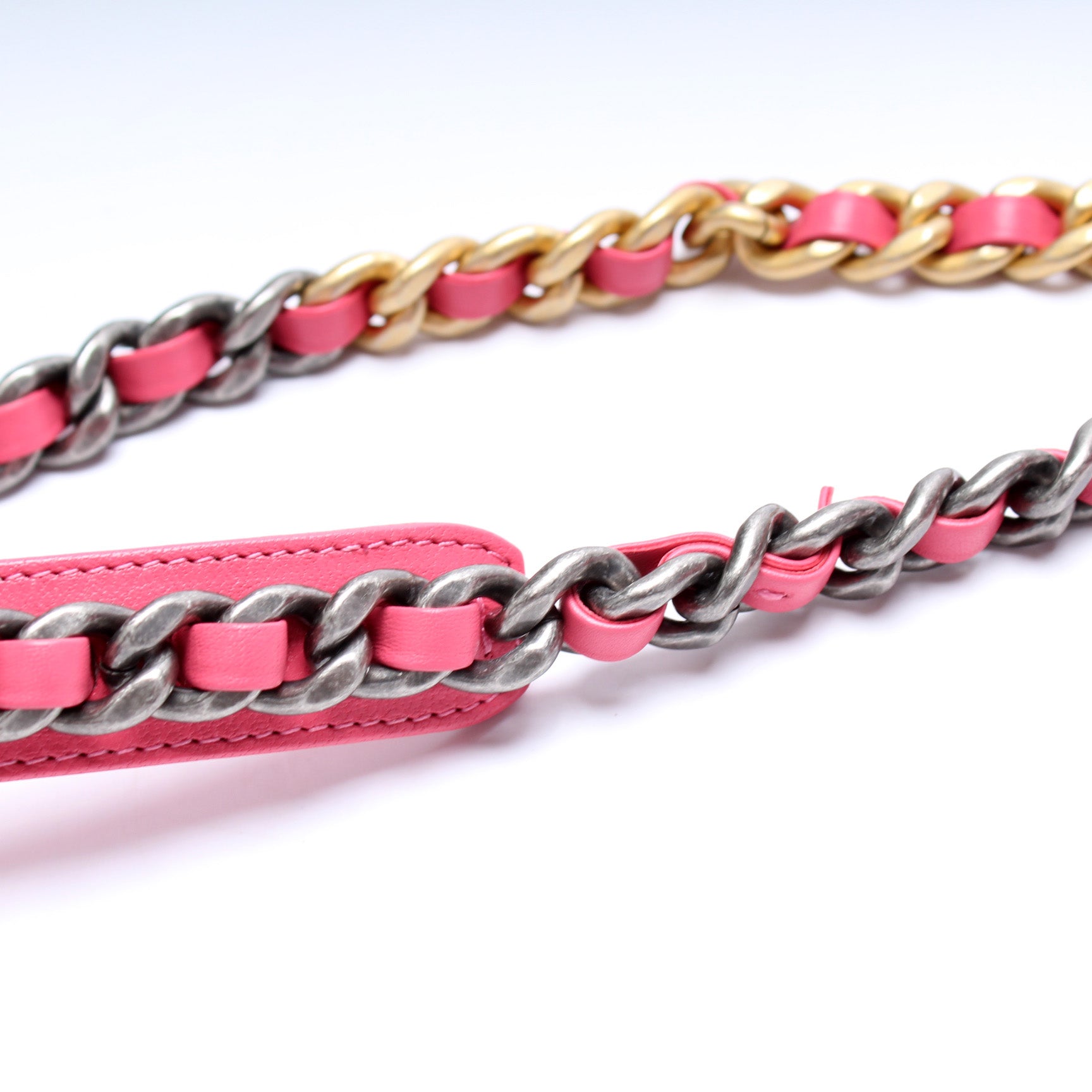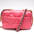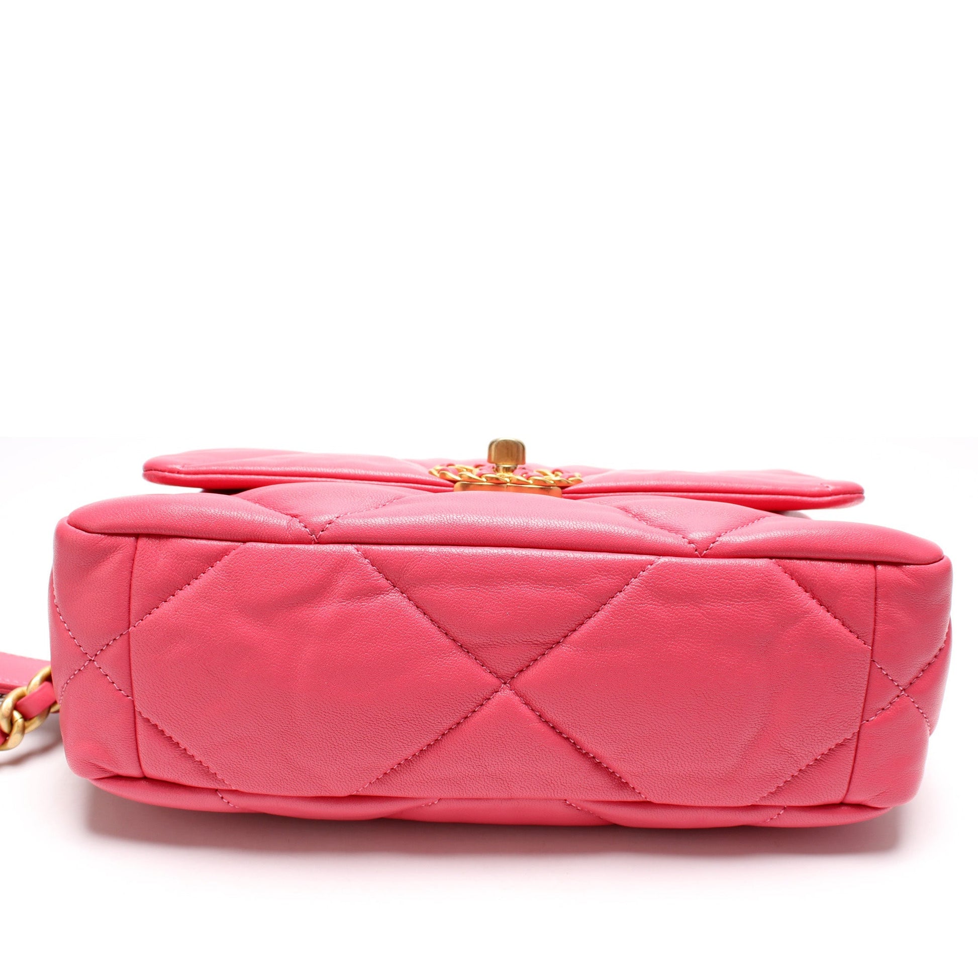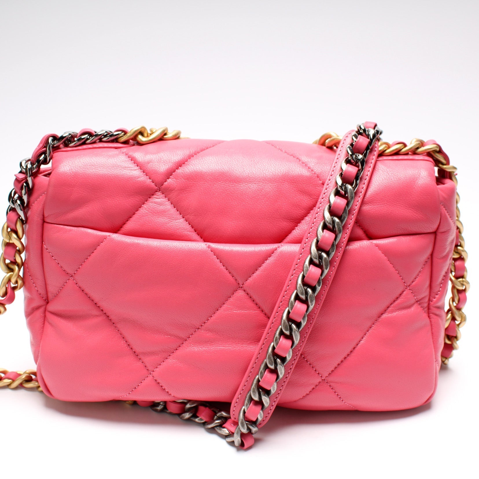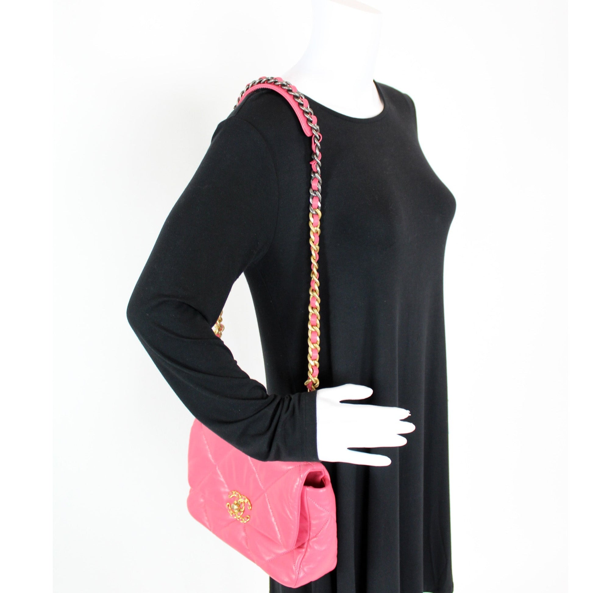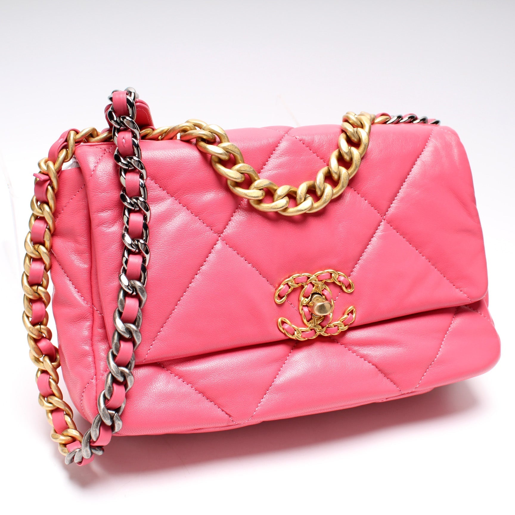 This Chanel 19 Medium Flapis eye catching bag. The exterior is in the Chanel Quilted goatskin.
