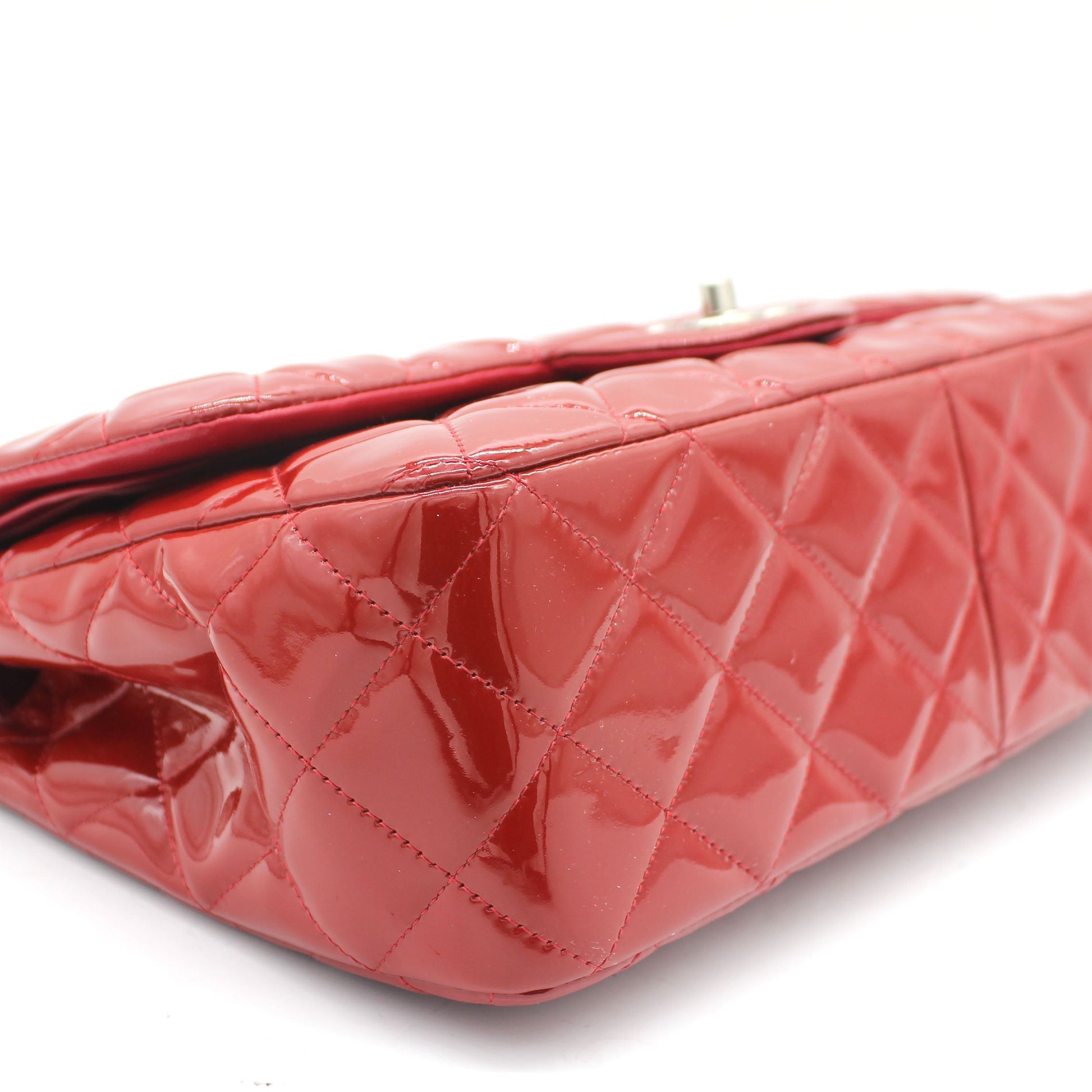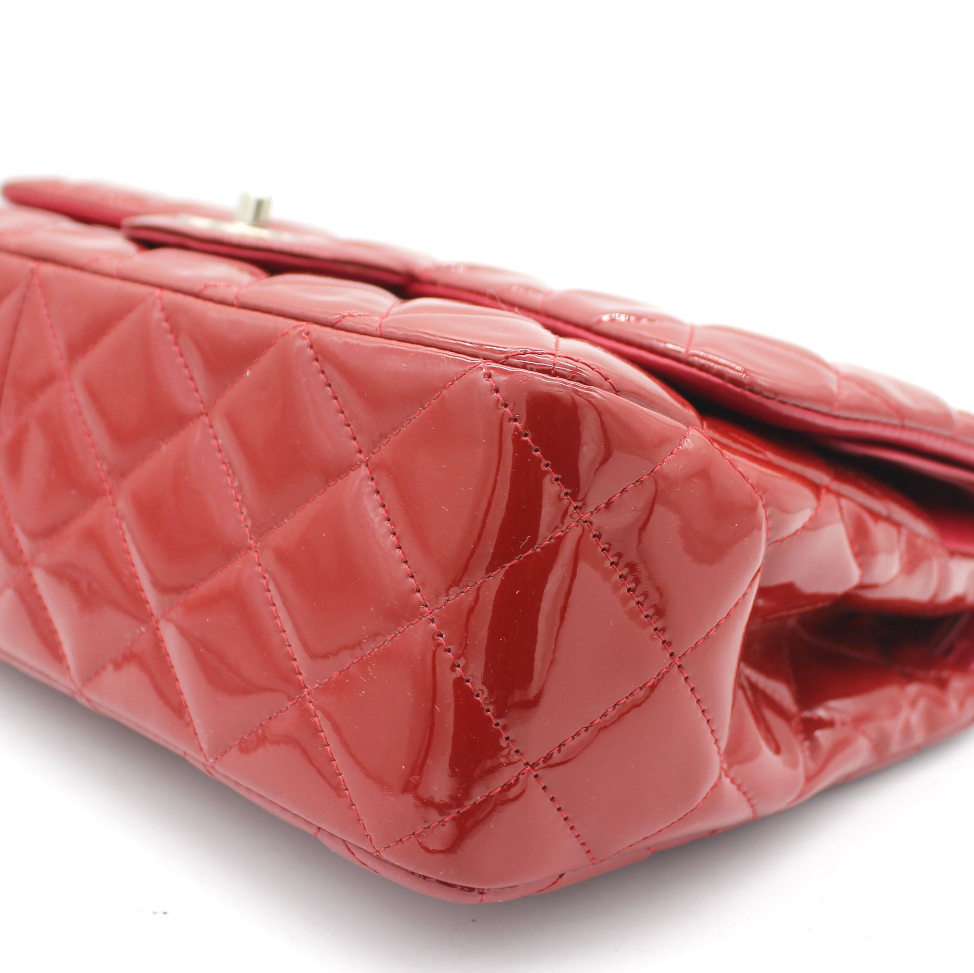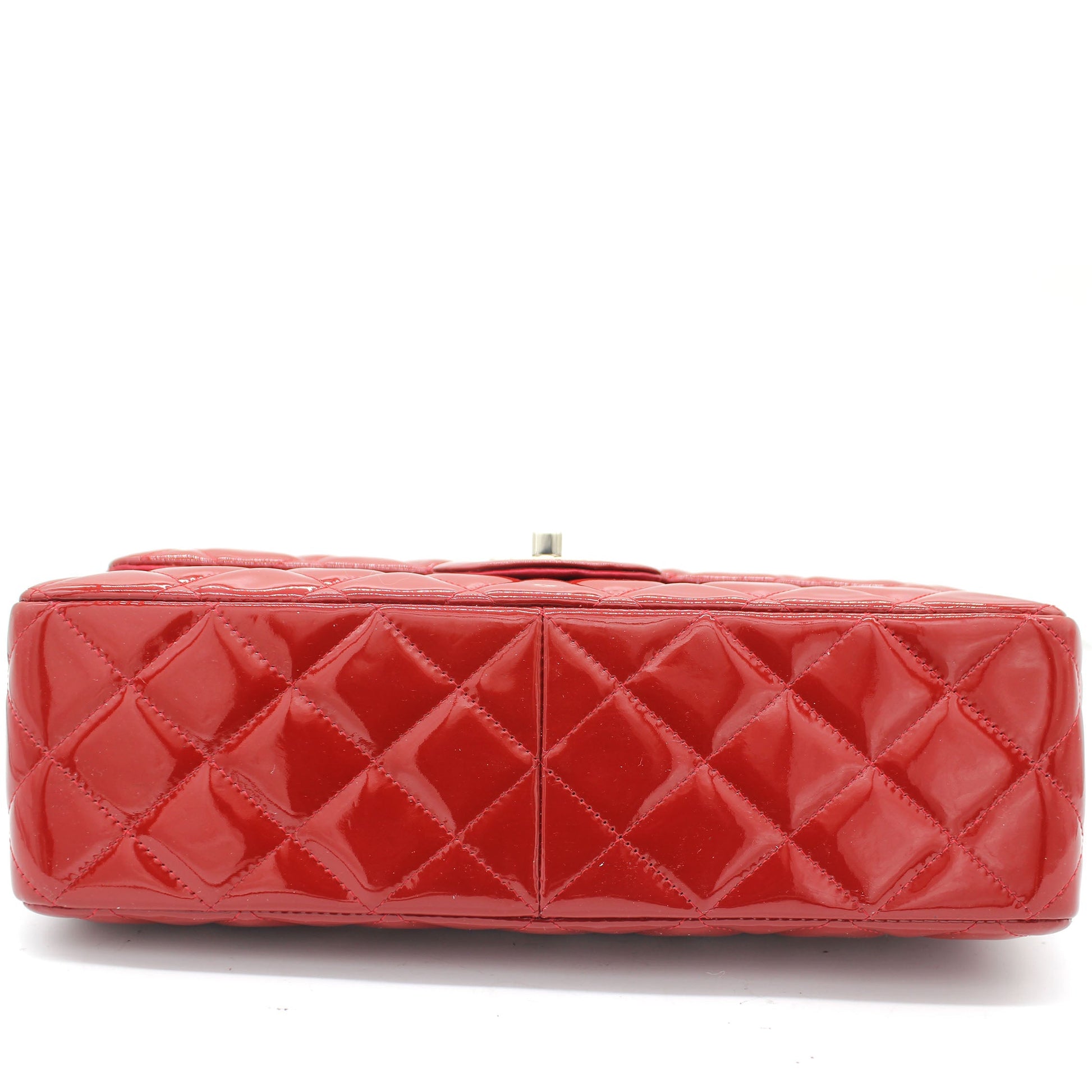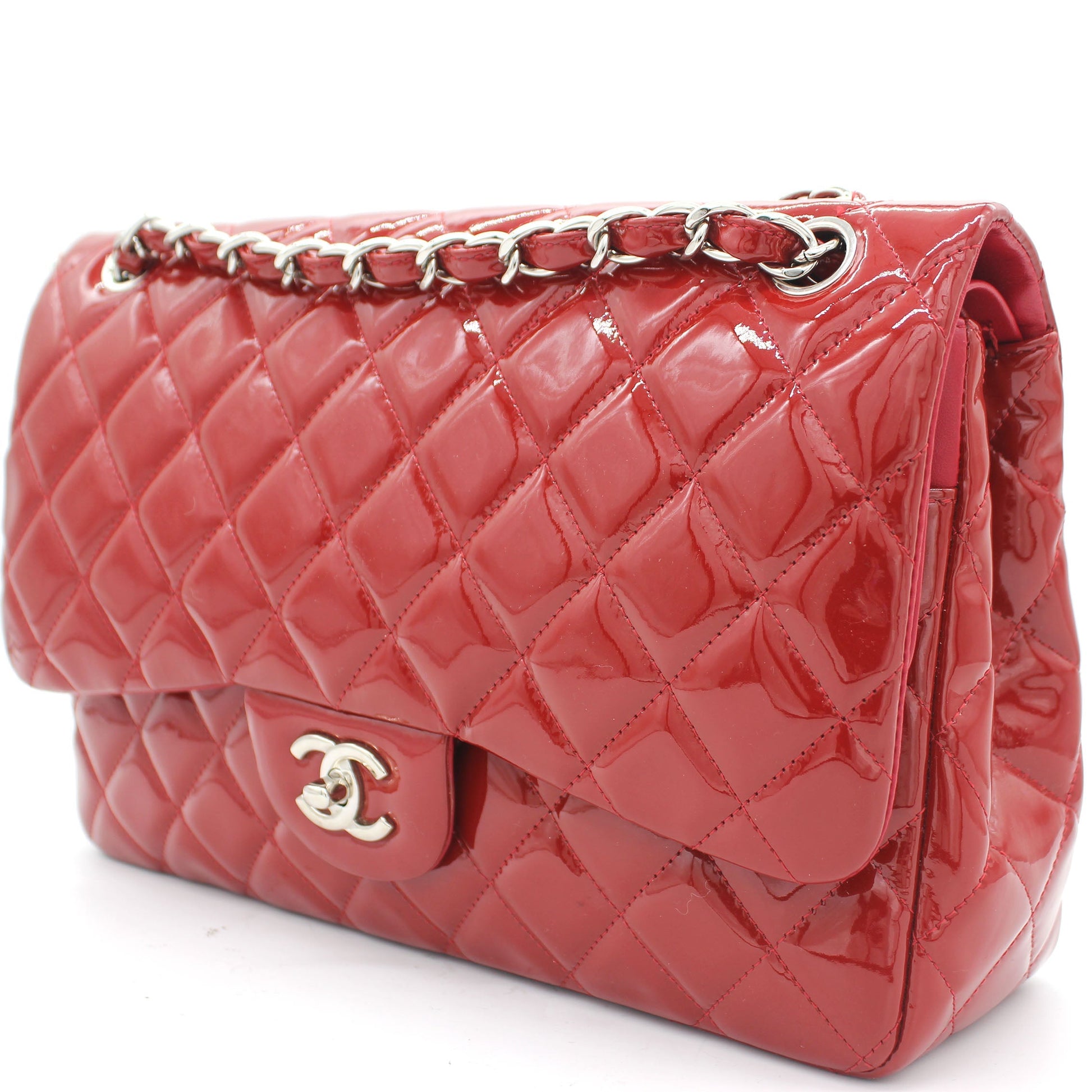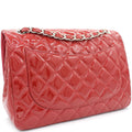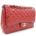 Chanel Quilted Jumbo Double Flap Patent Leather Red