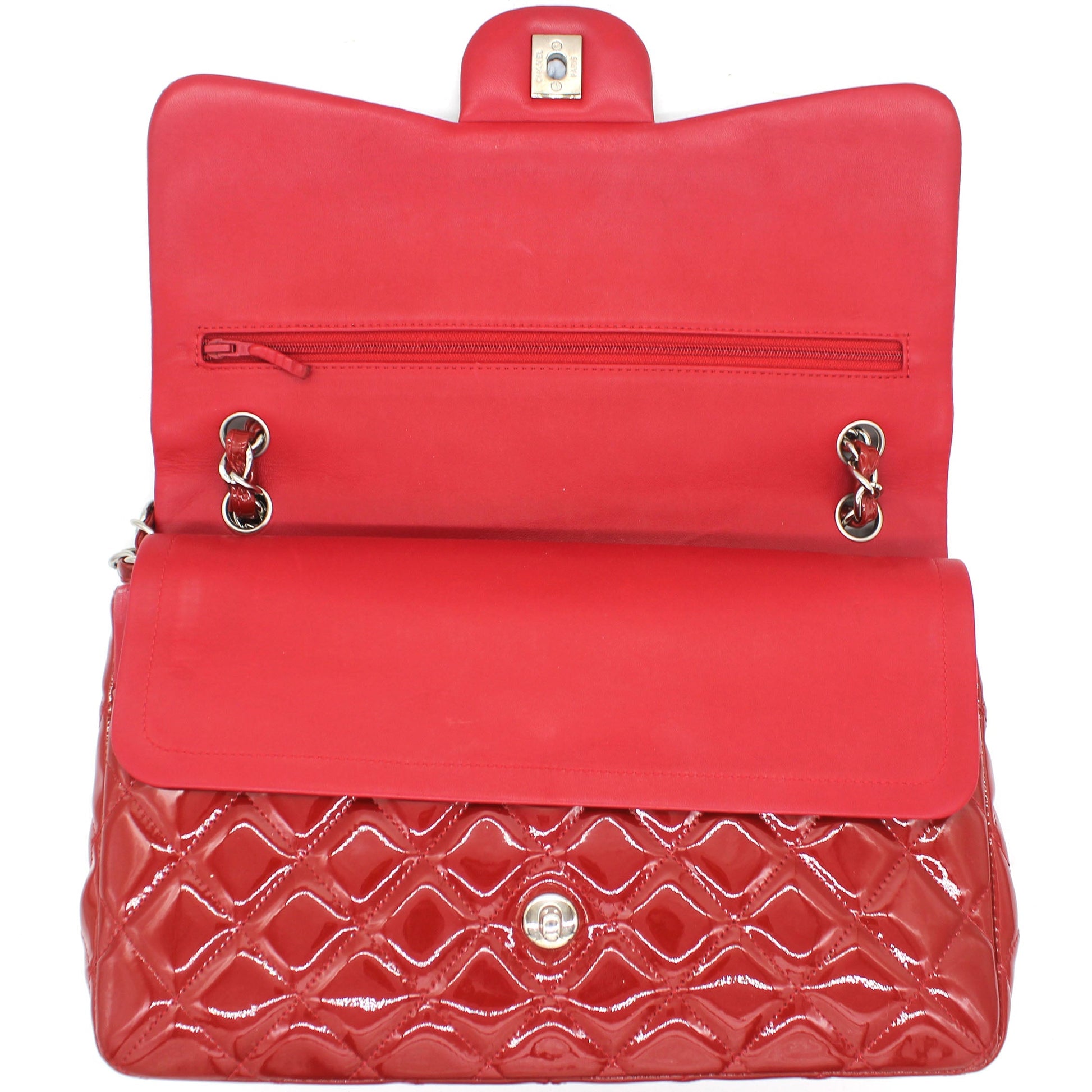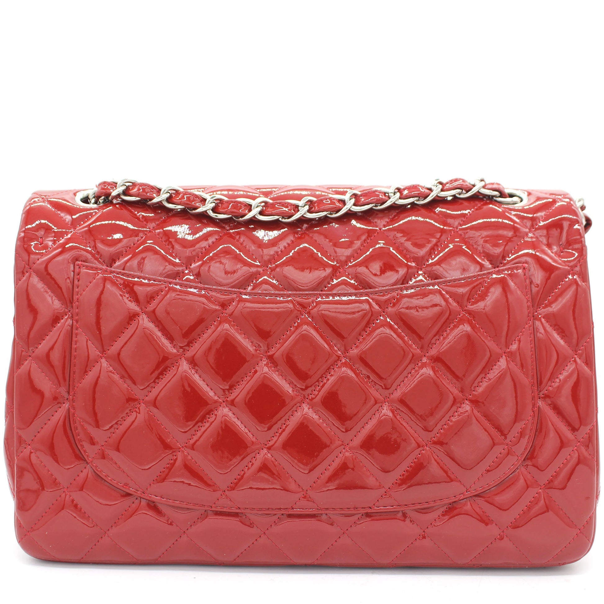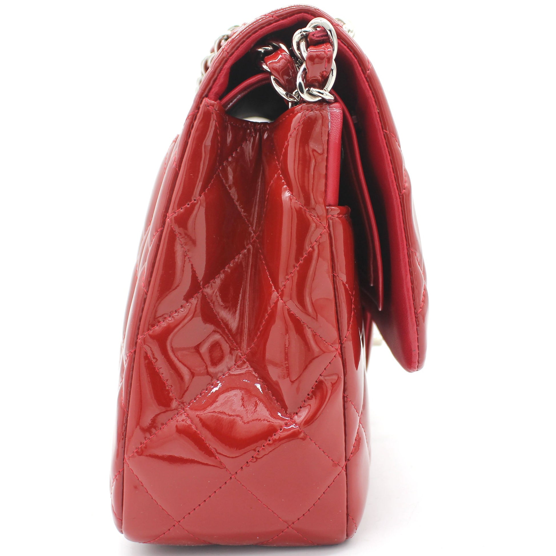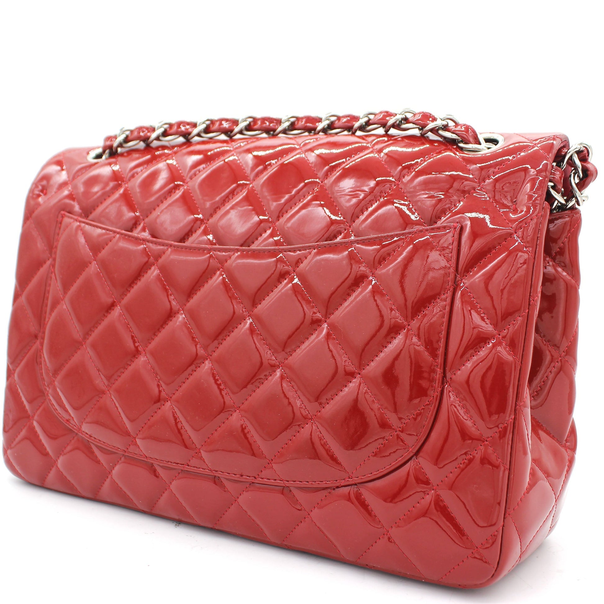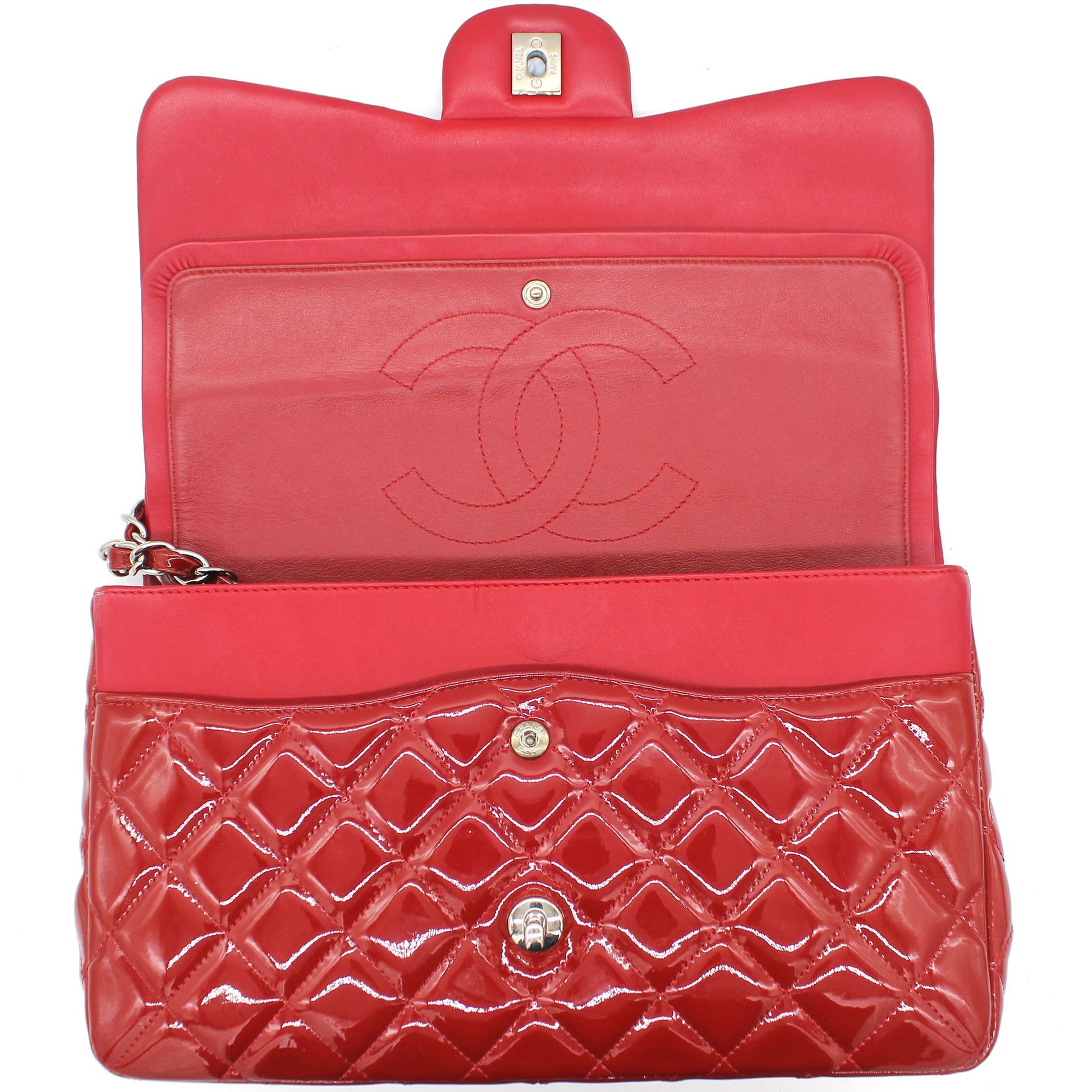 Chanel Quilted Jumbo Double Flap Patent Leather Red