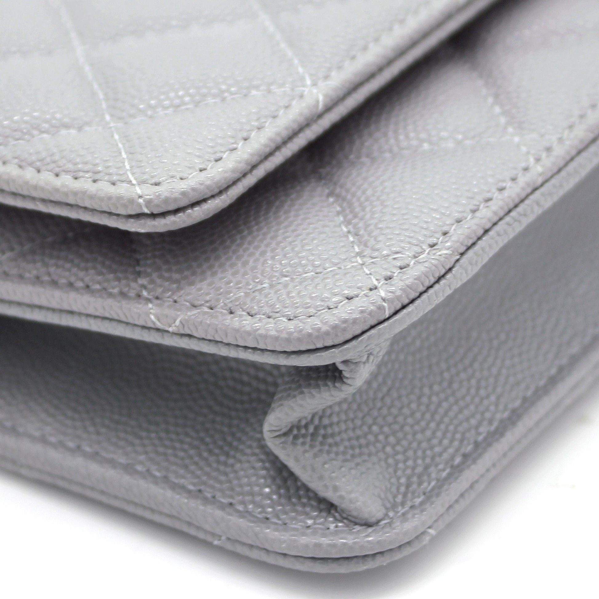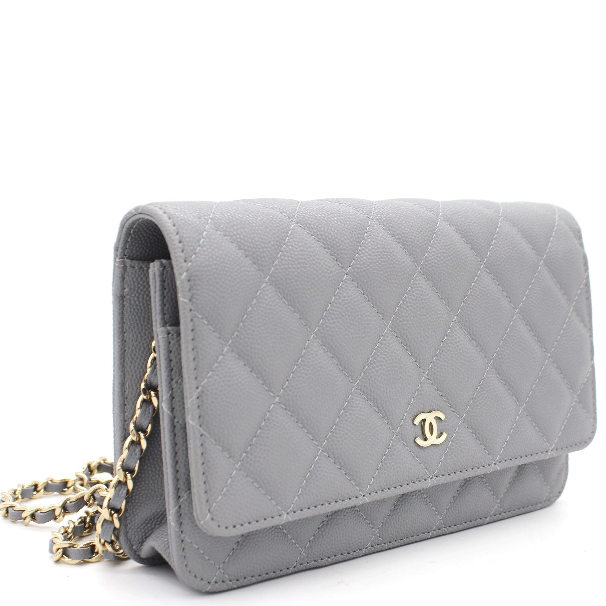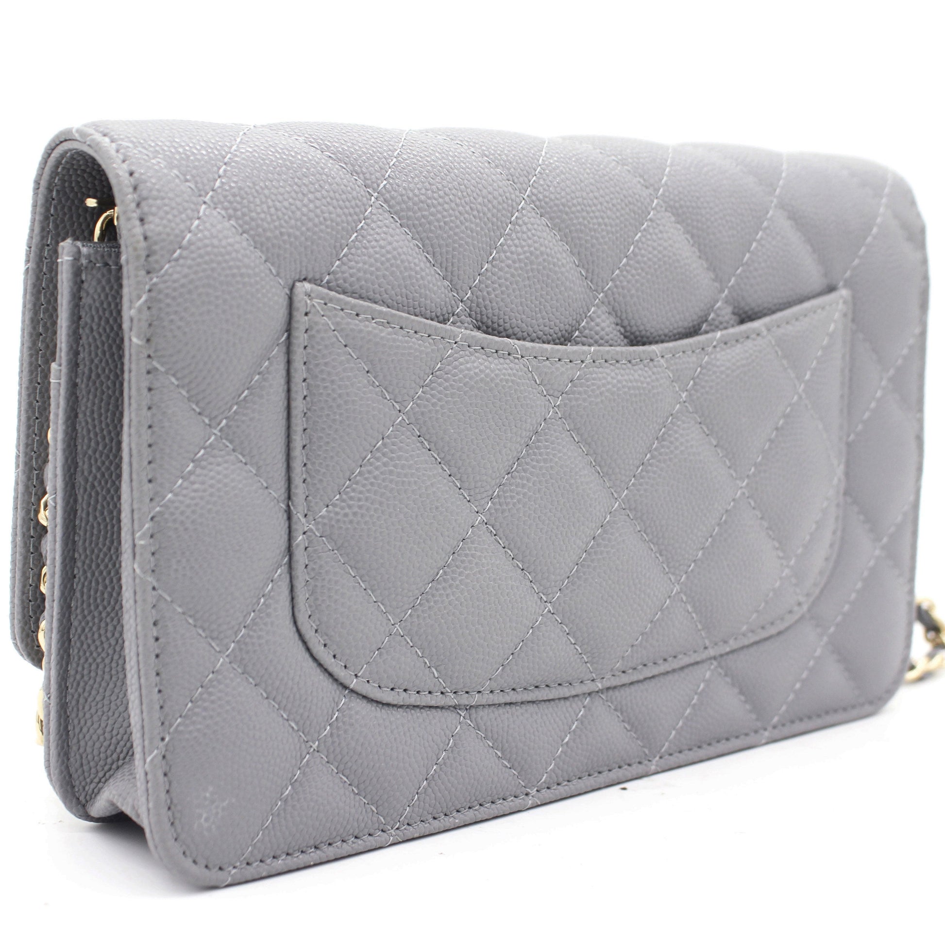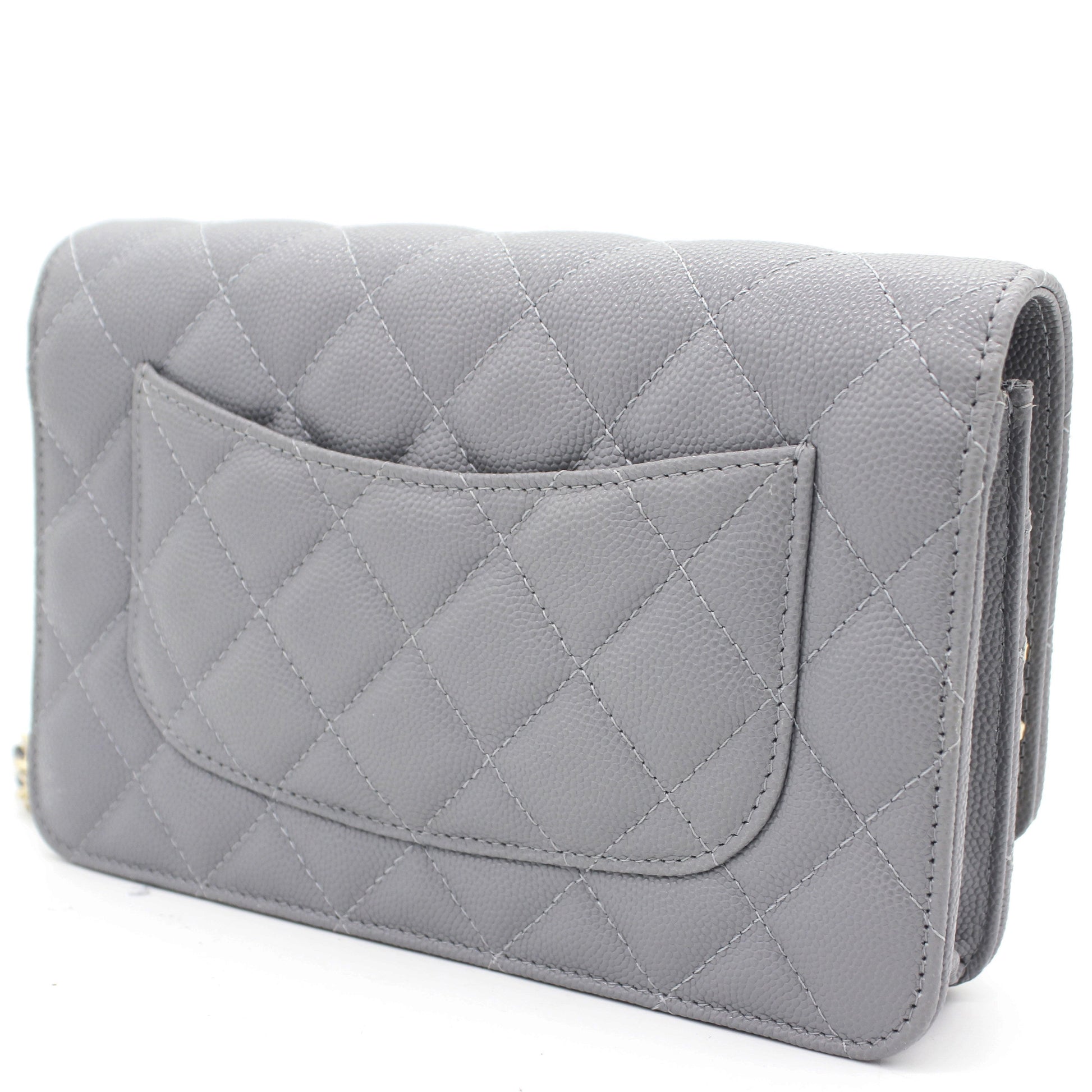 Chanel Quilted Leather WOC Chain Clutch Bag Grey Caviar