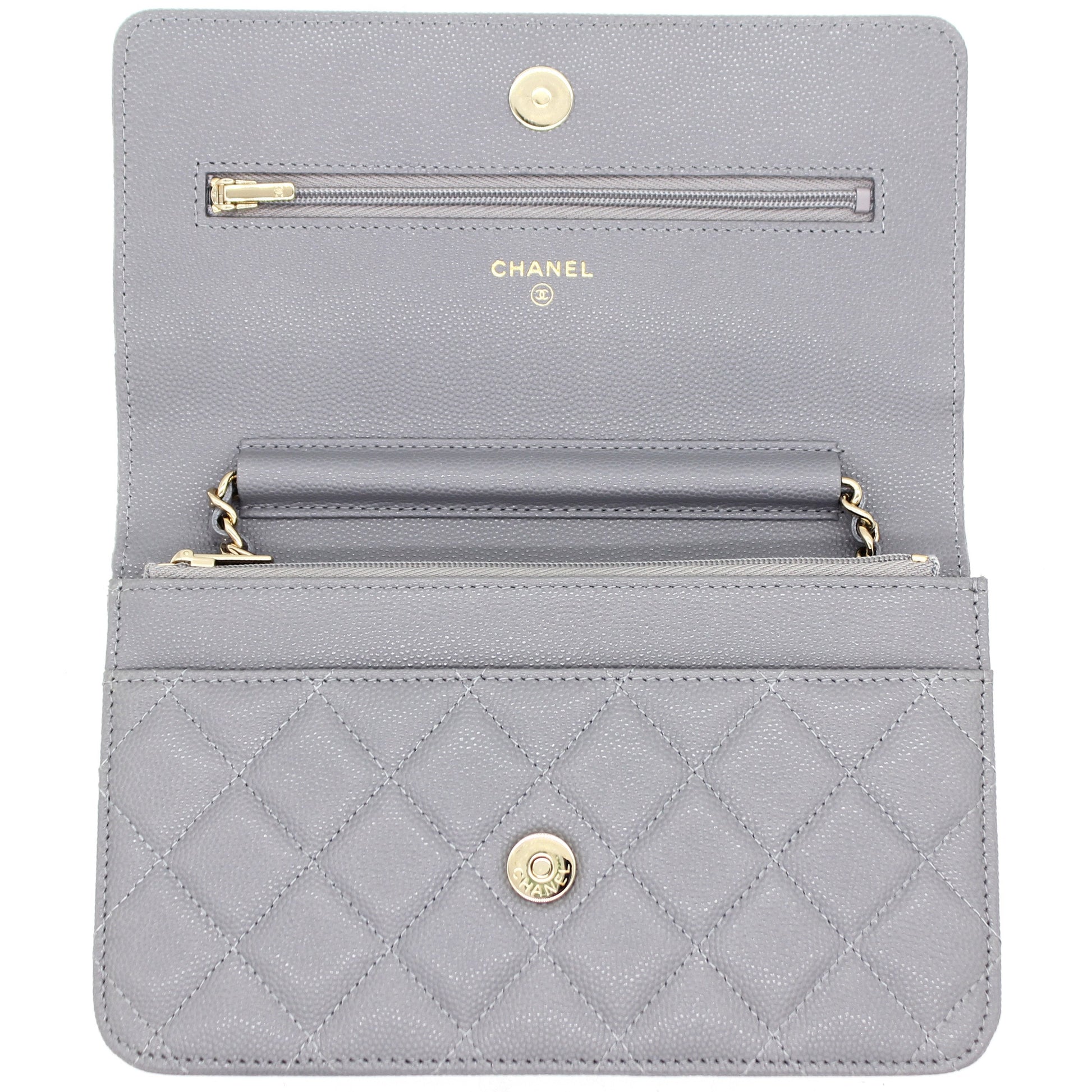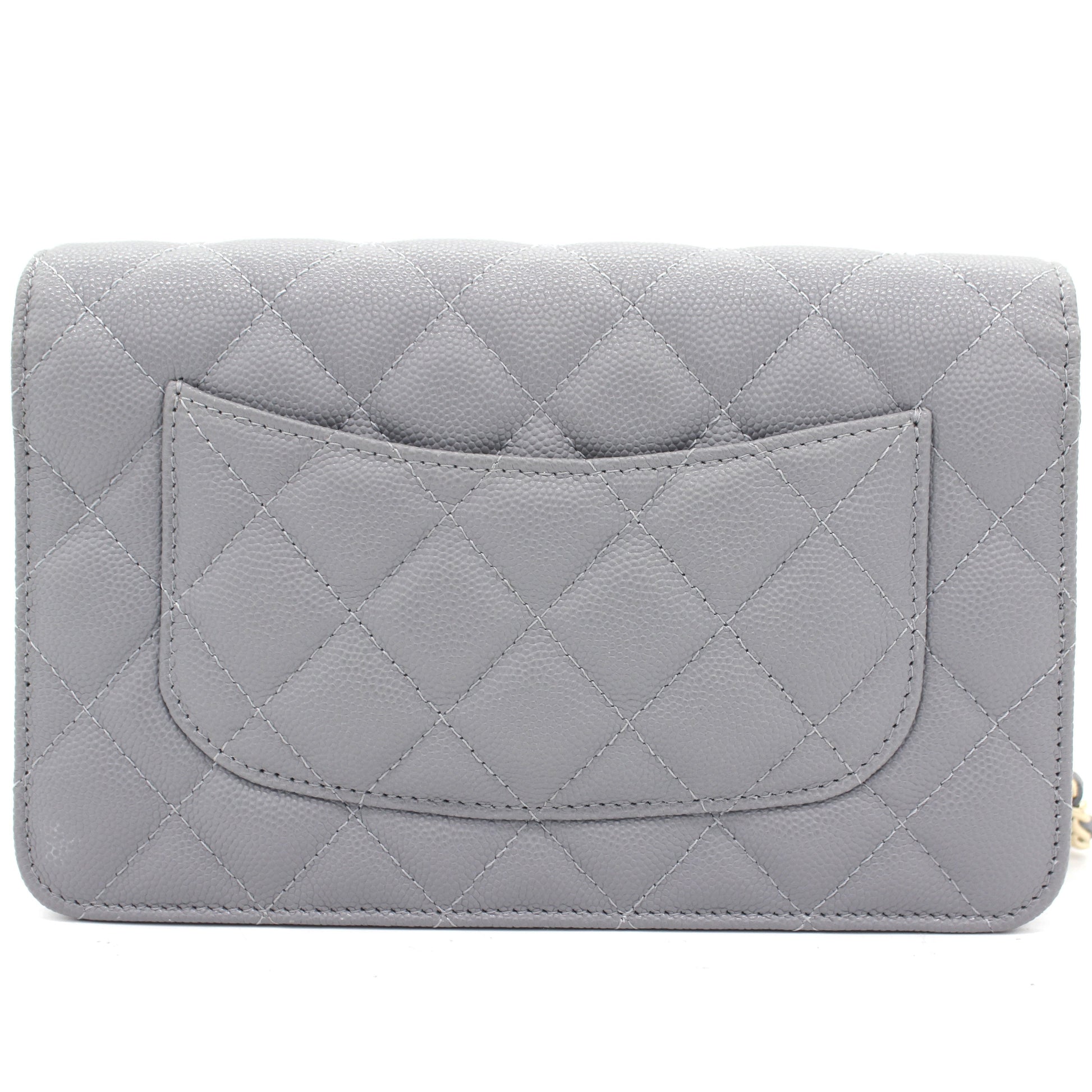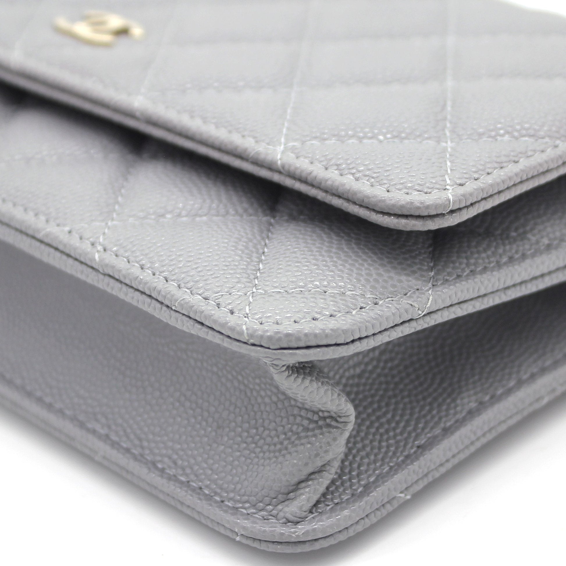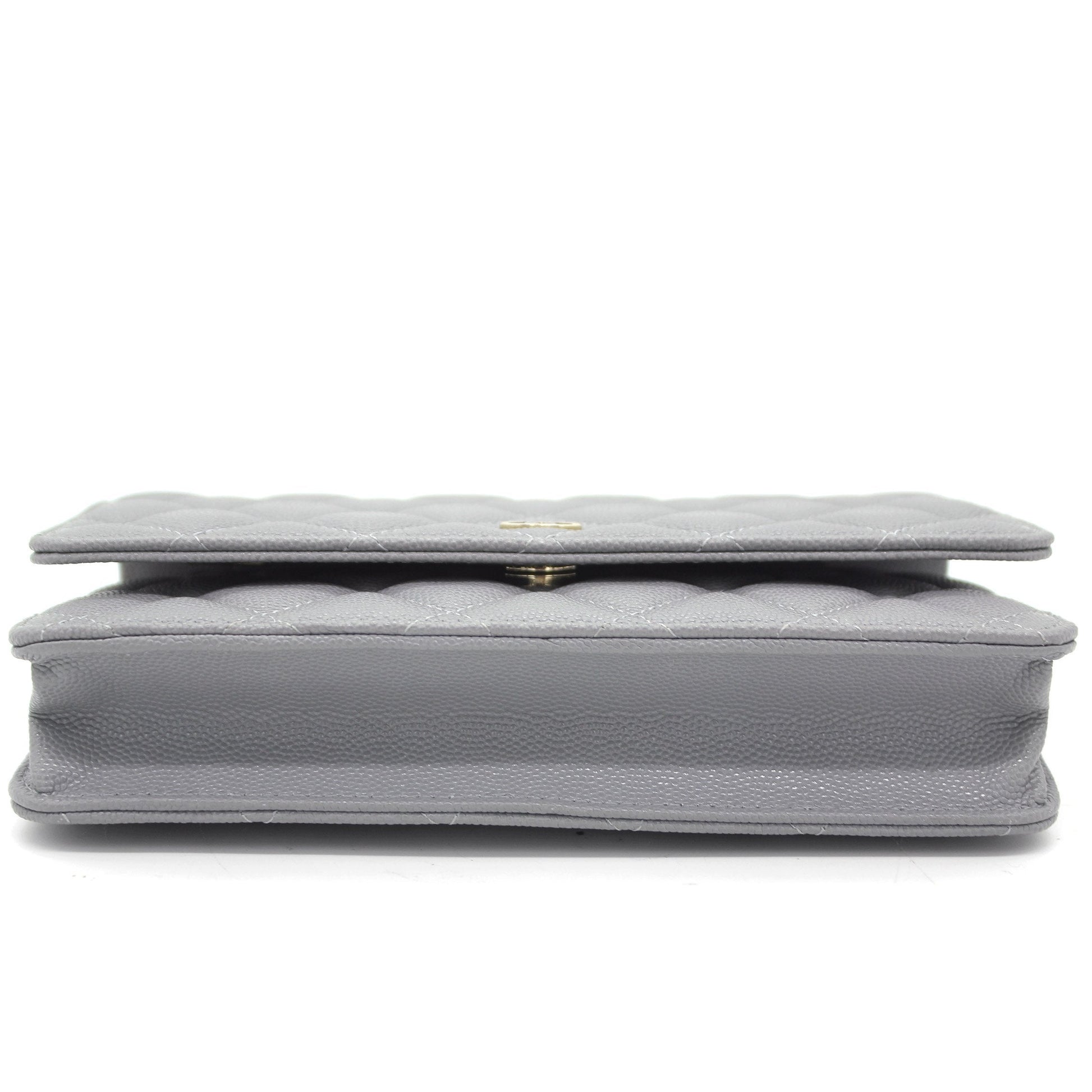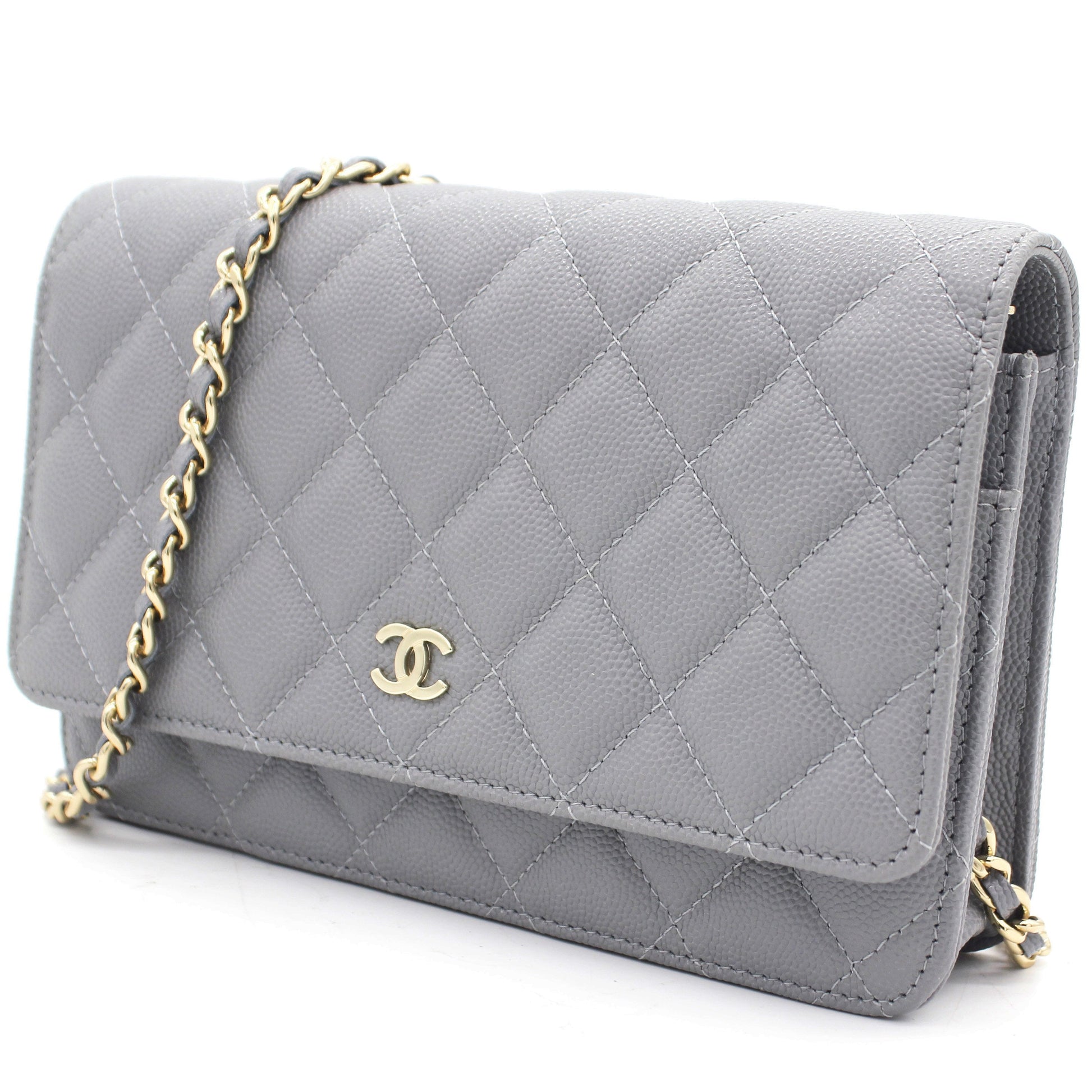 Chanel Quilted Leather WOC Chain Clutch Bag Grey Caviar