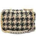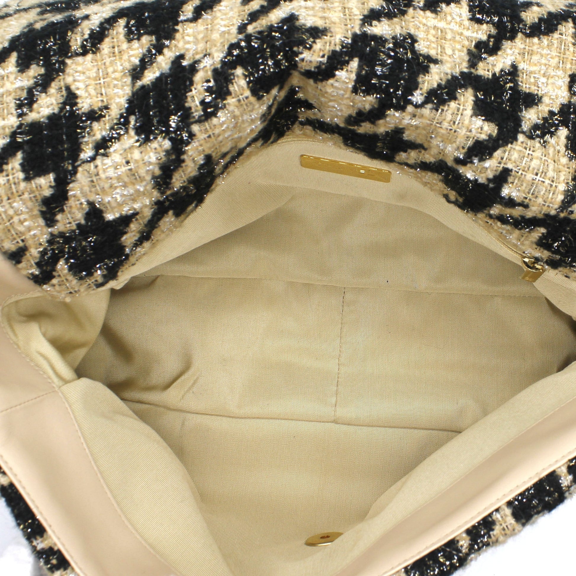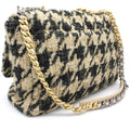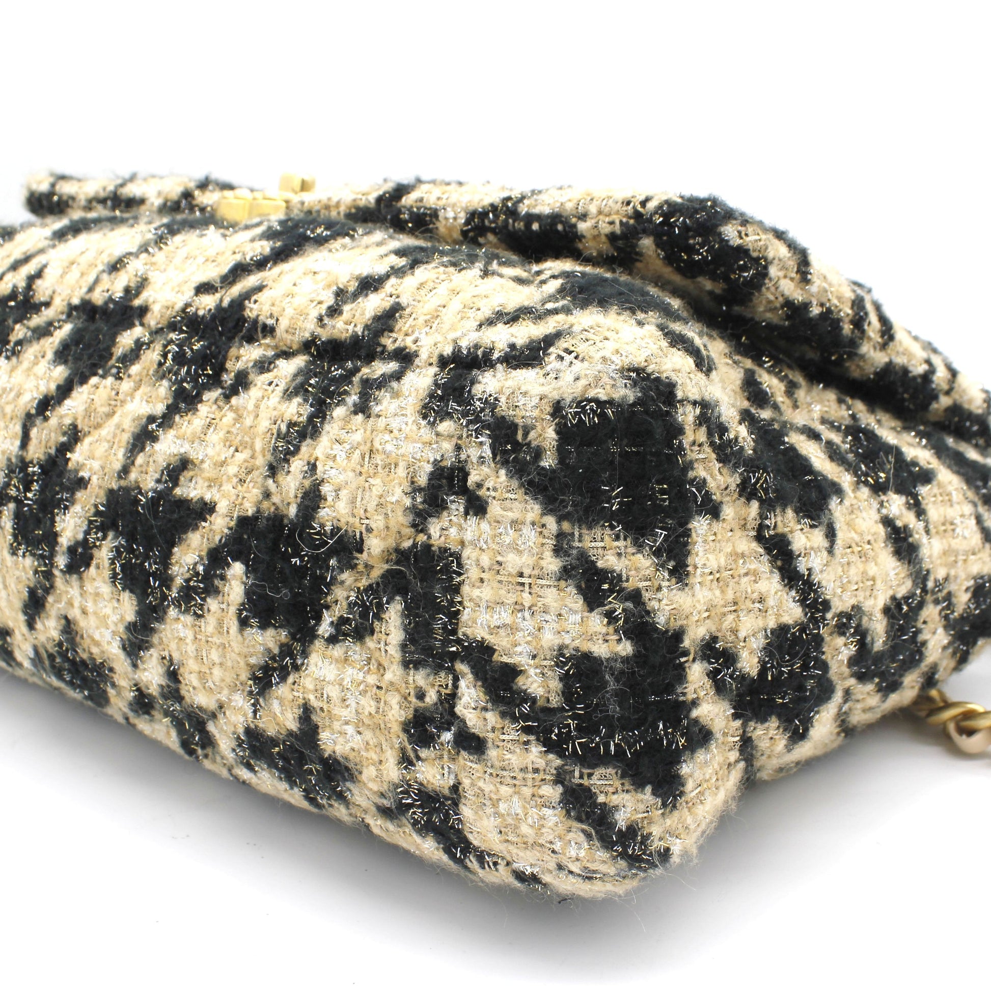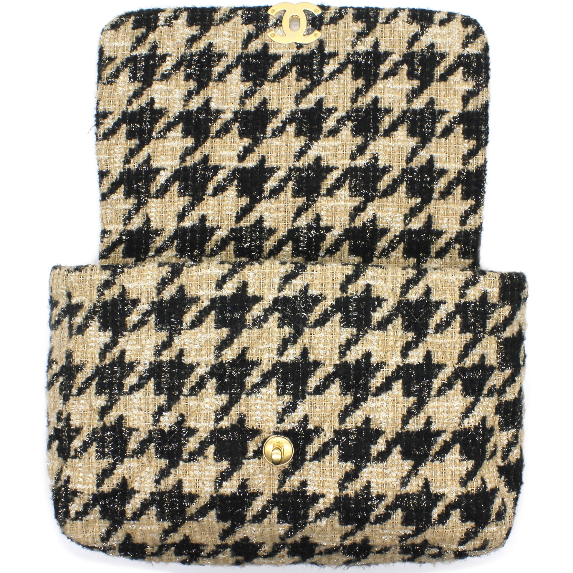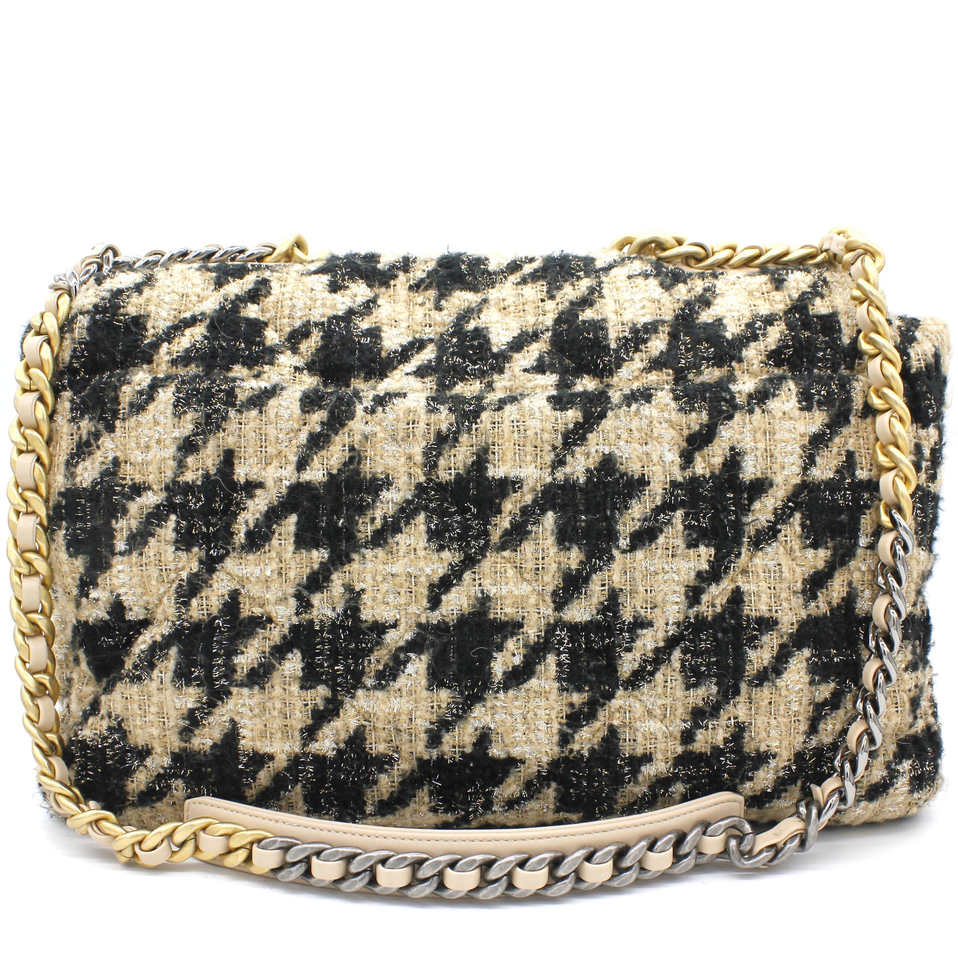 | This pillowy soft shoulder bag is crafted of oversized Brown,Black and white tweed . The refined bag features a chain detail CC turn lock on the flap, a magnetic snap pocket at the rear, and a leather threaded aged gold, ruthenium, and dark silver chain link shoulder strap with a leather shoulder pad. The front flap opens to a beige fabric interior with a zipper pocket. | Exterior Material: ?Brown,Black and white tweed exterior with a chain detail CC turn lock, a leather threaded chain link shoulder strap and a chain handle strap. Interior Material: Beige fabric lining with one main compartment and one zipped pocket. Accessories: FULL SET: Receipt; Card; Dust Bag; Box Bought Year: 2019 | ![]() |