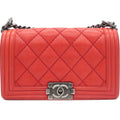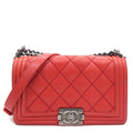 Chanel Quilted Medium Boy Bag Calfskin Red Ruthenium Hardware