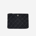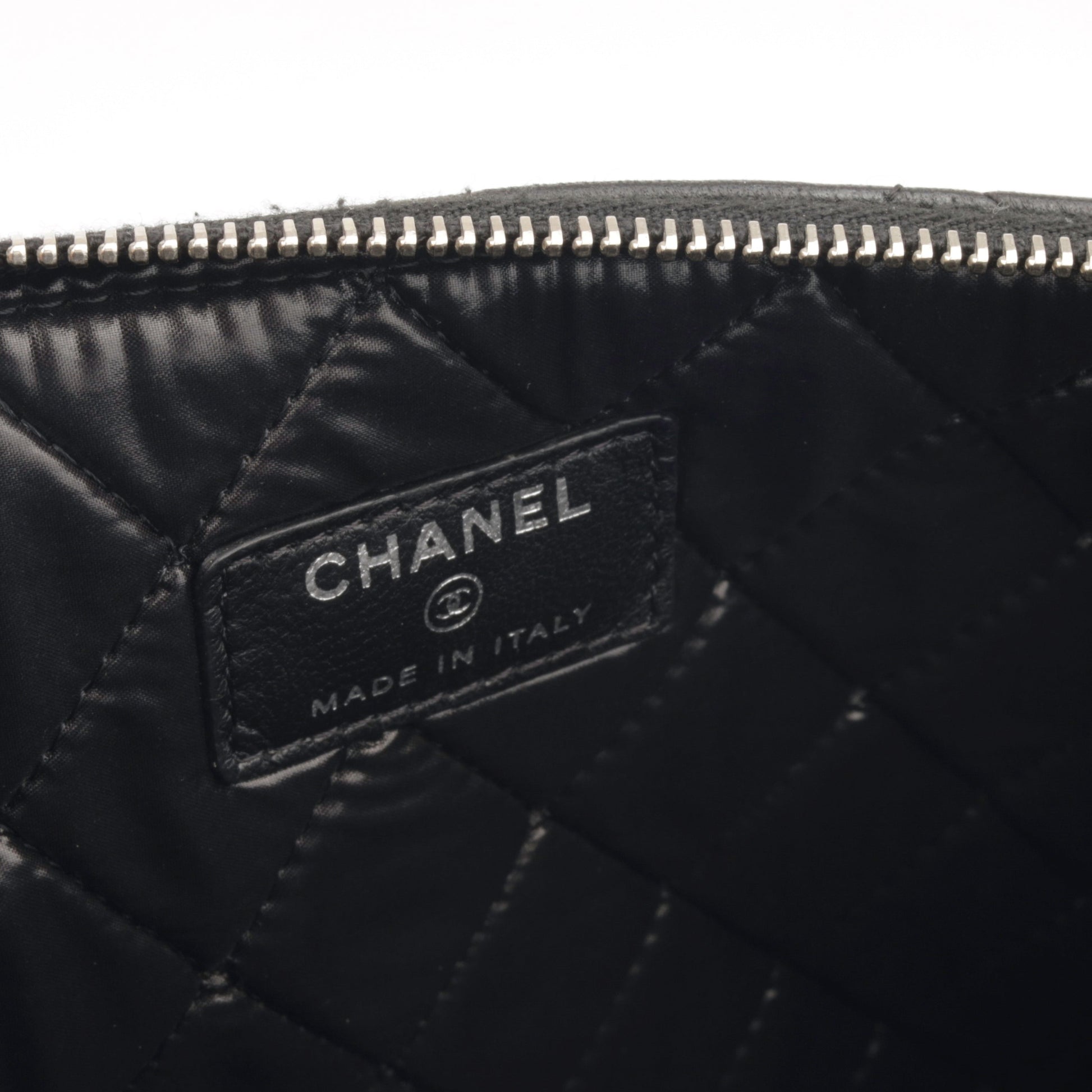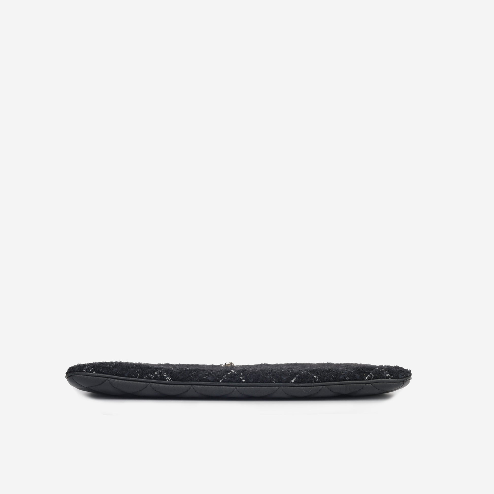 Crafted from a combination quilted black/silver/white tweed fabric and black lambskin leather, Chanel presents their classy and practical O-case pouch. This piece is sleek, stylish and sophisticated. The ideal every day clutch, the O-Case by Chanel is understated and elegant while remaining timeless and fashion forward.