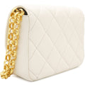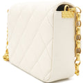 | This is an CHANEL Quilted White Flap Bag. This shoulder bag is crafted of diamond-quilted leather in white. The refined bag features a Chanel CC turn-lock on the flap and a leather threaded aged gold and ruthenium chain-link shoulder strap with a shoulder pad. | Material: Leather Lining: Textile Hardware: Gold Color Finish Metal Accessories: Dust Bag; Card Serial Number: 30552480 Production Year: 2021 | ![]() |