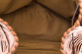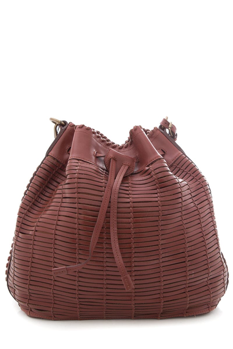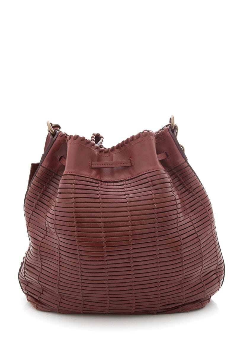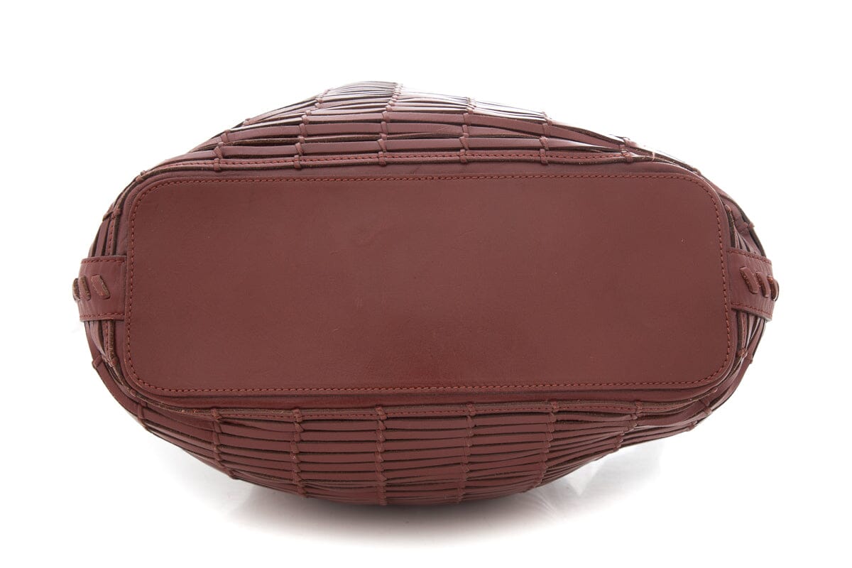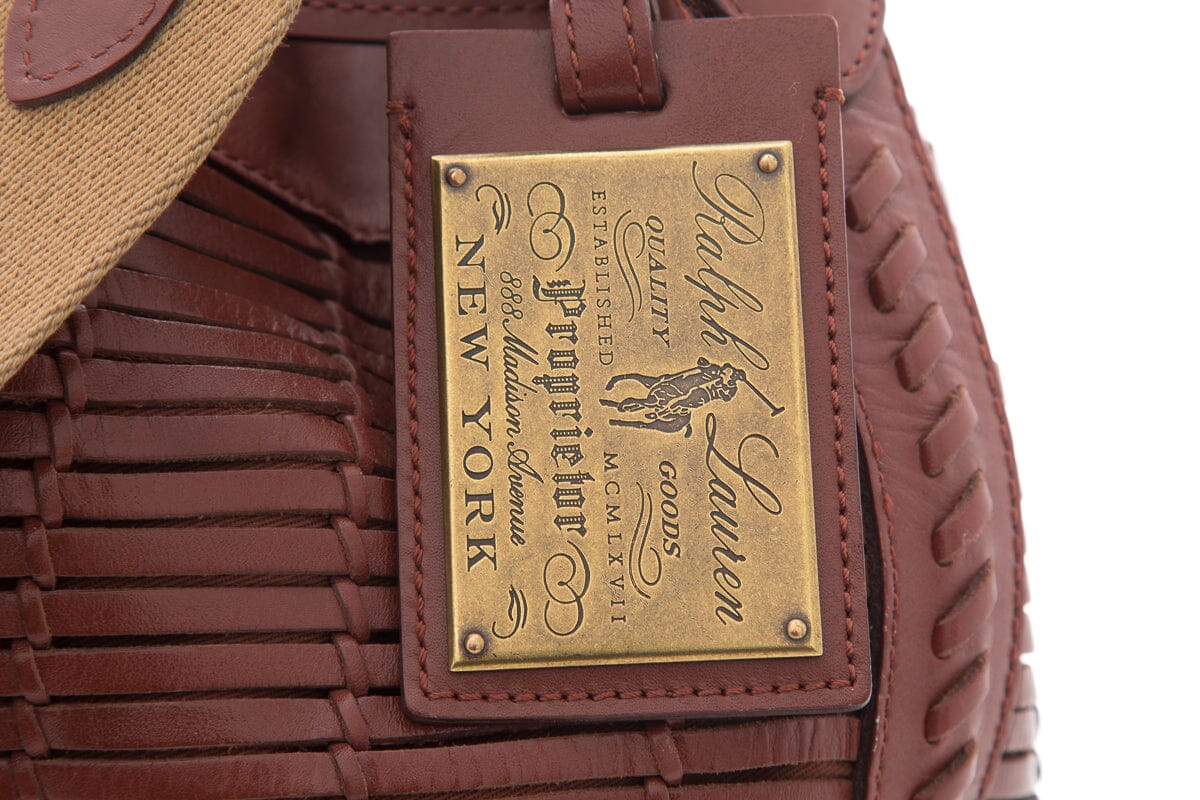 Ralph Lauren Brown Woven Leather Handbag. This item is in good condition; some minor scratching on bottom panel as well as some ink marks on interior lining.