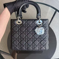 *Rare Caviar* Dior Lady Medium - Grained Calfskin Cannage Black Silver Hardware