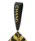 *RARE* CHANEL 2019 METIER D'ART BLACK & GOLD STRIPE LAMBSKIN LEATHER PYRAMID BAG WITH LOGO WRIST STRAP AND GOLD HARDWARE DXBS2075
