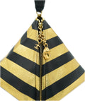 *RARE* CHANEL 2019 METIER D'ART BLACK & GOLD STRIPE LAMBSKIN LEATHER PYRAMID BAG WITH LOGO WRIST STRAP AND GOLD HARDWARE
