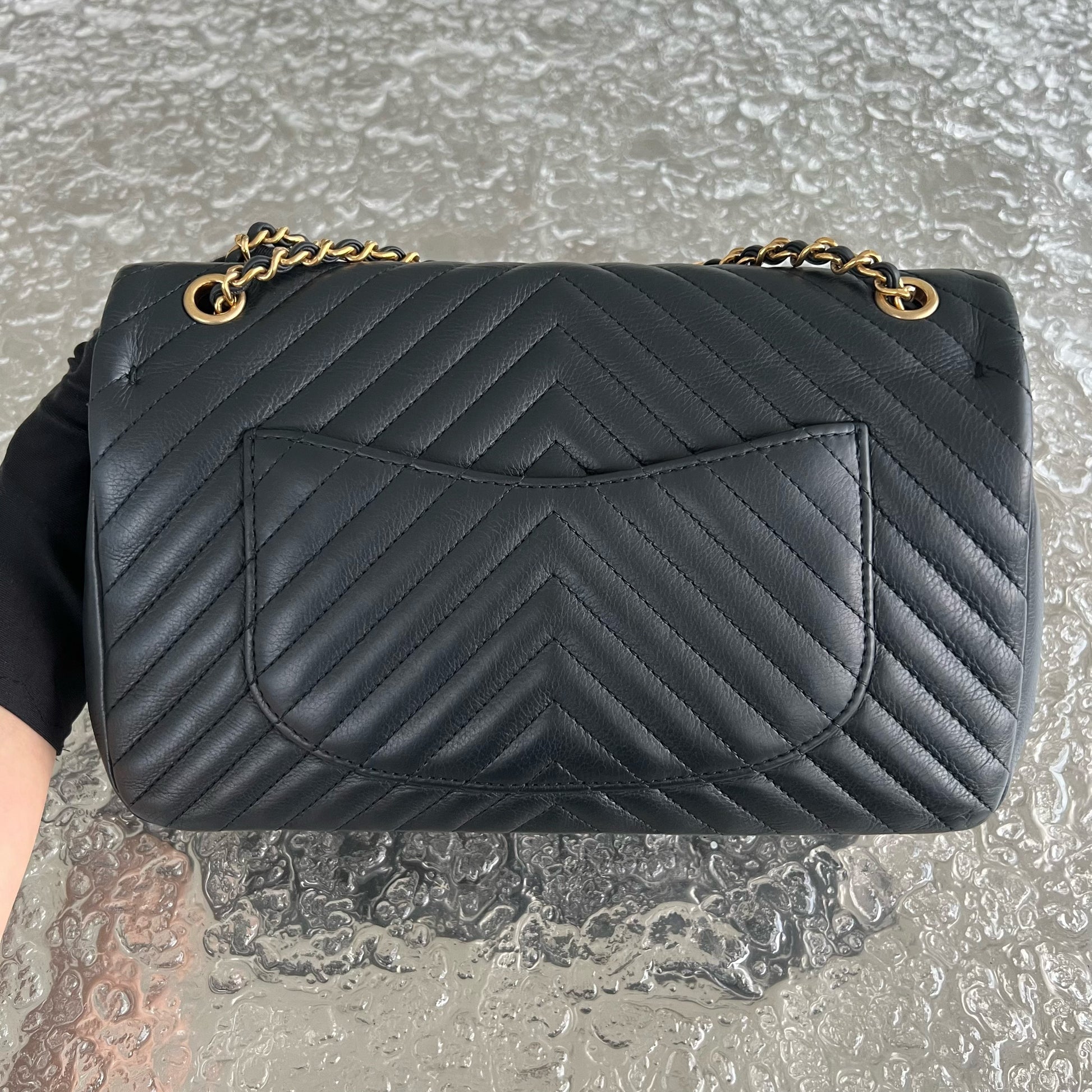 *Rare* Chanell Classic Flap Small - Rock The Corner Seasonal Chevron Calfskin Black Golden Hardware Series 26
