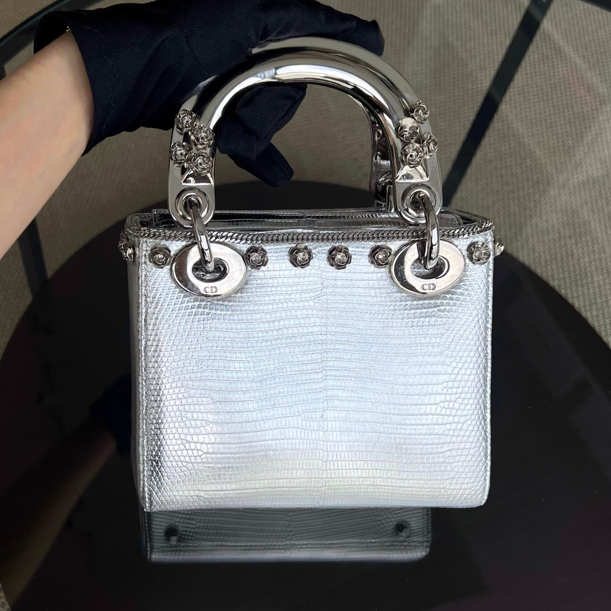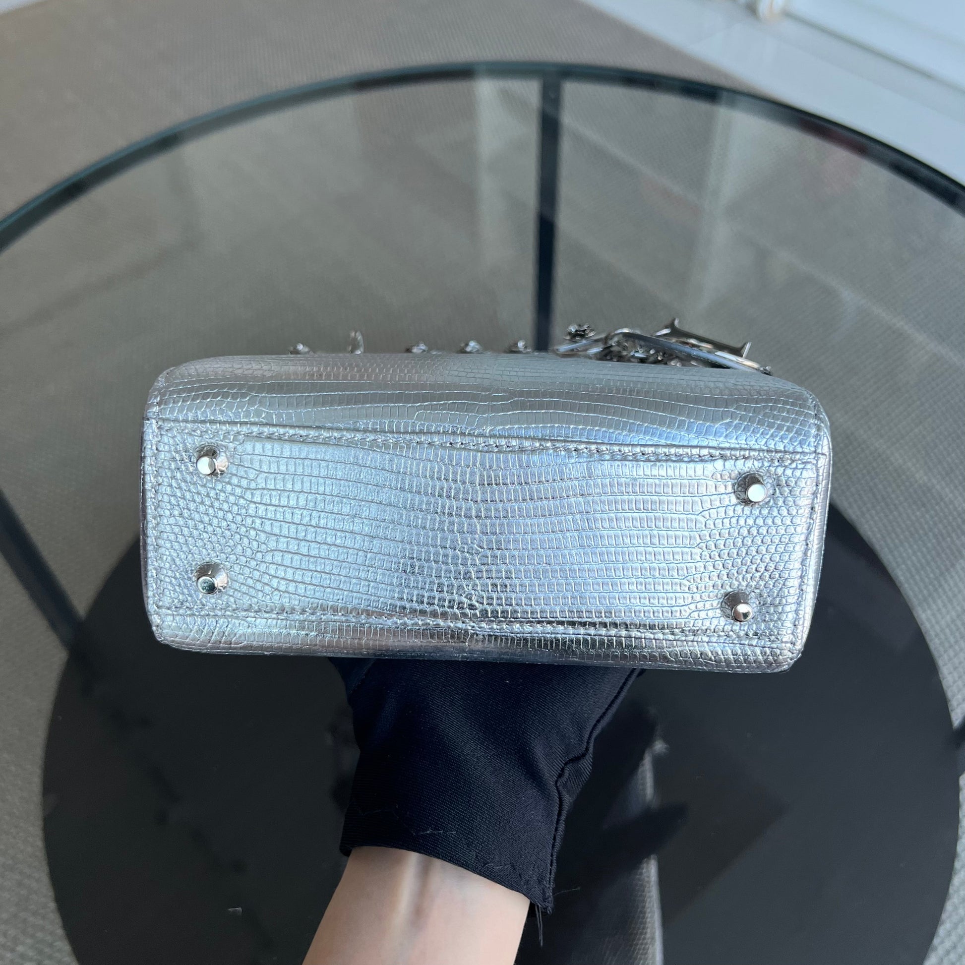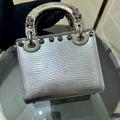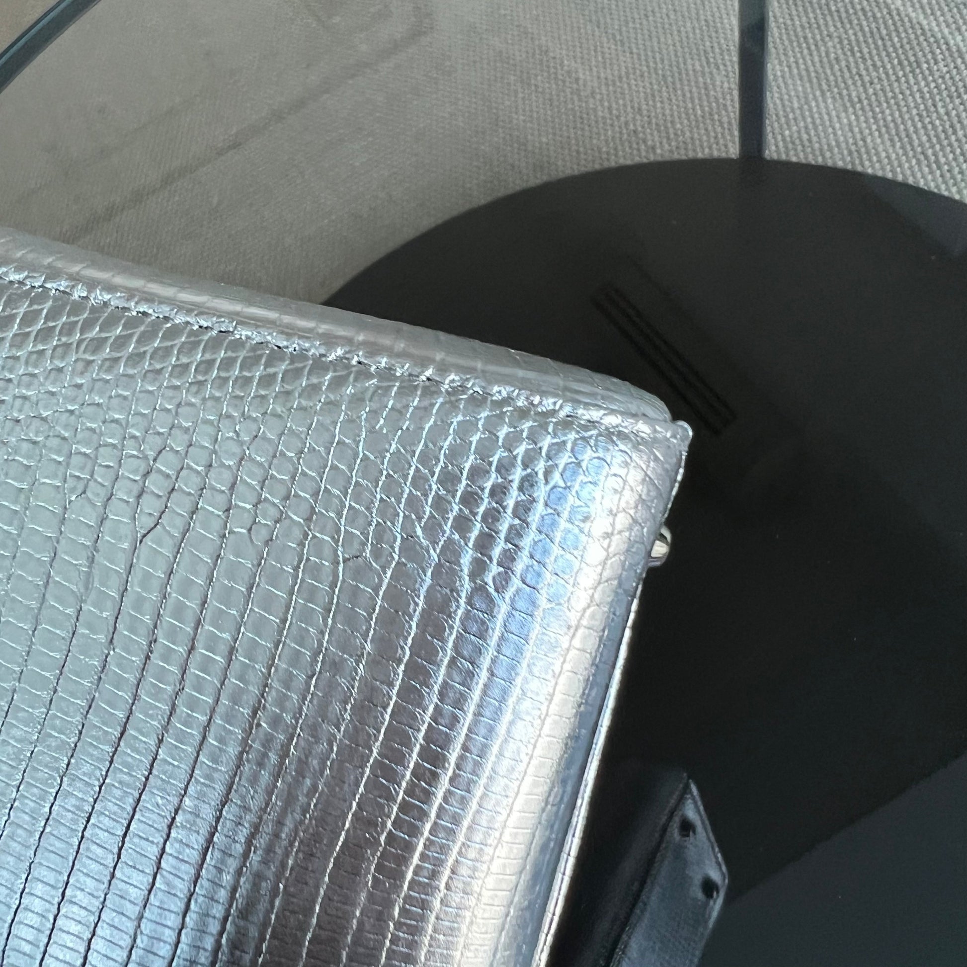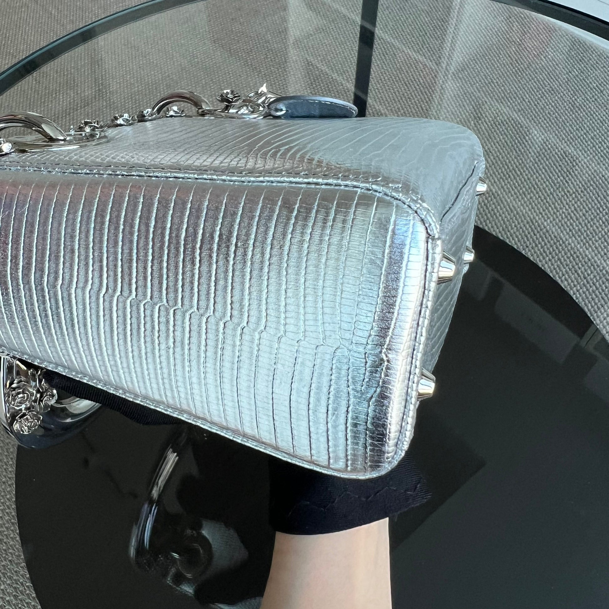 *Rare, Exotic* Lady Mini Metallic Lizard Leather Silver Hardware Adjustable Strap
