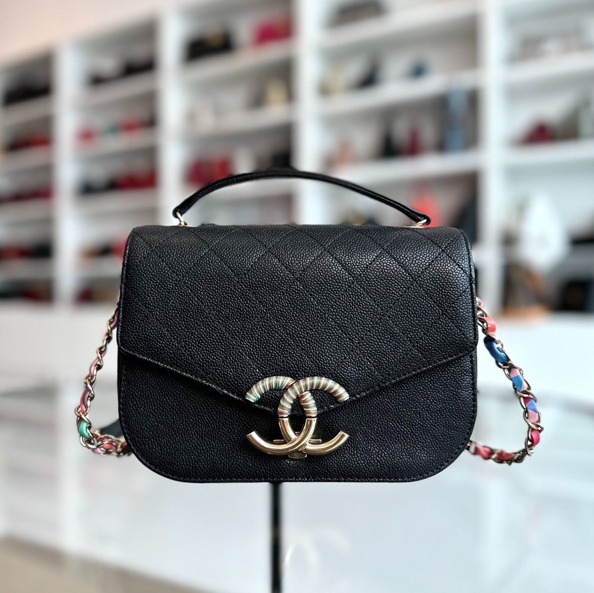 *Rare, Like New* Cuba Coco Caviar Quilted Cross Body Black GHW No 23