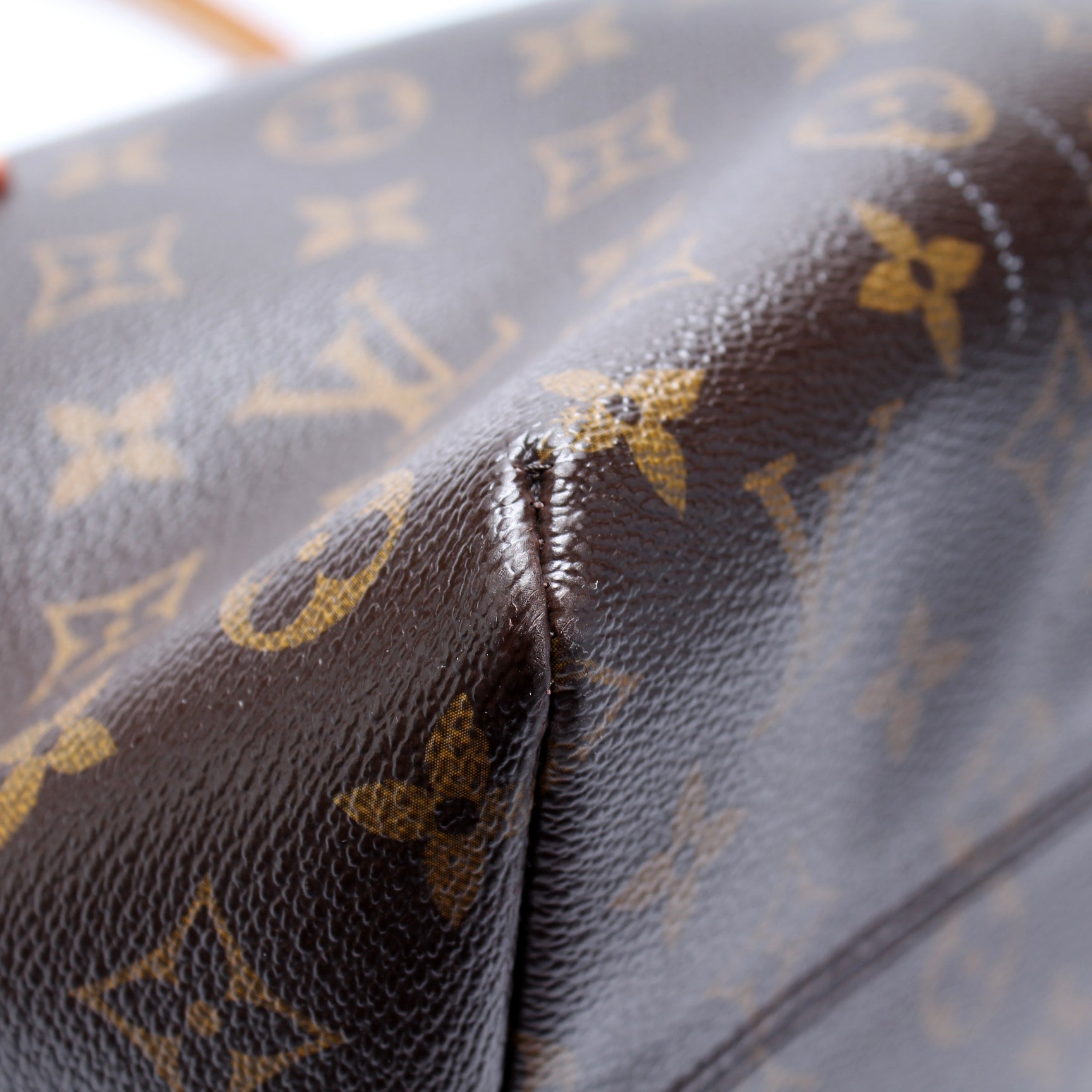 Exterior: The exterior Monogram coated canvas is free of any rips or cracks.