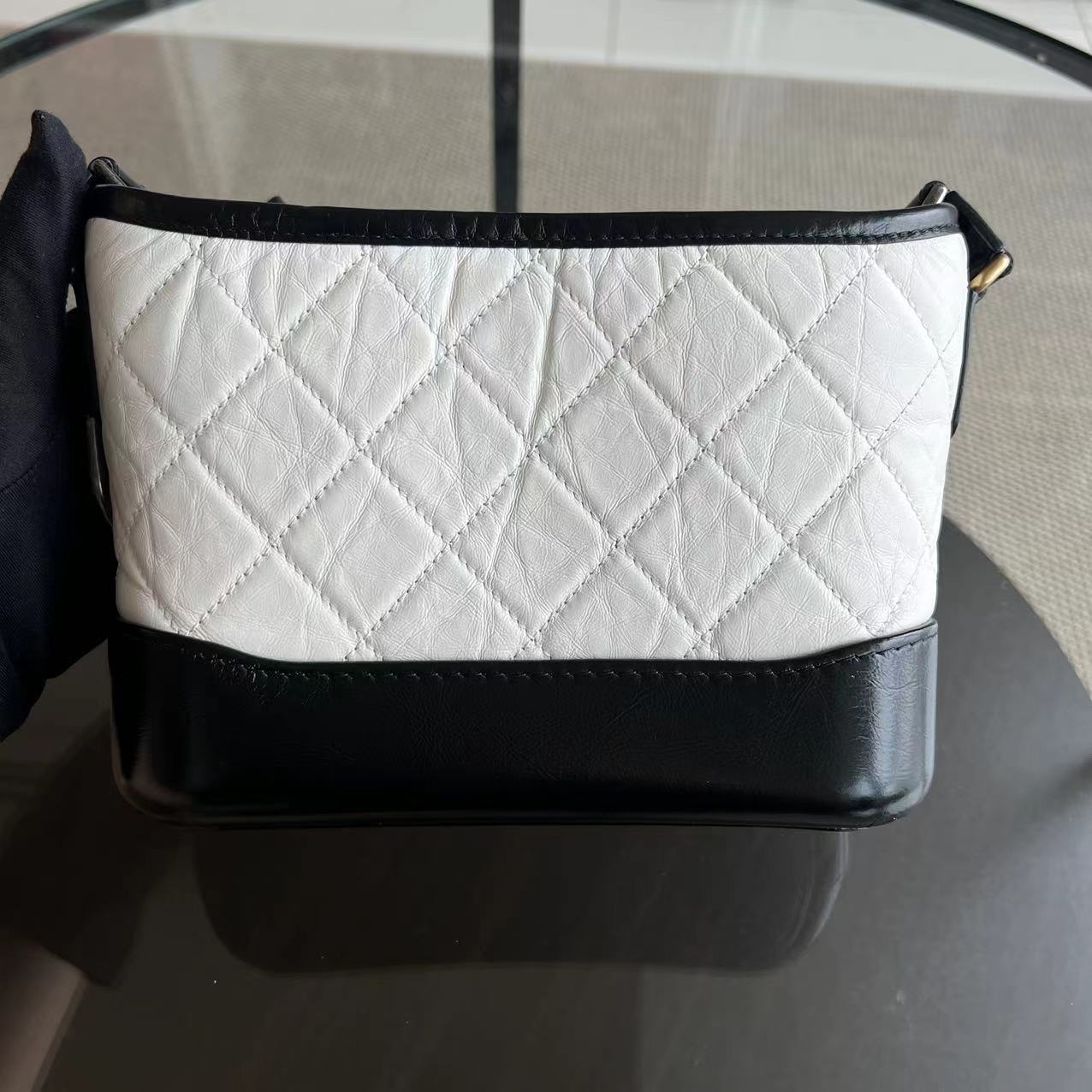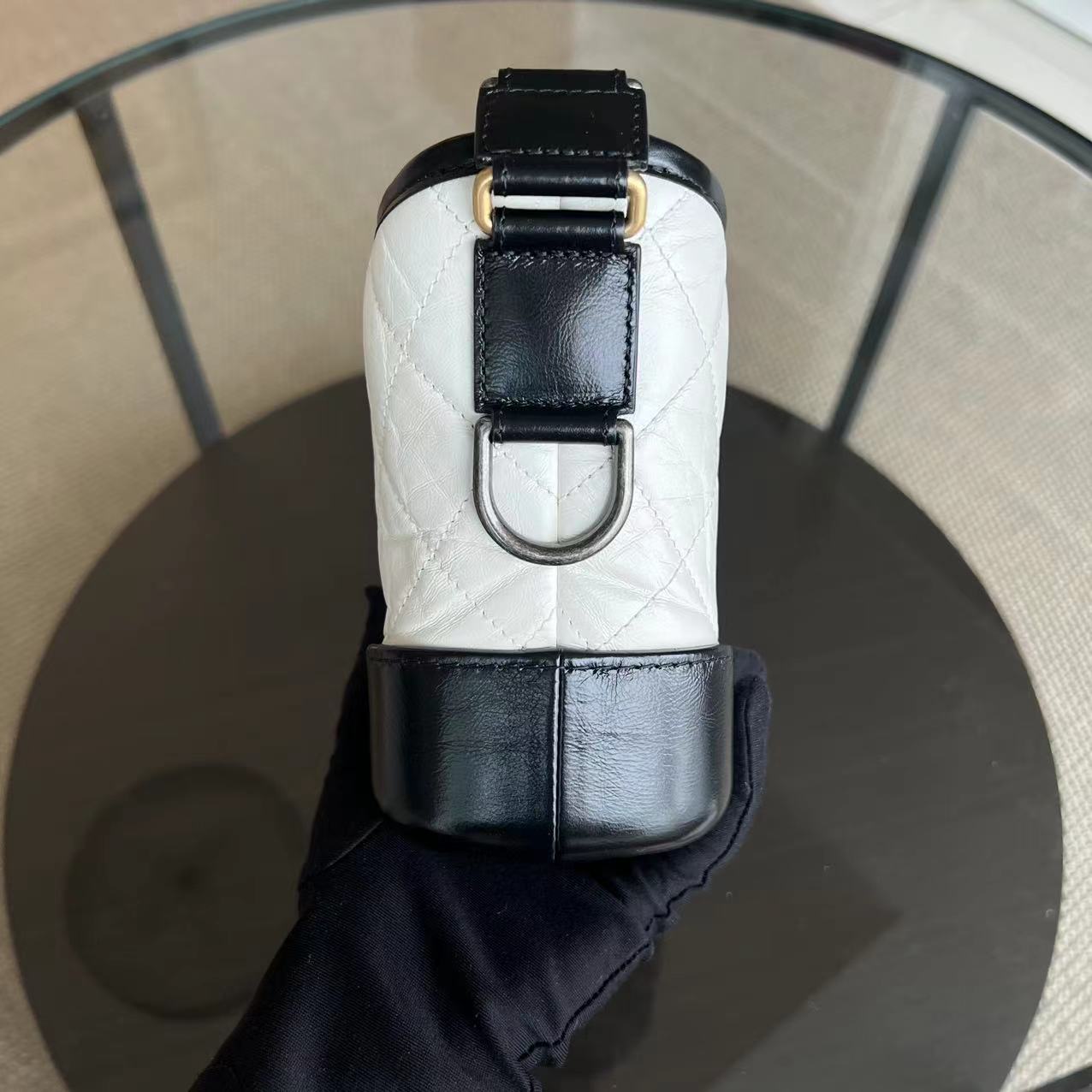 Chanel Small Gabrielle Hobo Quilted Calfskin Black White Two-tone Hardware