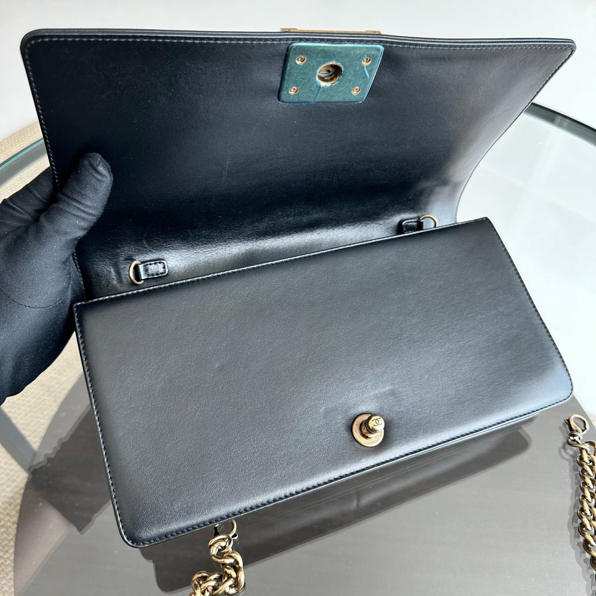 *Receipt* Boy East West Crest Lambskin Embellished Cruise 2016 Leboy Shoulder Bag No 21