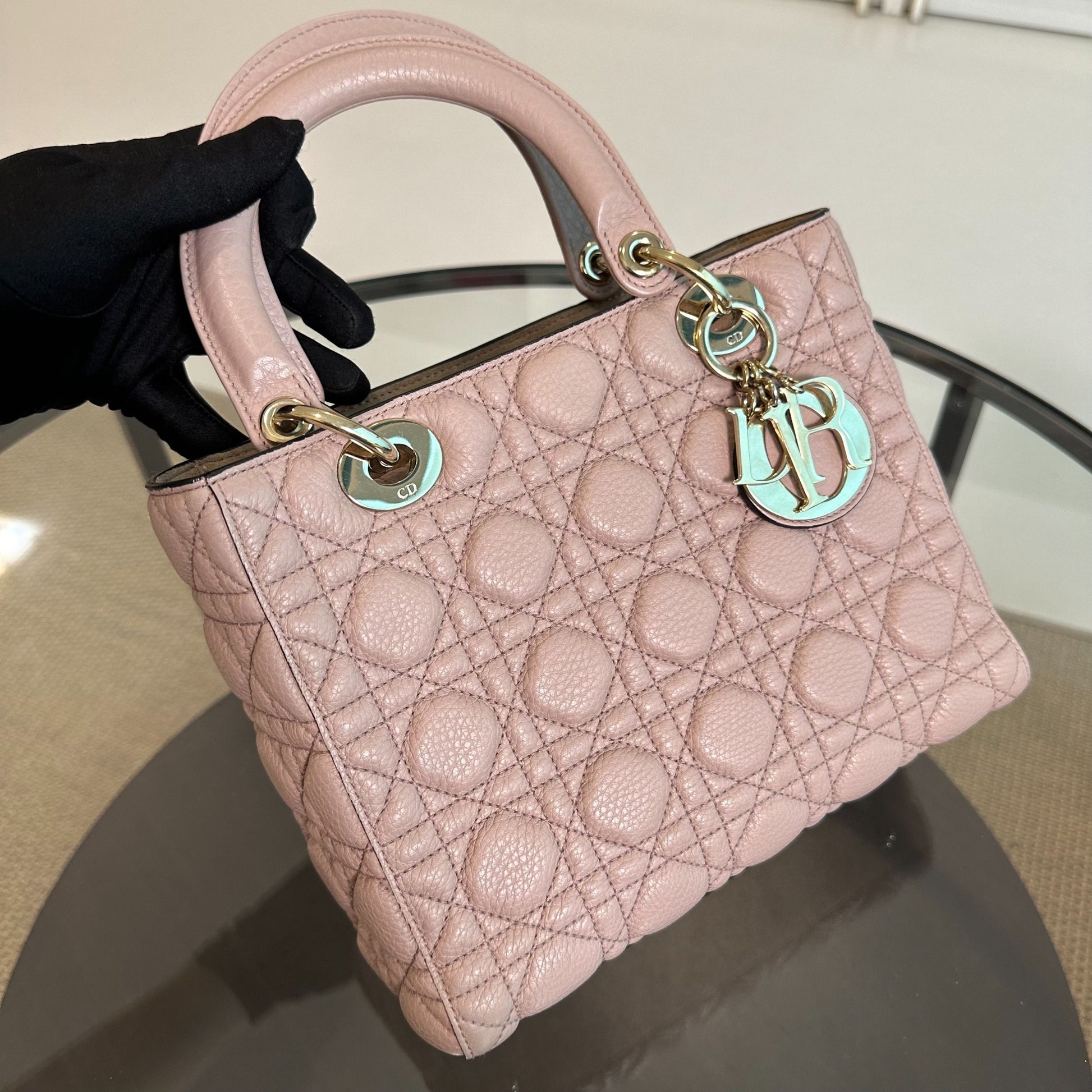 *Receipt* Lady Medium Grained Calfskin Flap Nude Pink LGHW