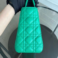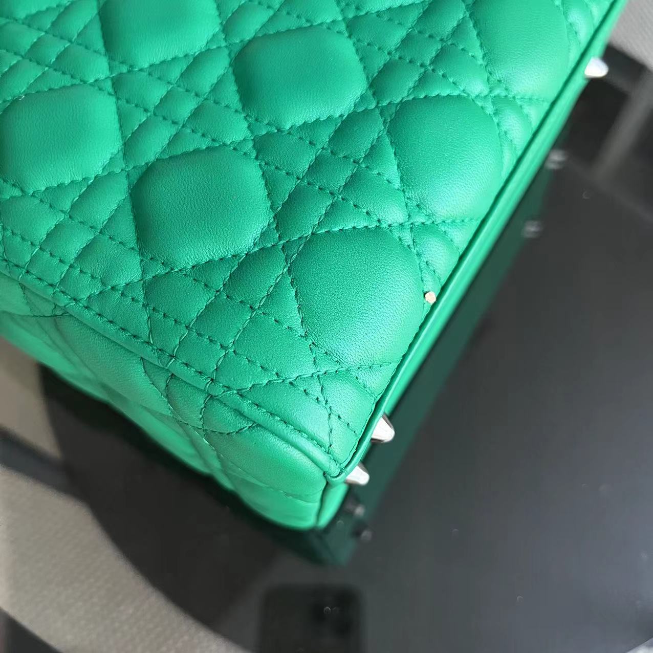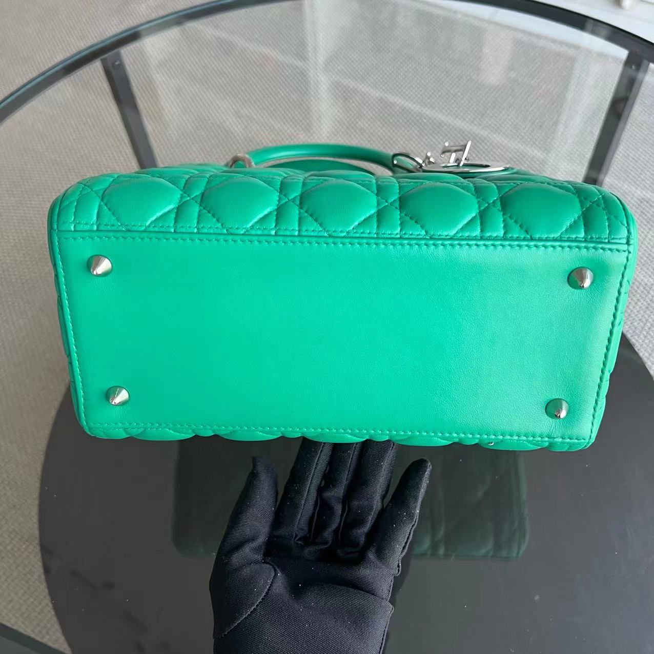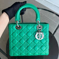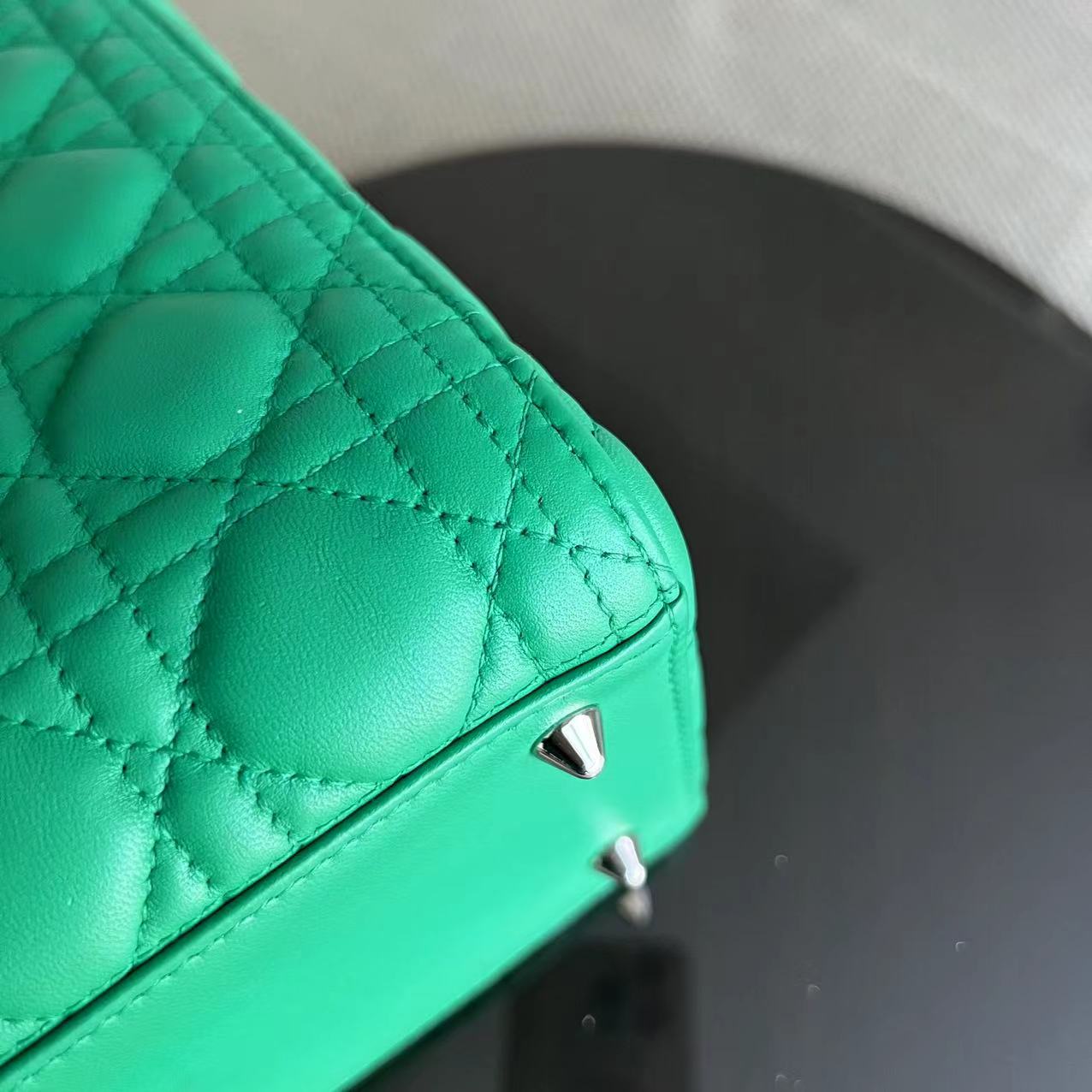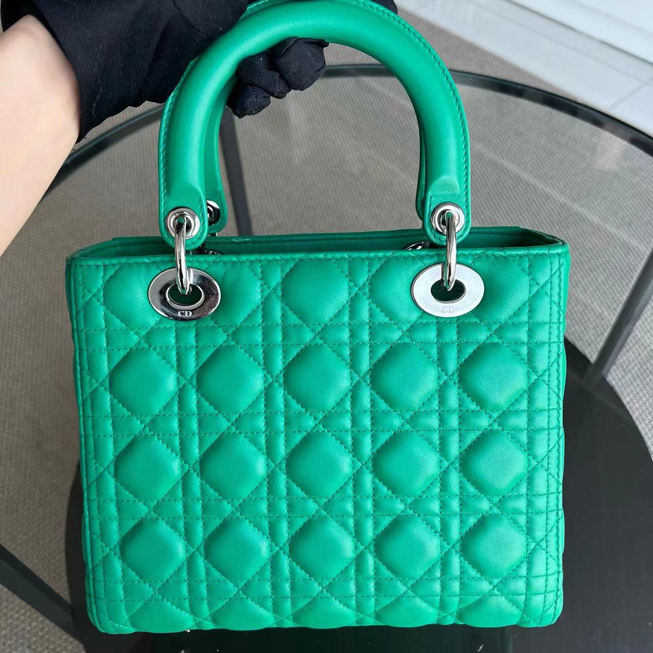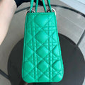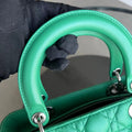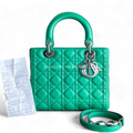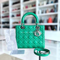 A true Dior gem! This Lady Dior Small Cannage Lambskin in stunning green with silver hardware is an incredibly rare find. Don't miss the opportunity to own a piece that elevates any collection with its unique colorway and timeless elegance.