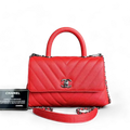 Chanel Caviar Small Coco Handle Chevron Calfskin Light Red Silver Hardware Series 28