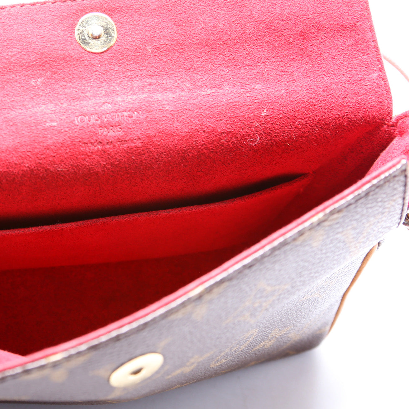 Interior: The interior shows signs of wear. The interior features one open pocket.