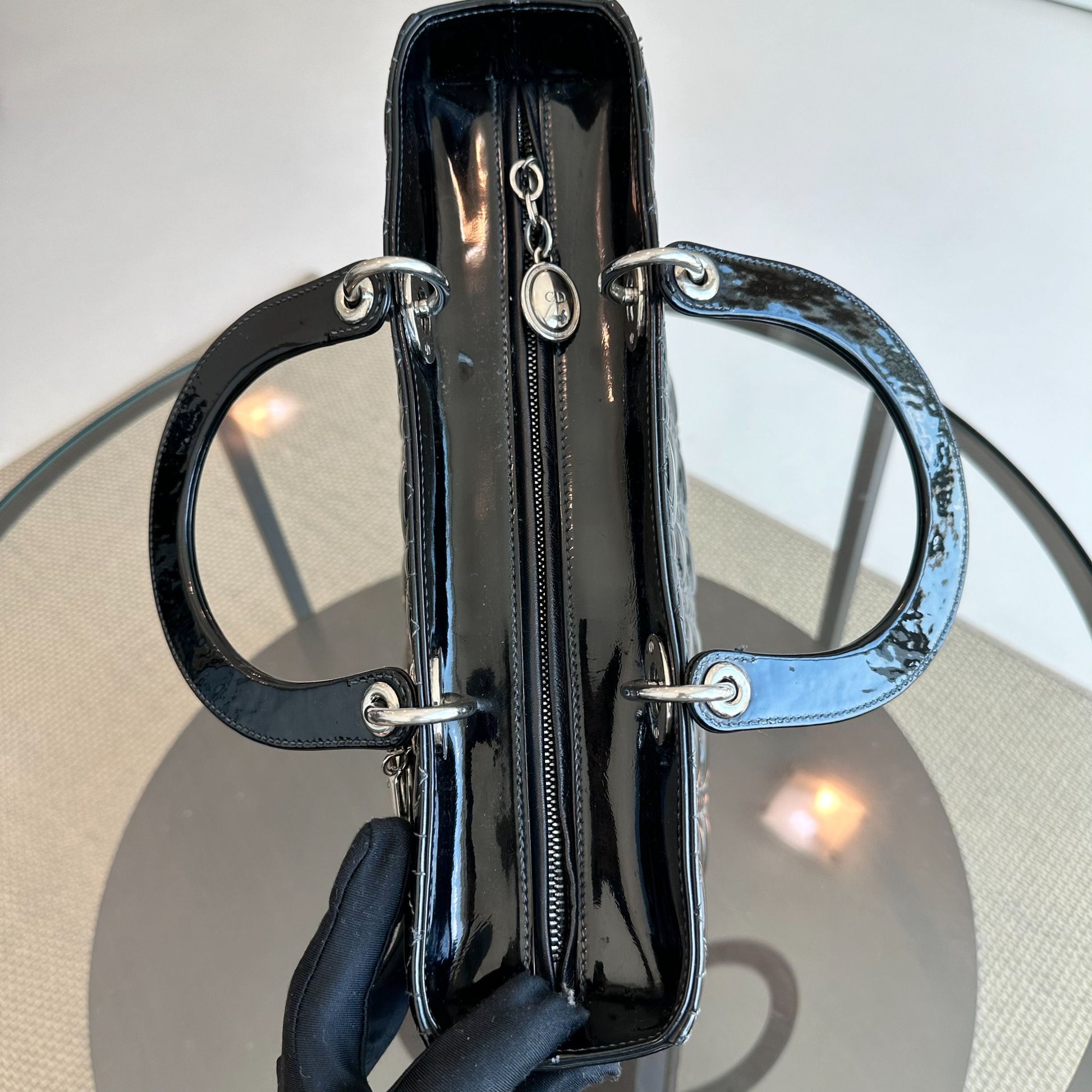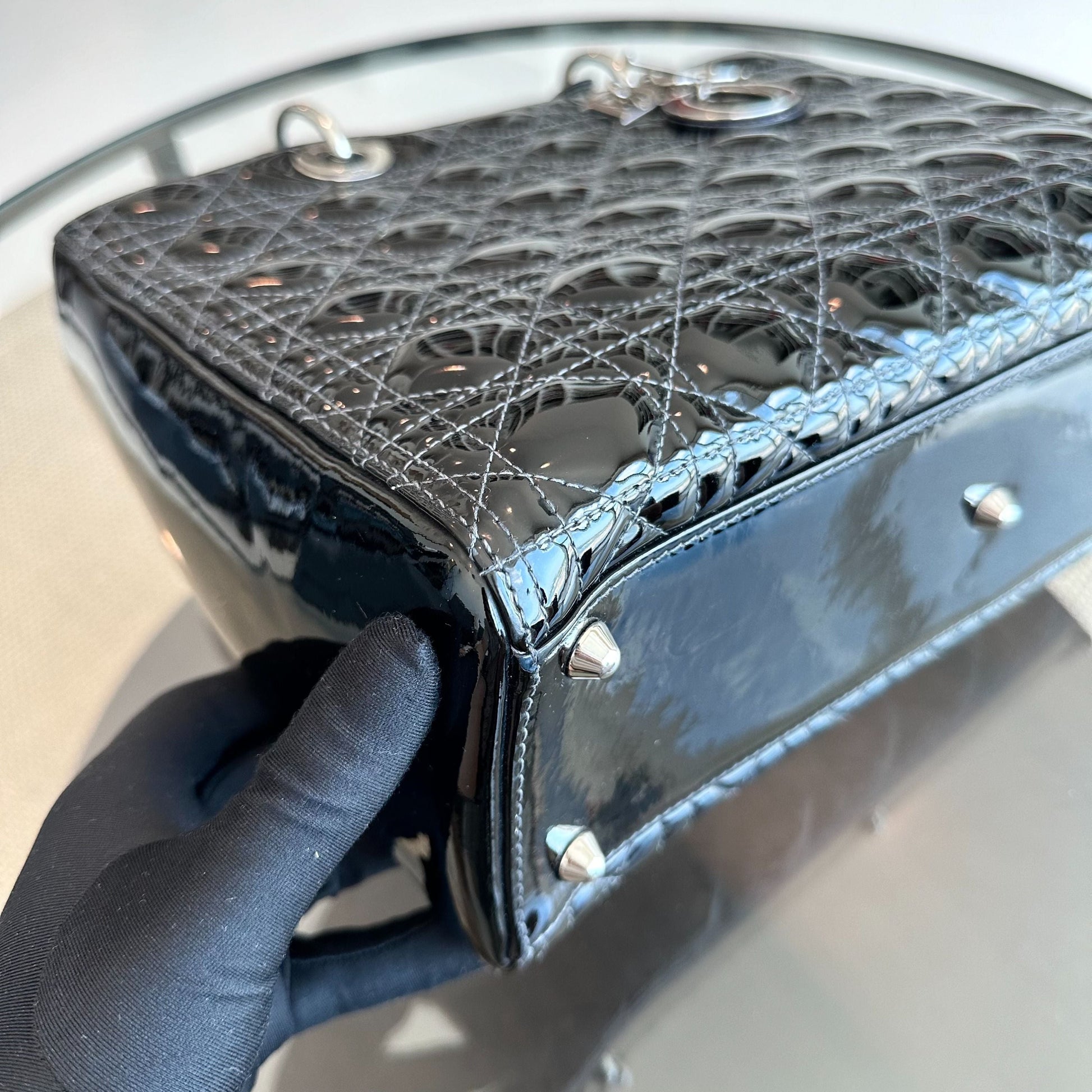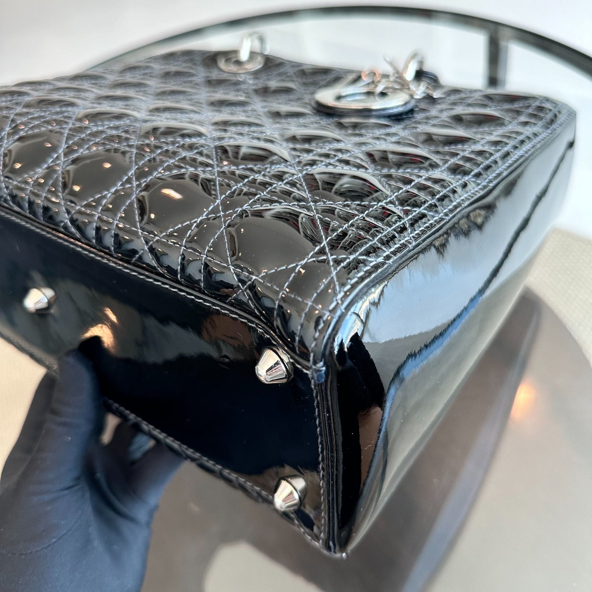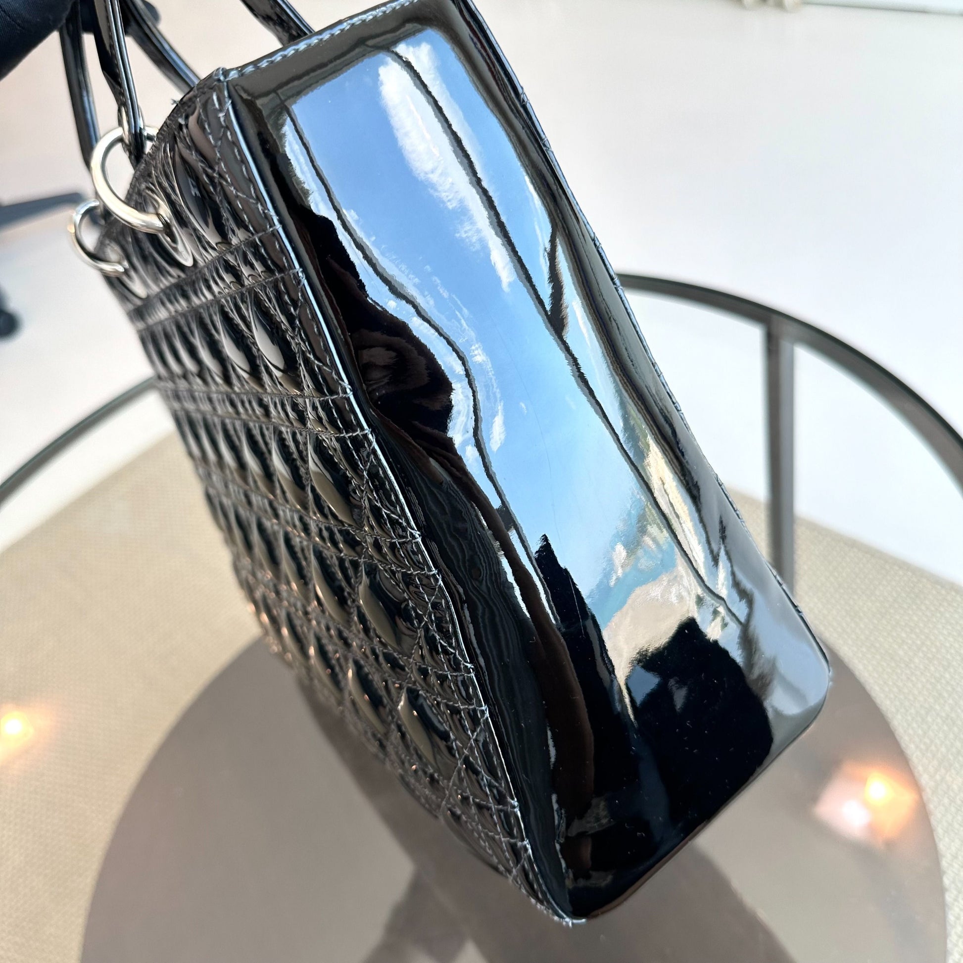 *Recolor, Receipt* Lady Large Patent Leather Cannage Black SHW