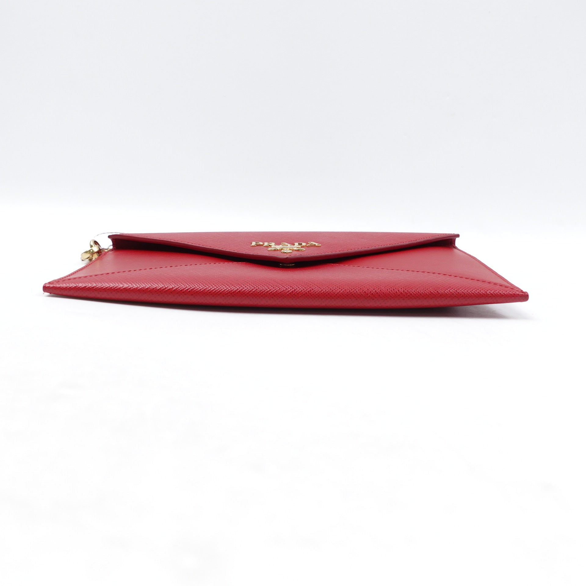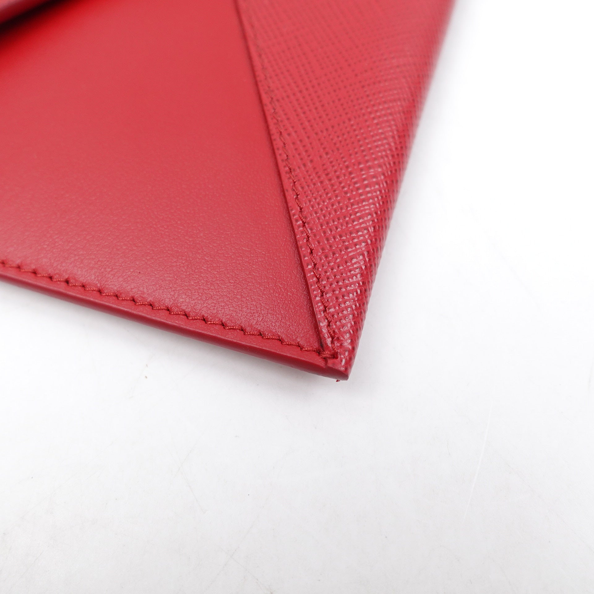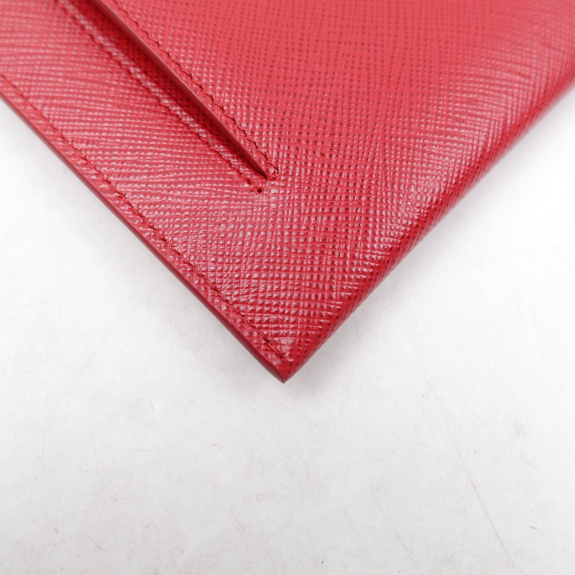 Add a touch of sophistication to your wardrobe with the PRADA Red Saffiano Leather Envelope Clutch.