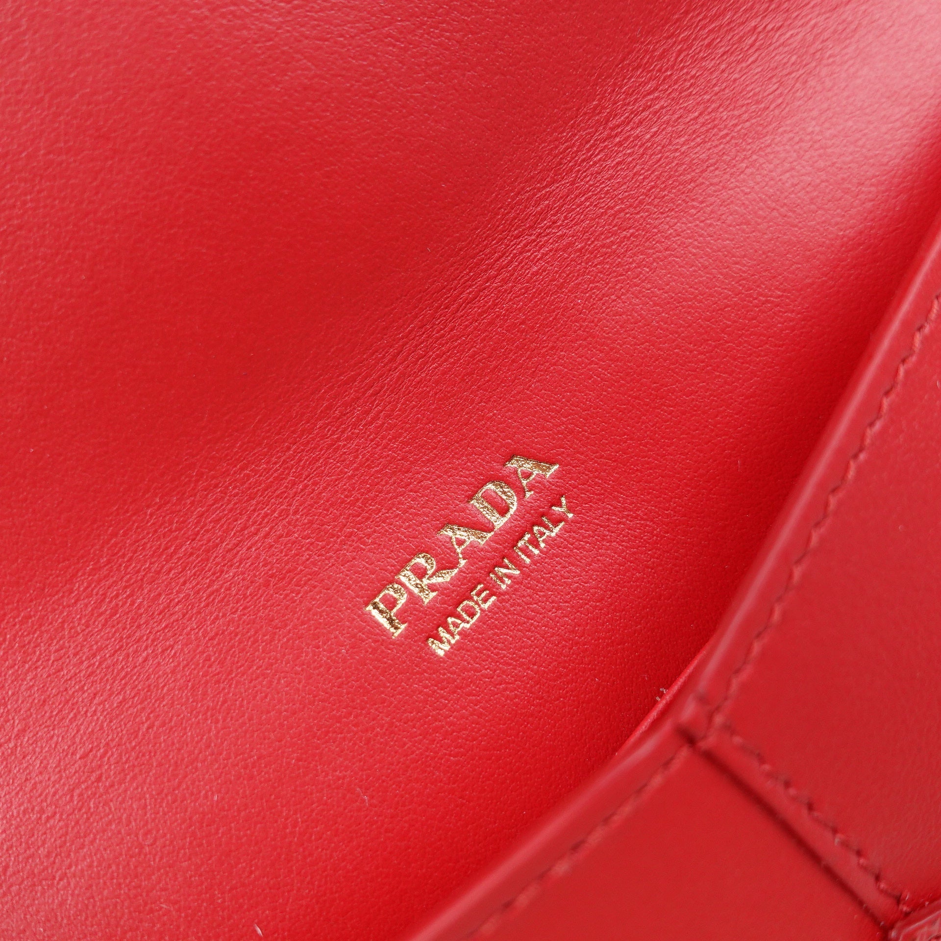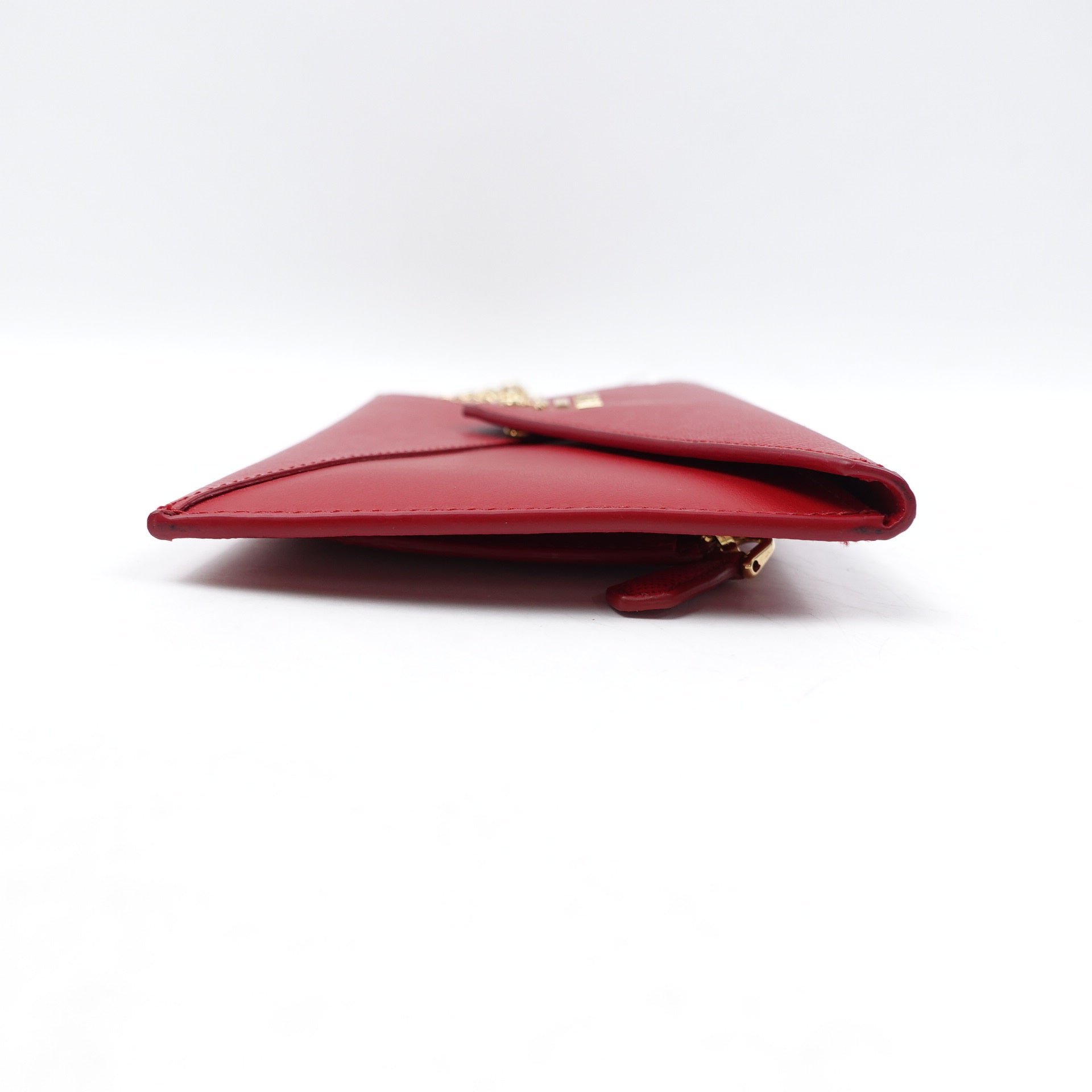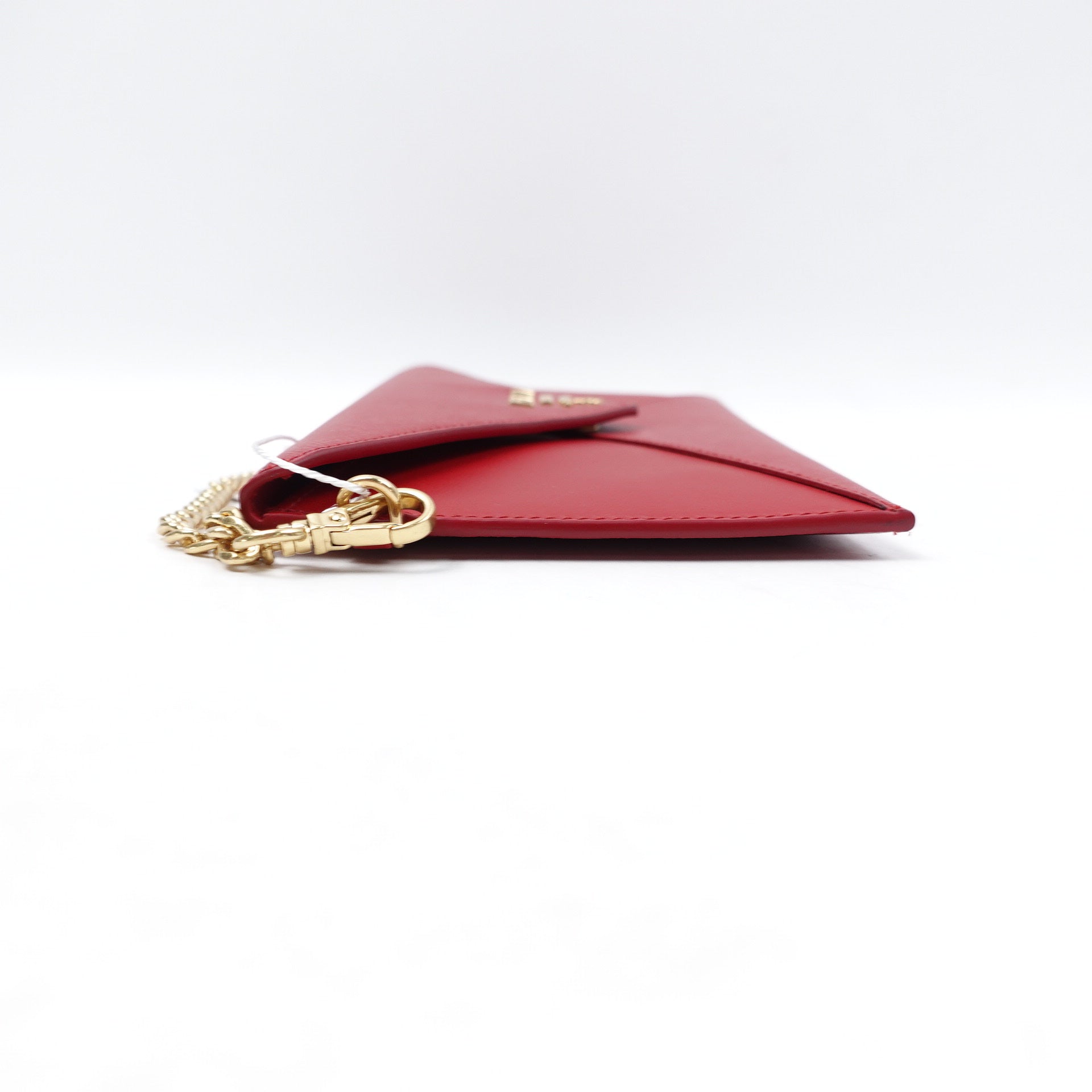 Add a touch of sophistication to your wardrobe with the PRADA Red Saffiano Leather Envelope Clutch.