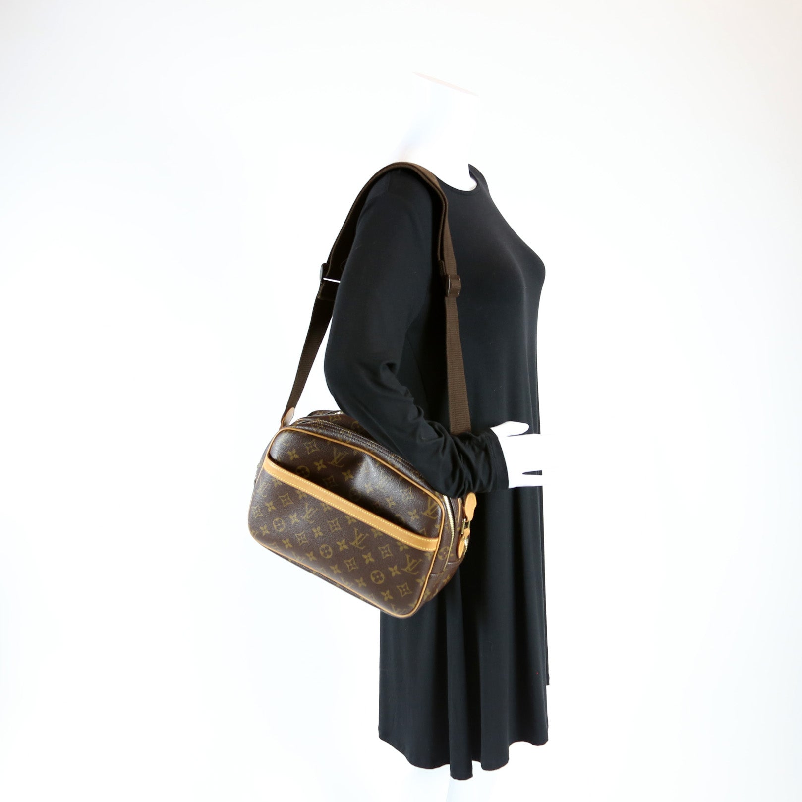 This Louis Vuitton Reporter PMis eye catching bag. The exterior is in the classic Louis Vuitton Monogram coated canvas.