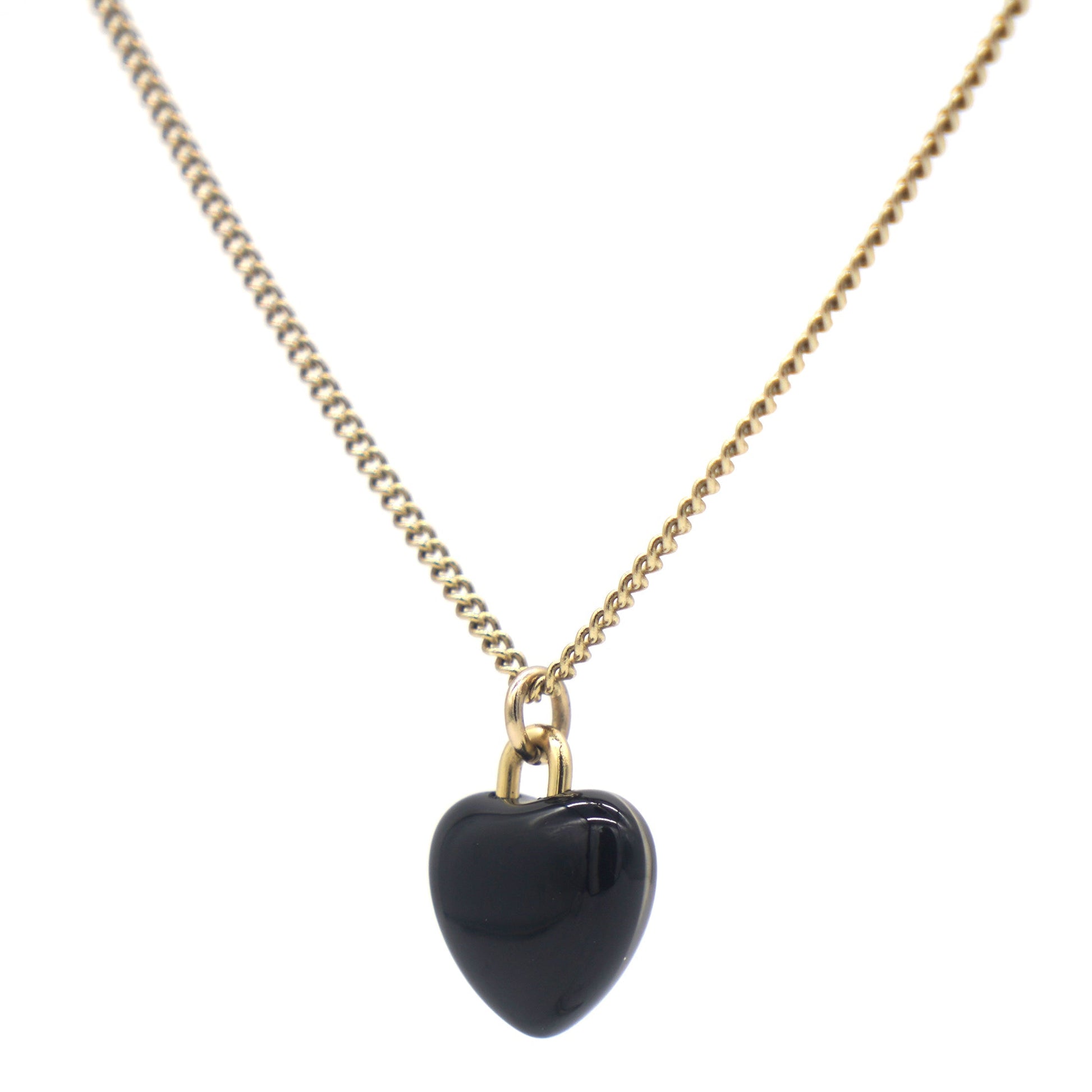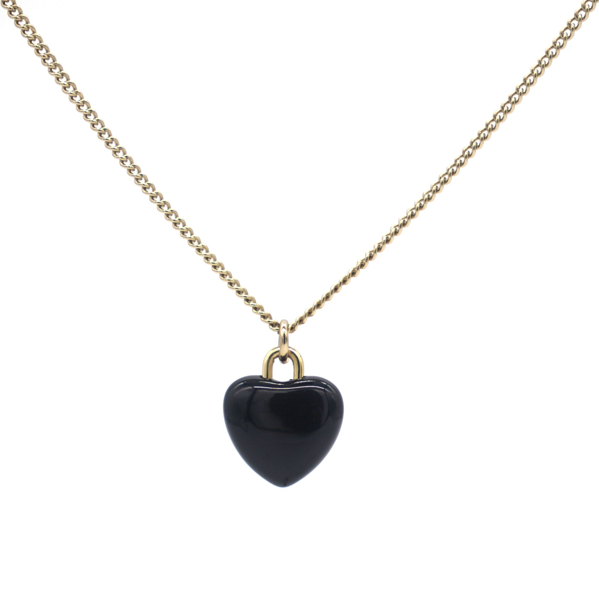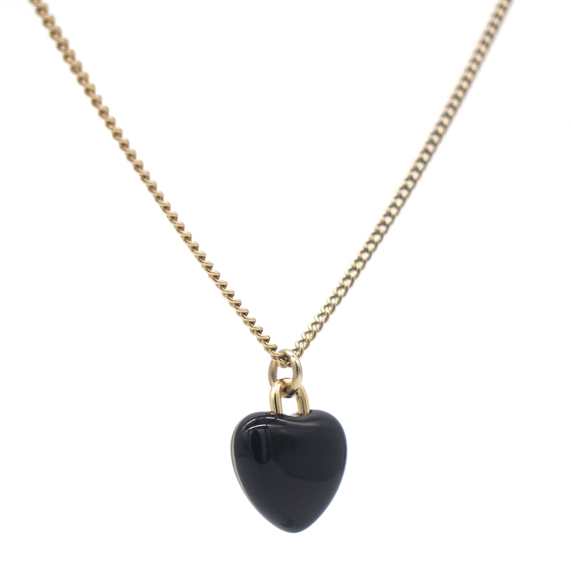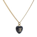 Chanel Resin Crystal CC Heart Necklace Black Gold