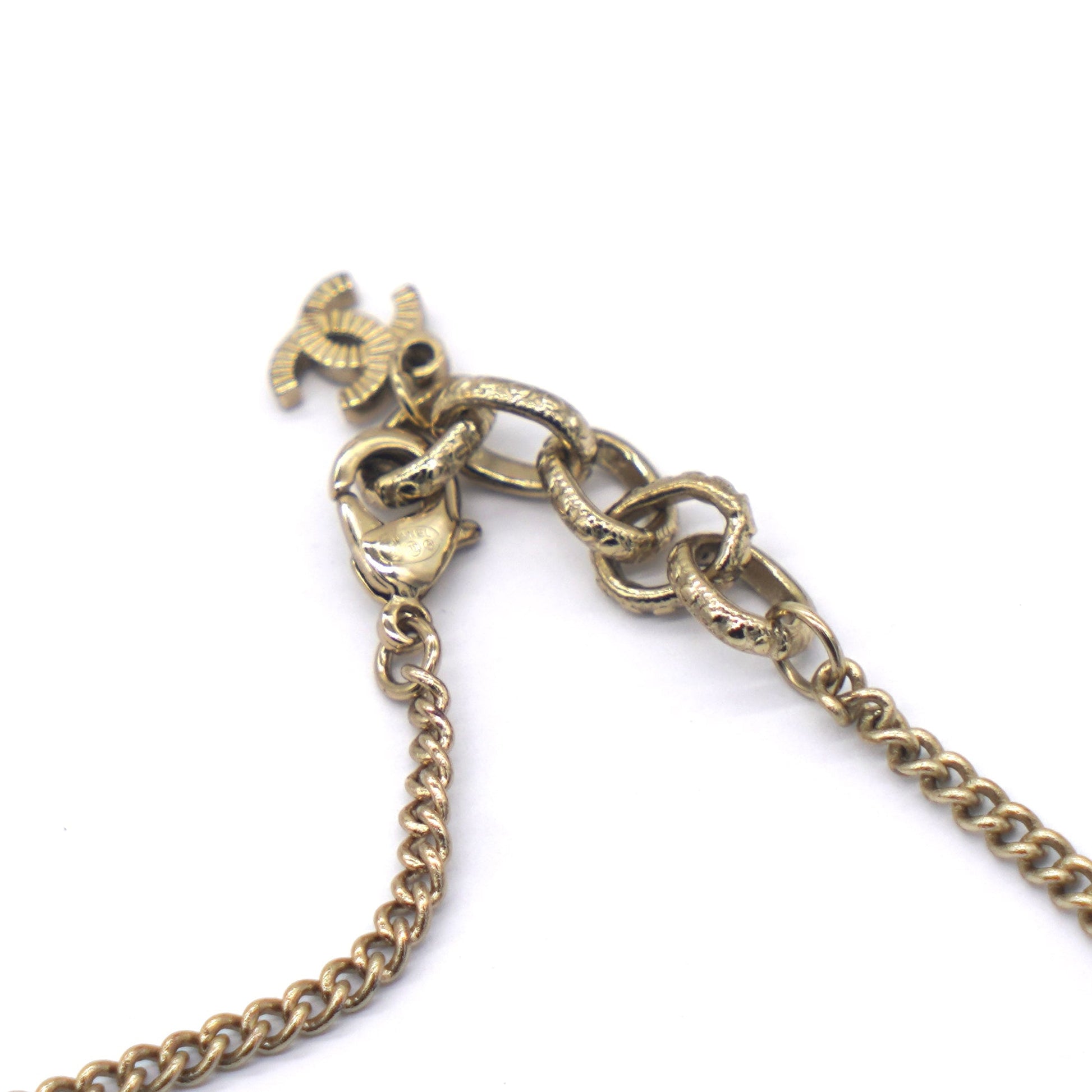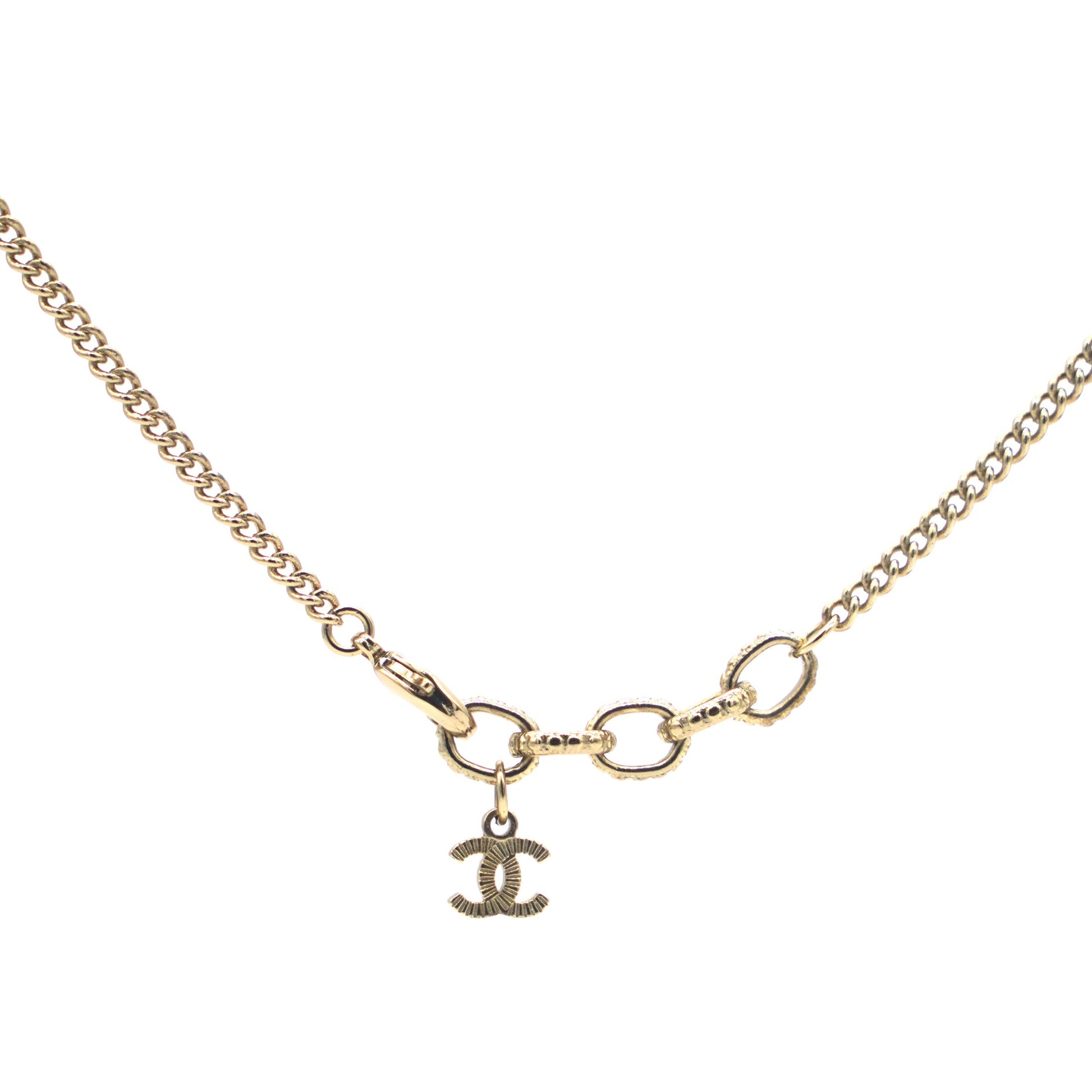| This elegant piece is a long gold chain with a crystal encrusted CC heart in the center of a black resin heart. | Material: Gold color finish metal; Crystals; Resin Accessories: None Serial Number:21P Production Year:2021 | ![]() |