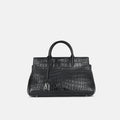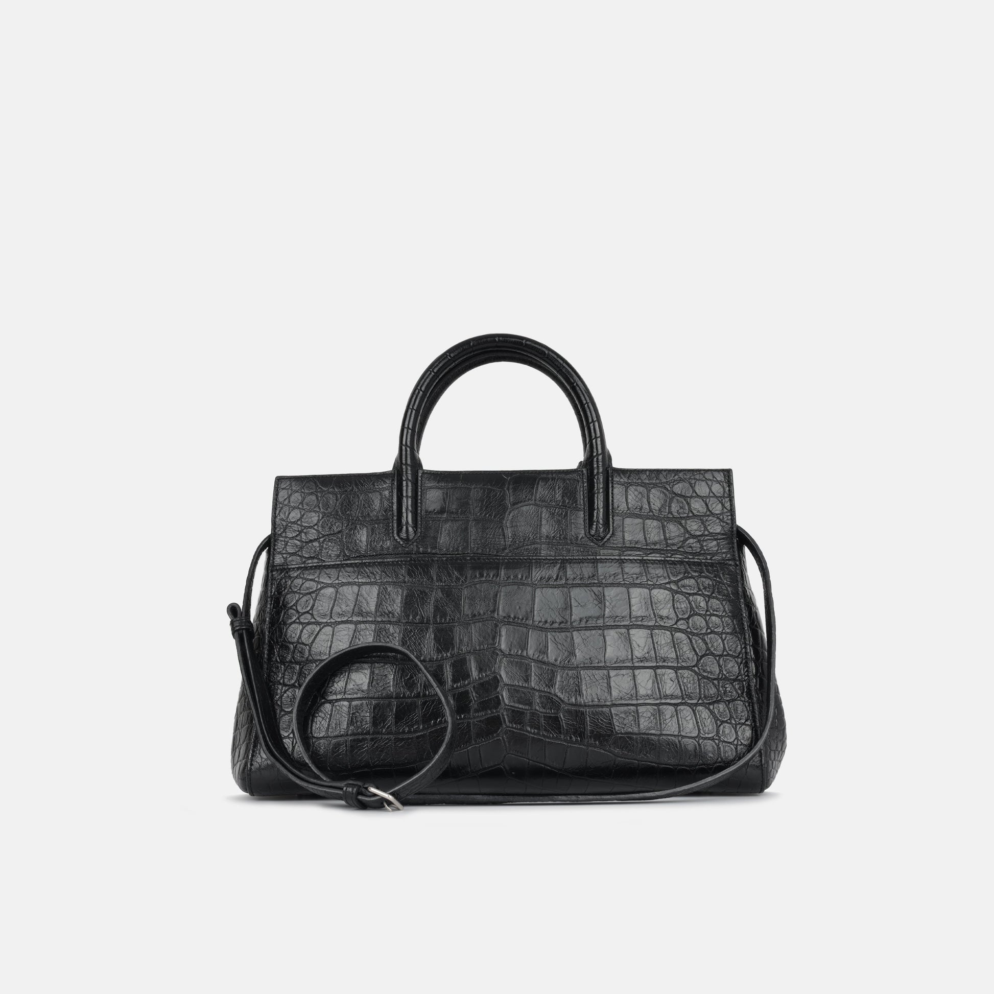 Introducing the timeless 'Cabas Rive Gauche' from Saint Laurent, a masterpiece of elegance and functionality. This exquisite bag is crafted from luxurious black crocodile-embossed leather, exuding sophistication and style.The design features two tubular top handles, a secure zip-top closure, and an adjustable shoulder strap for versatile carrying options.