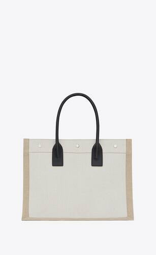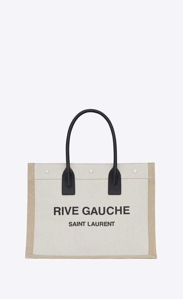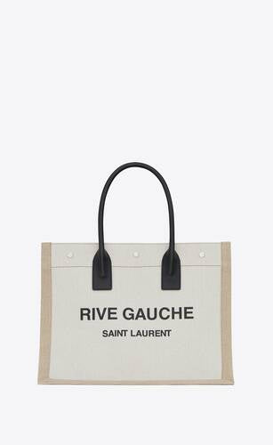 Rive Gauche Small Tote Bag In Linen And Leather