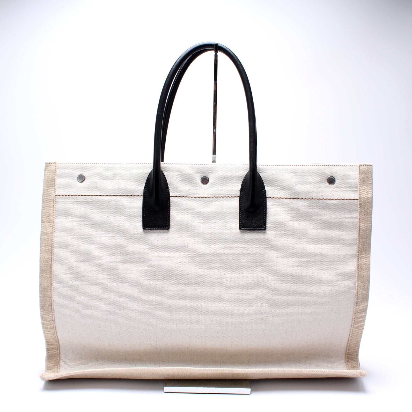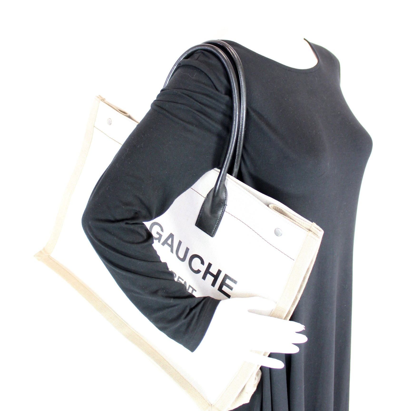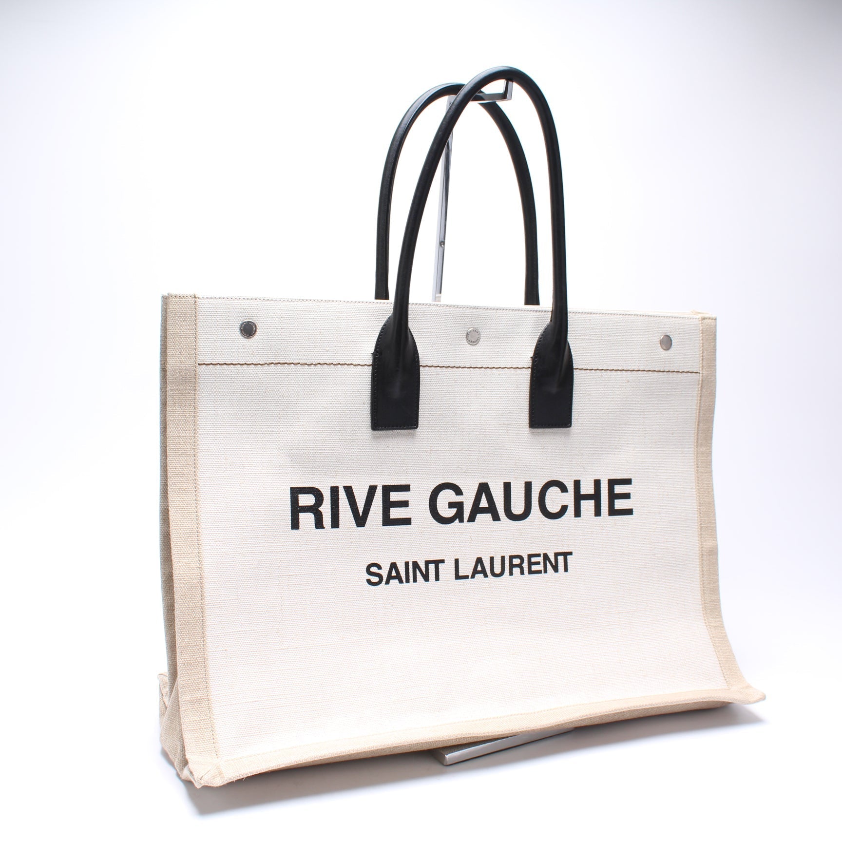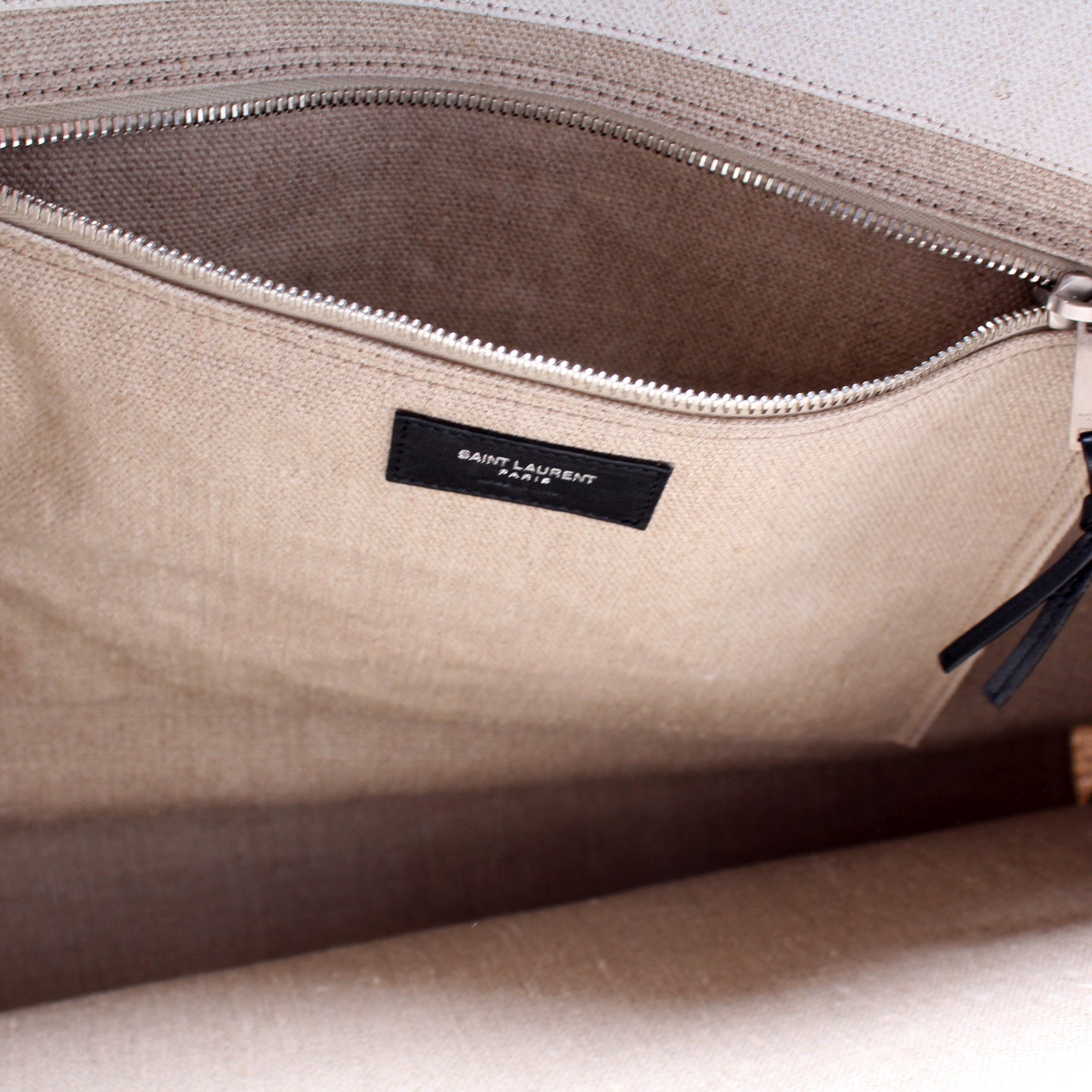This Saint Laurent Rive Gaucheis eye catching bag. The exterior is in the Saint Laurent Rive Gauche canvas.