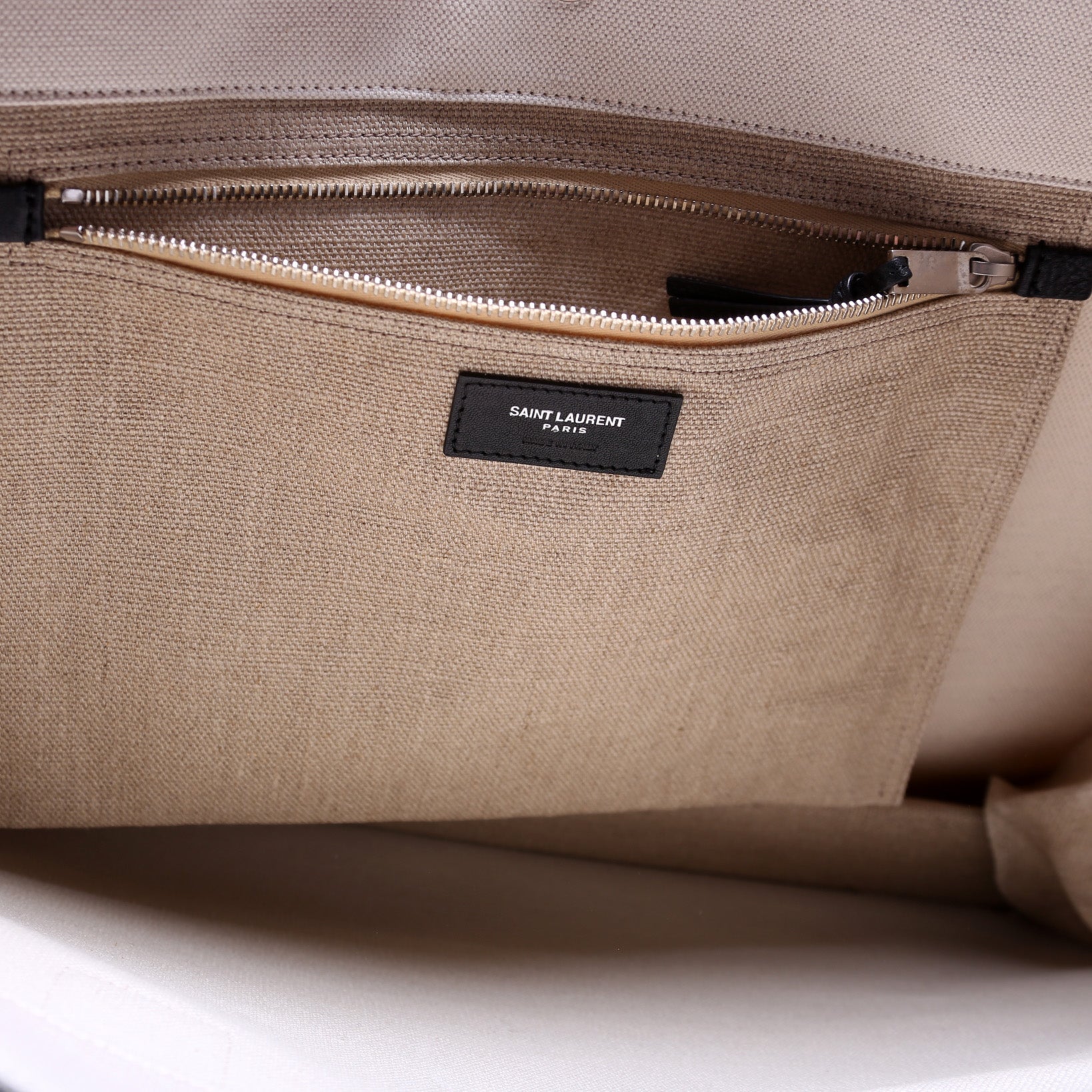 Interior: The interior is clean and free of rips or tears. The interior features one zip closure pocket.