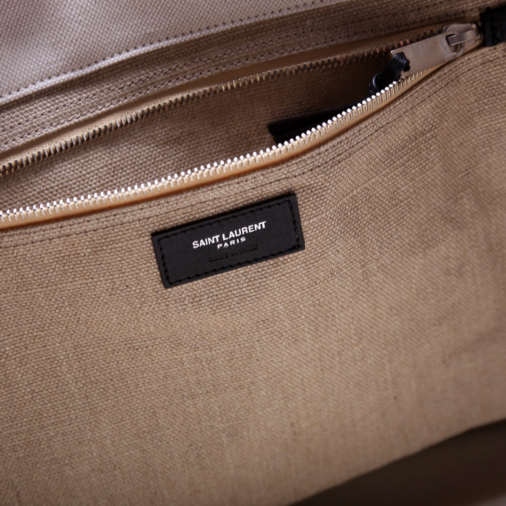 This Saint Laurent Rive Gaucheis eye catching bag. The exterior is in the Saint Laurent Rive Gauche canvas.