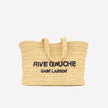 Crafted from luxurious raffia, this tote features a soft, relaxed silhouette, perfect for effortless everyday wear. The front is accented with the signature "Rive Gauche" logo embroidery, adding a touch of sophistication and brand heritage. Spacious and versatile, this bag combines fashion-forward design with practicality, making it a chic accessory for any occasion.