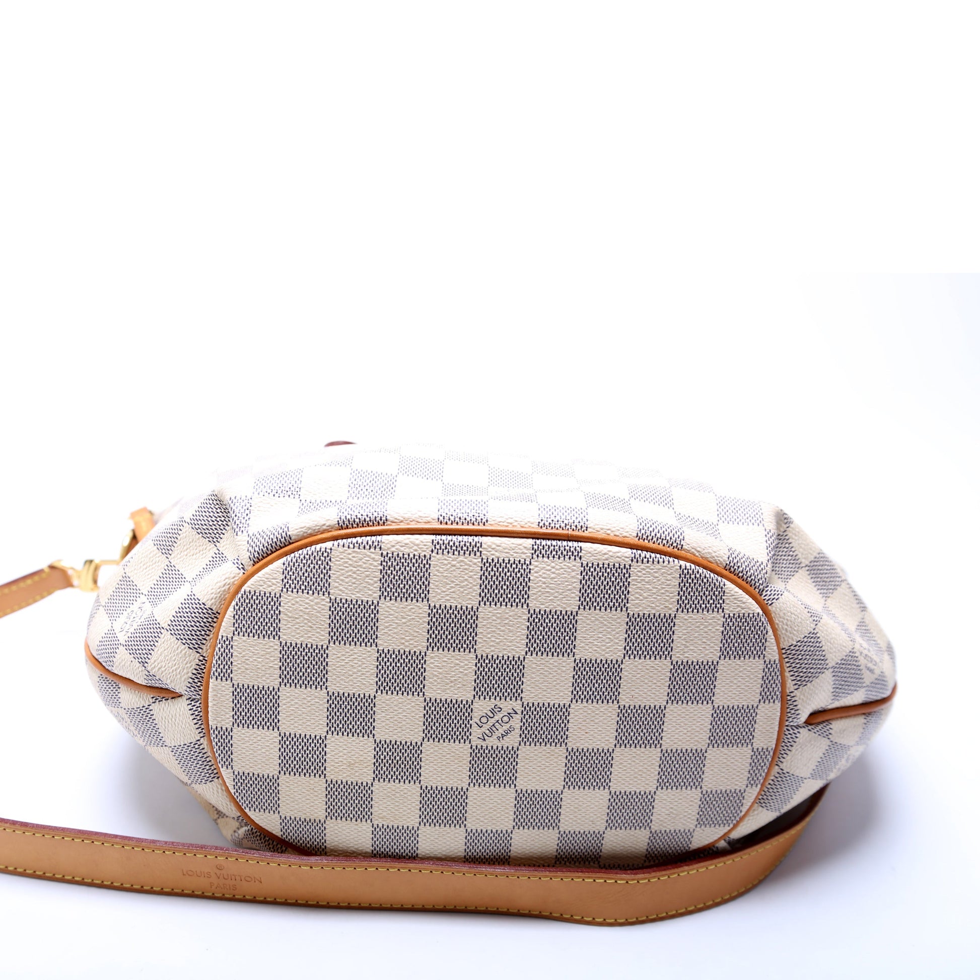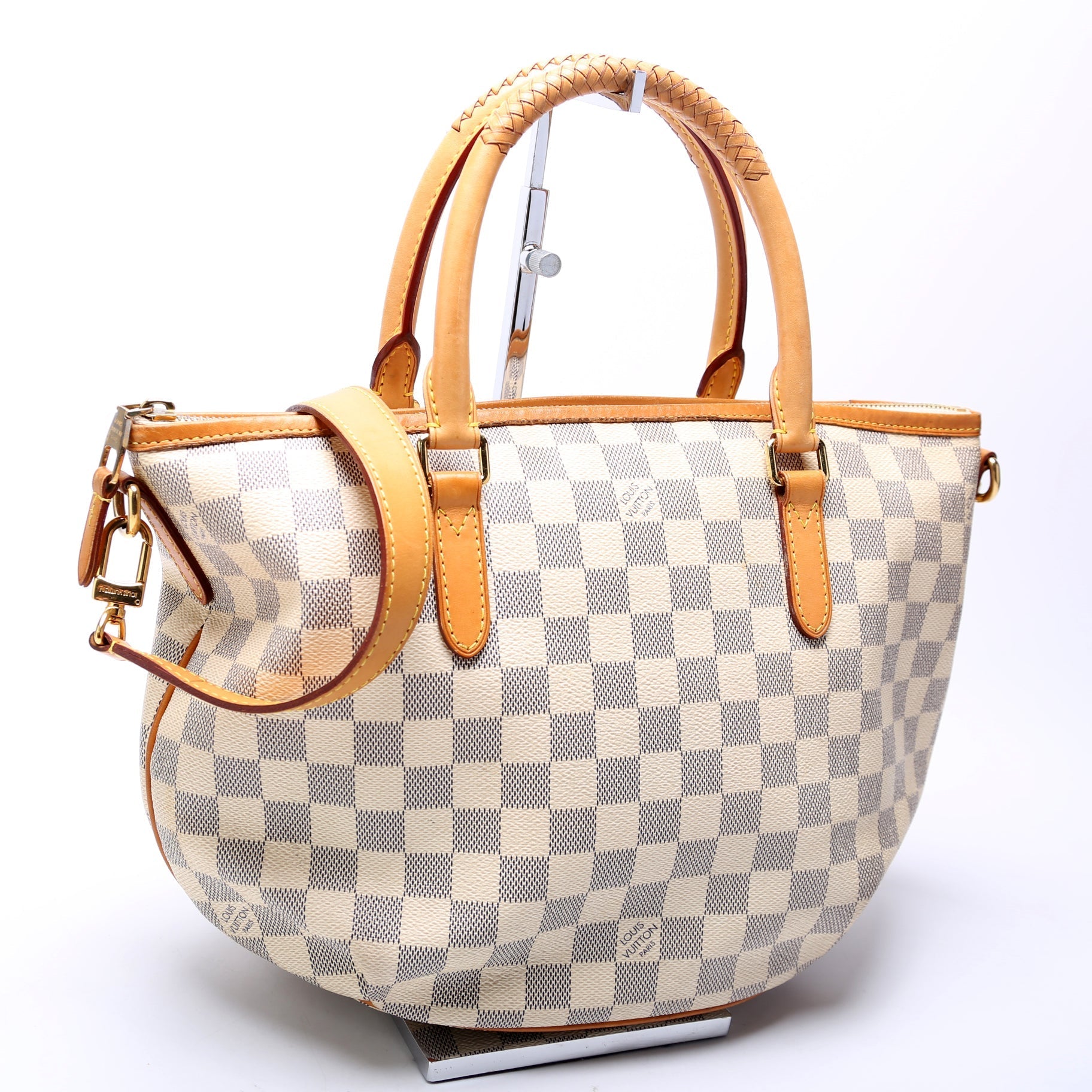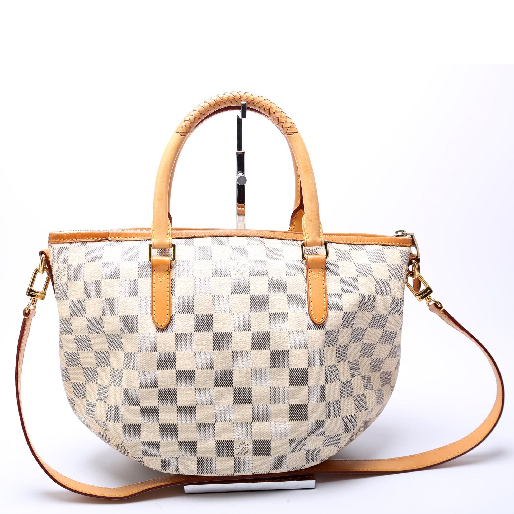 Handle: The leather handles show minor discoloration.