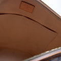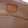 Exterior: The exterior coiated canvas shows minor scuffs. The leather trim shows minor discoloration and wear.