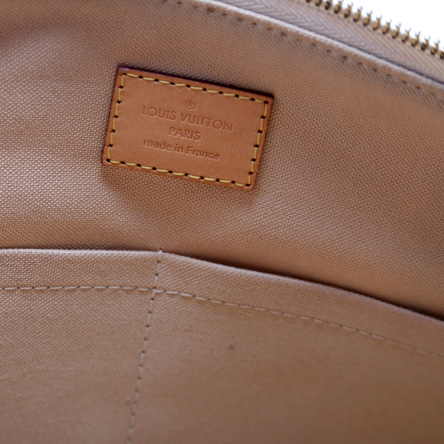 Hardware: The zipper operates properly and runs smoothly. The hardware shows minor scratches.